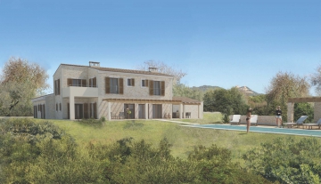 Semi-detached family villa with pool under construction in the center of Santanyi