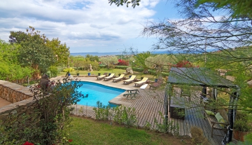 Modern family villa with large pool, garden, mountain- and seaviews