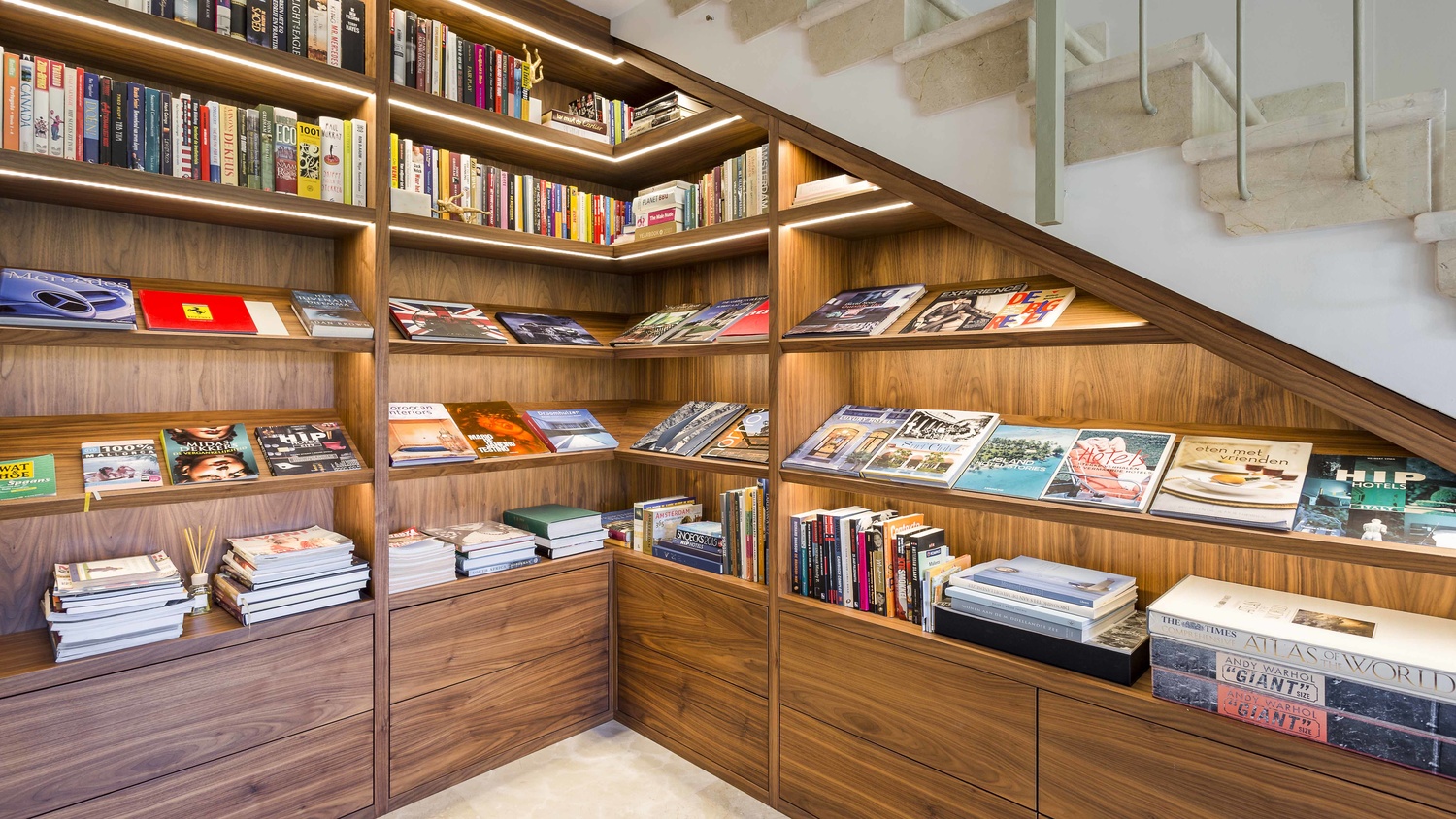 Lower floor: Open kitchen with breakfast area and access to the outside pool area and terraces, library, staircase which leads to the master bedroom - wing with extensive dressing area, bathroom en-suite and separate TV corner as lounge area.
