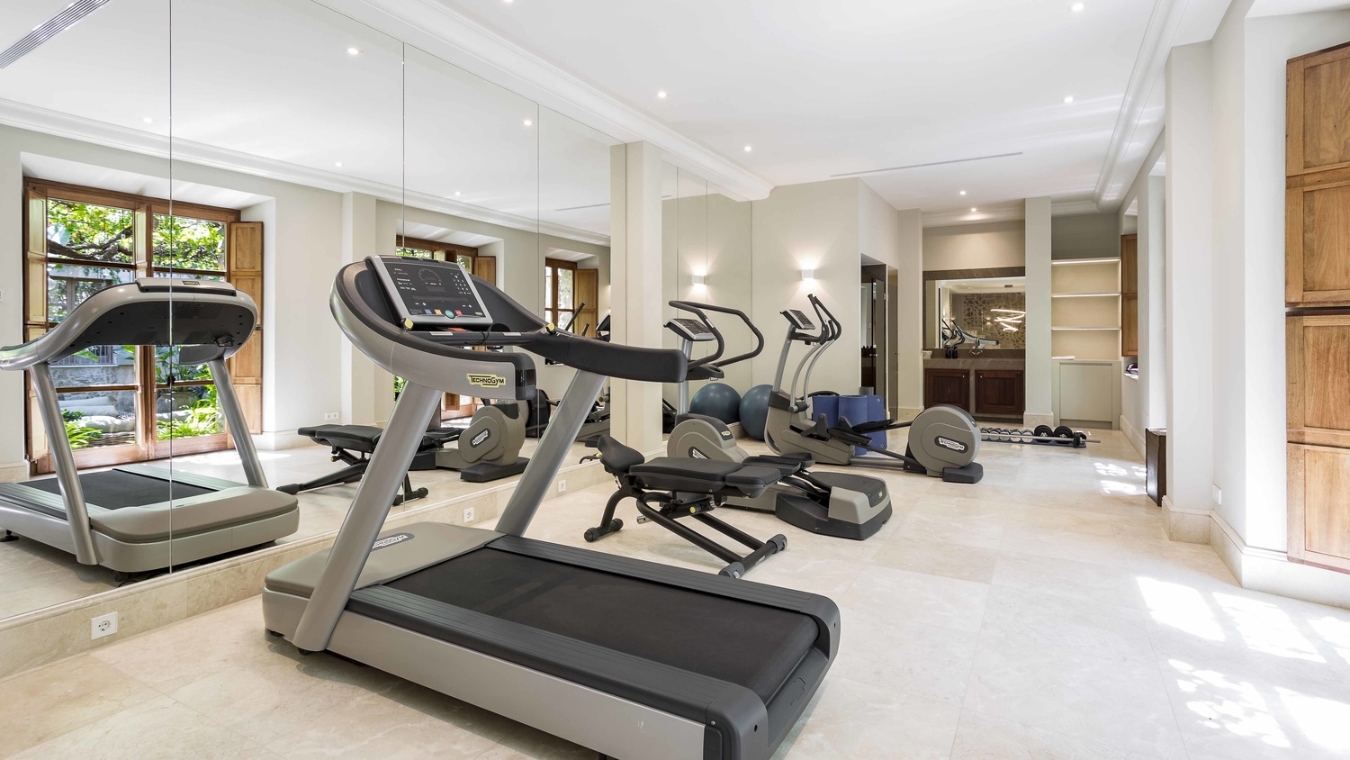 Ground / entrance floor: Large entrance hall which leads to an interior patio which is covered with wonderful grape vine and created into a fashionable chill out area. On this same level there is a gym with bathroom, a spa area with indoor pool, sauna, shower, toilet, separate laundry area and a spacious staircase.