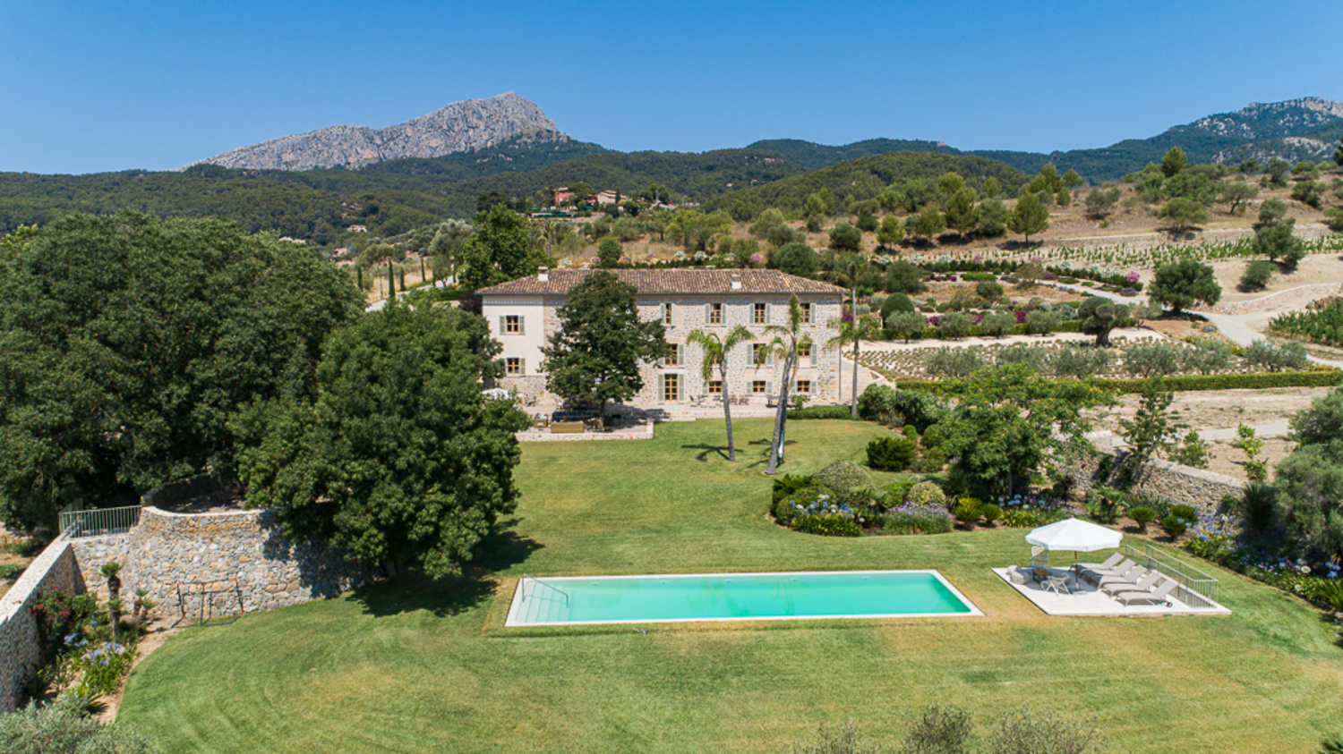 This finca mansion is situated in an authentic Mallorcan country village called Puigpunyent and is located only 20 minutes away from Palma, Mallorcas capital, by car. It is possible to walk or drive over own grounds to the village center to buy at the local stores or enjoy the charming and authentic local restaurants.