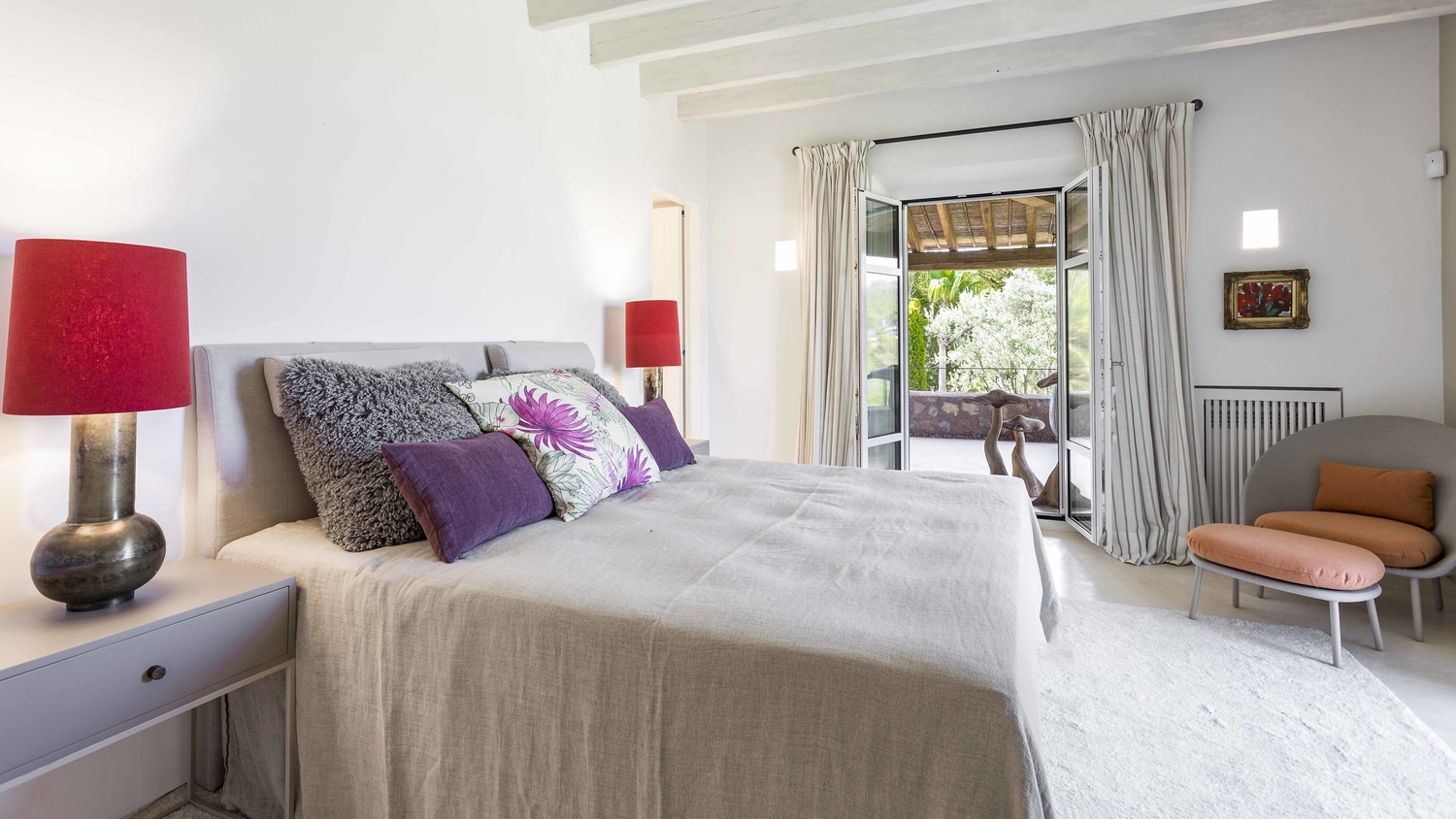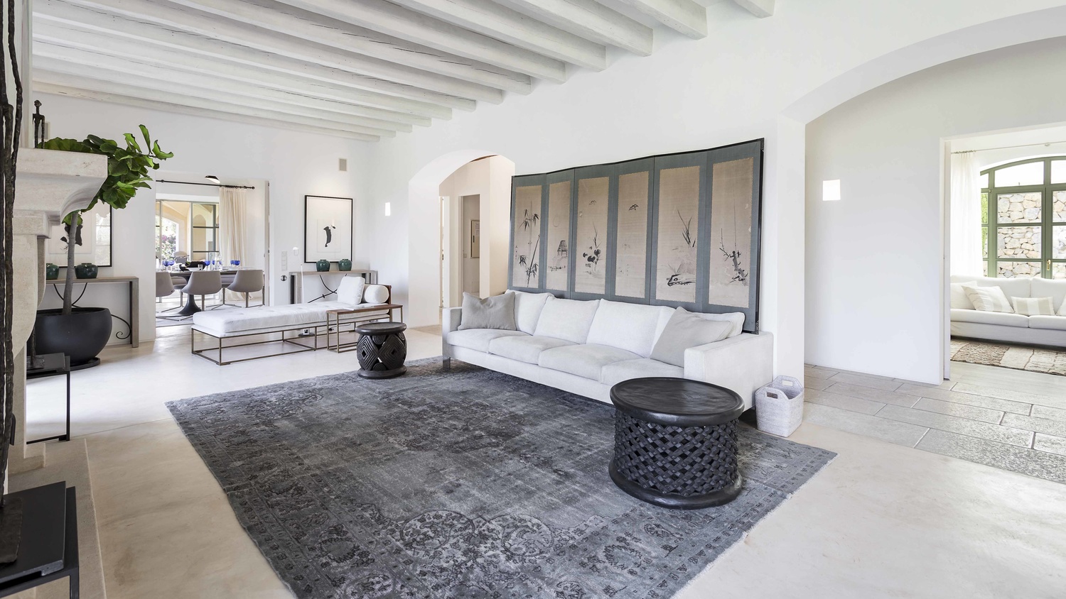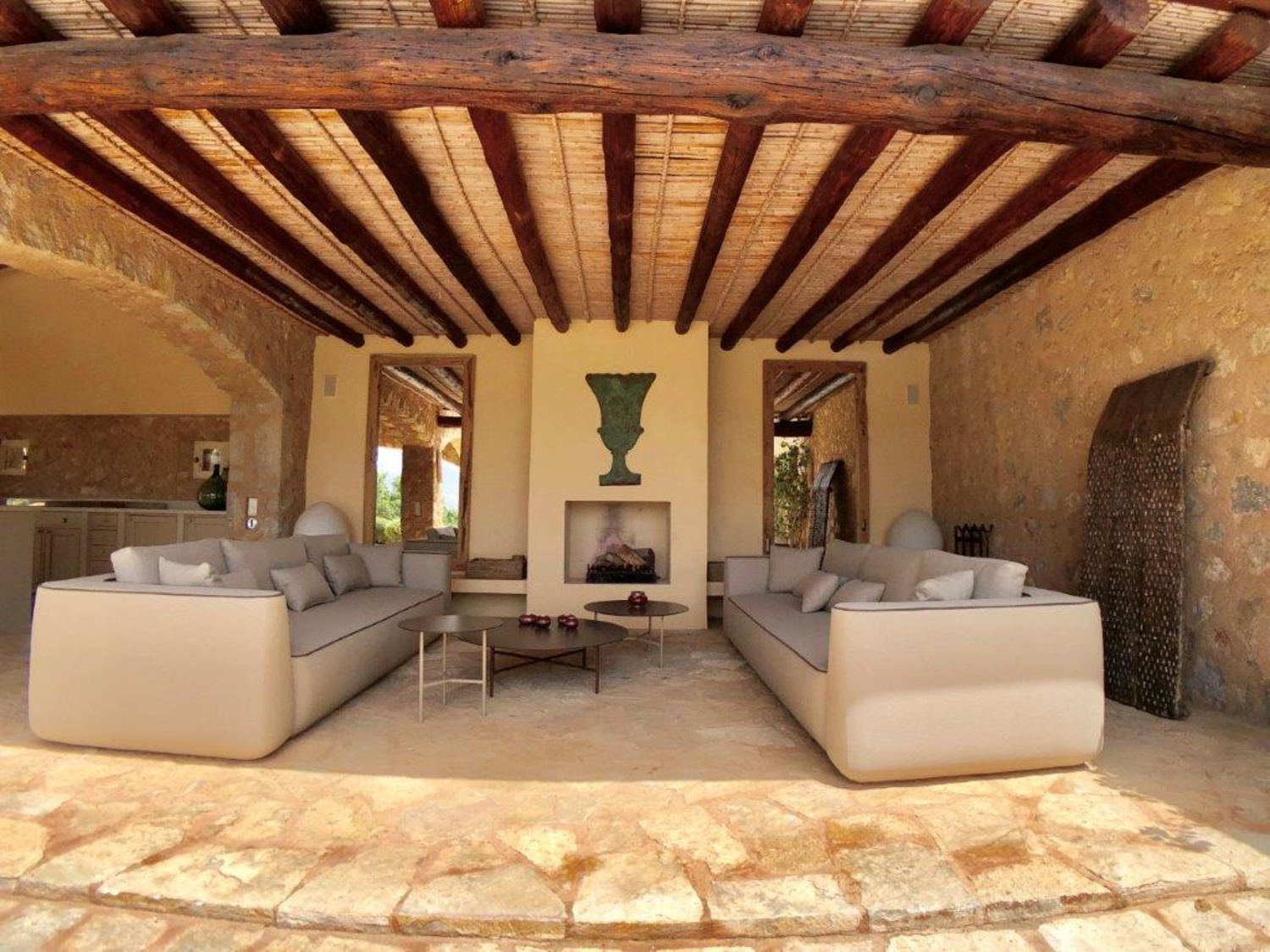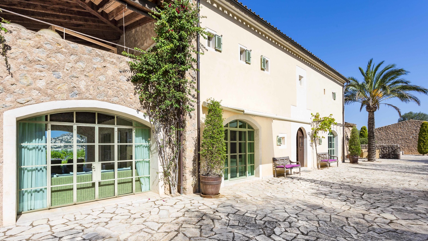 This exceptional finca is located on a nearly flat, slightly elevated plot just 15 minutes walk from Port de Andratx and offers a fantastic view of the bay of Port de Andratx. Three separate buildings, several exterior terraces and a large pool 75 m2 are part of this mansion - and all rooms and terraces are facing the sea and offer views of the chain of hills of Andratx. The modern finca with typical Mallorcan elements is well-maintained and equipped with many small details. It was built for personal use, hence the extremely high quality in construction. The central main villa impresses with 384 m2 area of well-being, distributed over two floors. n the first floor you find the master suite with bathroom and dressing room and a large covered terrace (52 m2), from which you can enjoy panoramic views of the port of Andratx. The second bedroom has an en-suite bathroom and a private roof terrace (28 m2). A third room is currently being used as an office- and TV-room, but, could easily be converted into another bedroom. On the ground floor there are the large bright living area with an open fireplace, the luxurious, fully equipped kitchen with adjoining utility room with separate second kitchen, the dining area with direct access to the outdoor terrace, a TV or office room (could also be converted into a bedroom) and the porch (83 m2). From every living area you have access to the Mediterranean garden with its cypress, palm, olive and lemon trees. It was planned by the well-known horticultural company Son Muda, who are maintaining it too. At the side of the main villa you find a guest house with living room and bedroom, bathroom and a private covered terrace. The building also has three separate garages and a technical room (heating). The pool house with a heated outdoor pool (heat pump) was converted into a second guest house in 2013 with living room and bedroom with bathroom en-suite and an outdoor terrace. In the same group of buildings, you will find a fully equipped outdoor kitchen with electric grill, Japanese Tepanyaki grill, hotplates, refrigerator, freezer, dishwasher and several cupboards. Under the pool there are both the pool technology room and the diesel generator with a stand-by unit in case of a power failure. The whole property is completely fenced by a high mesh wire fence. Wonderful walks on your own grounds are awaiting you!