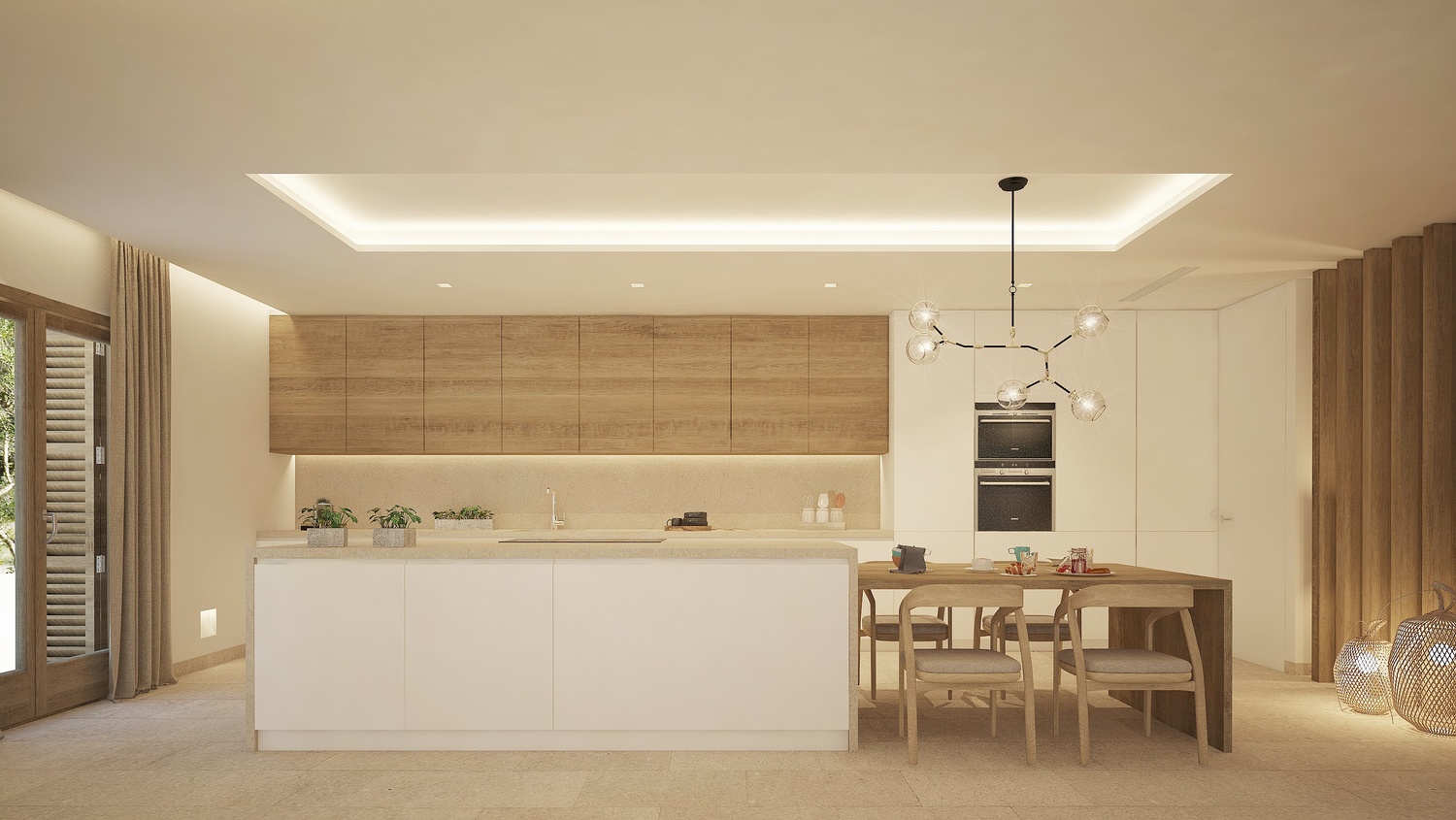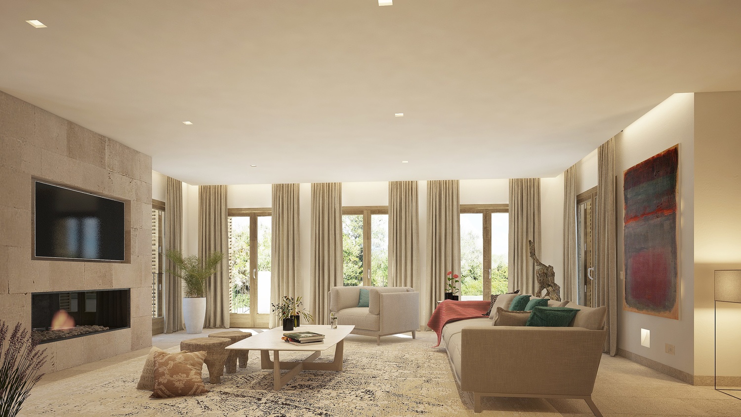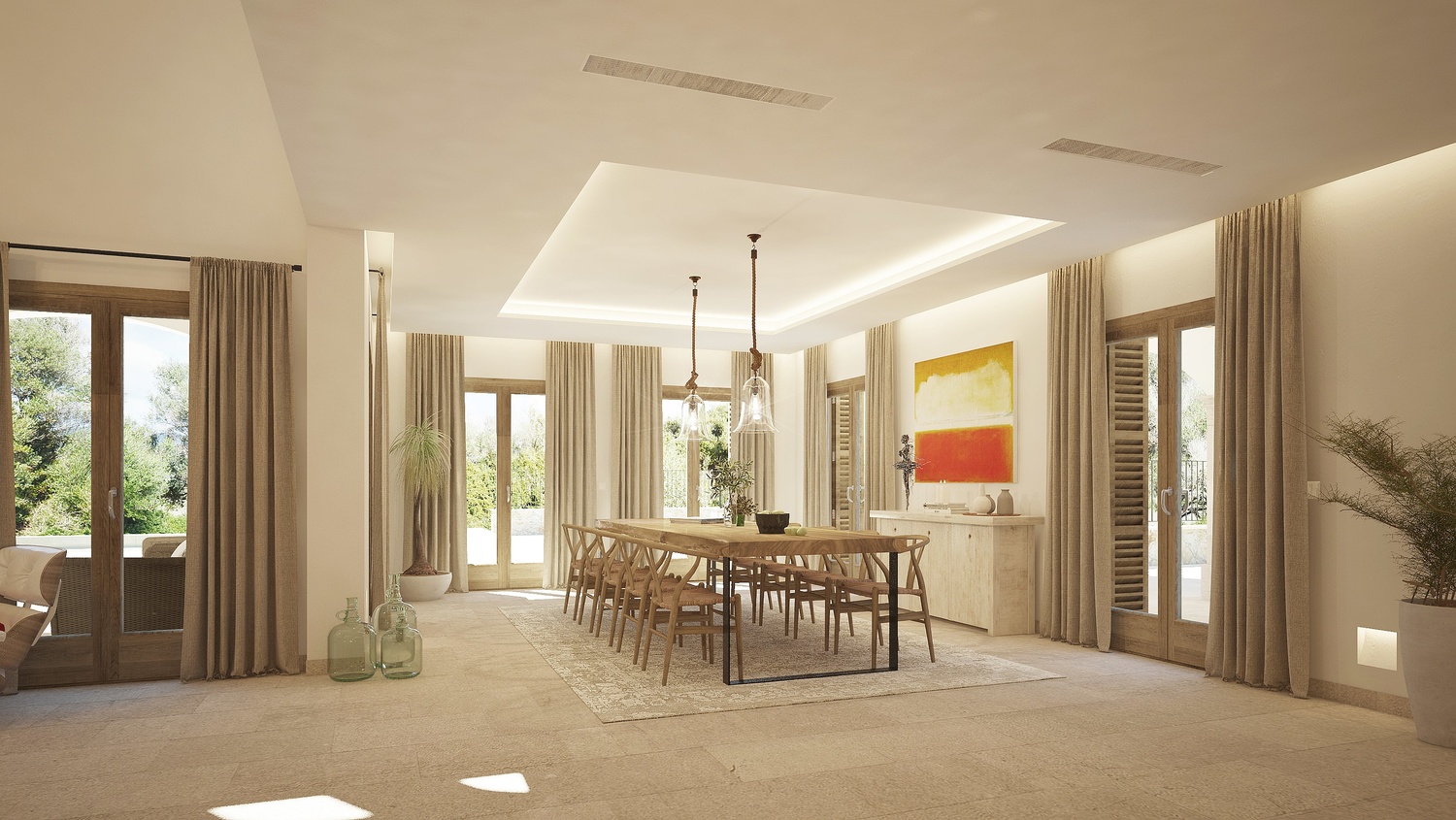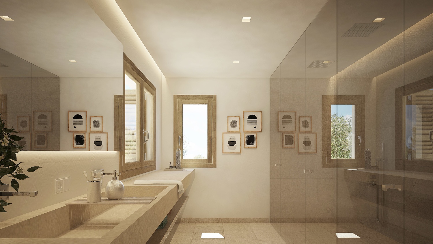 First floor: on one aile, the master bedroom, with great bathroom and private terrace with panoramic views to the Bay of Camp de Mar, on the other aile, 2 guest bedrooms with bathroom and dressing room.