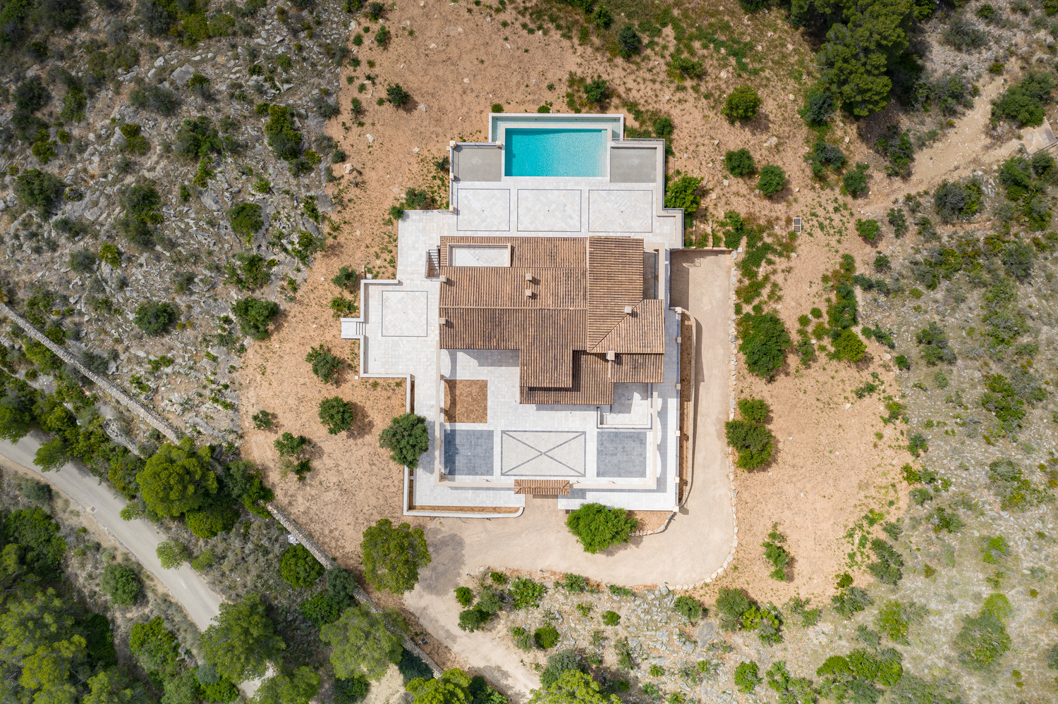 Very inviting extensive opened and covered terraces, big swimming pool, beautiful quiet surroundings, huge piece of land, automatic irrigation system.