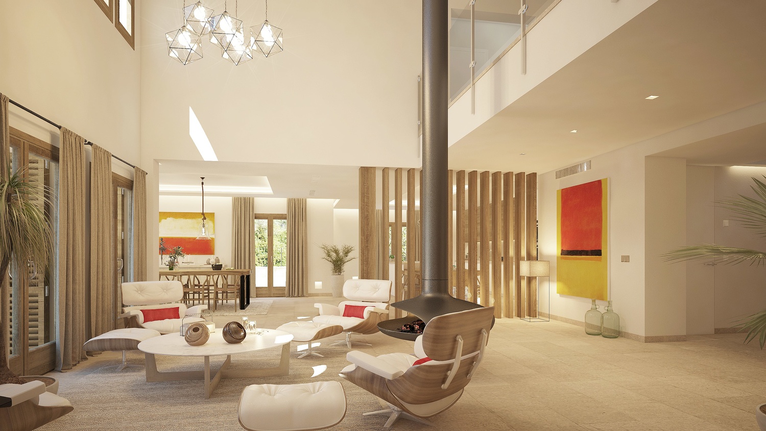 The living area is distributed over 3 floors and will contain: