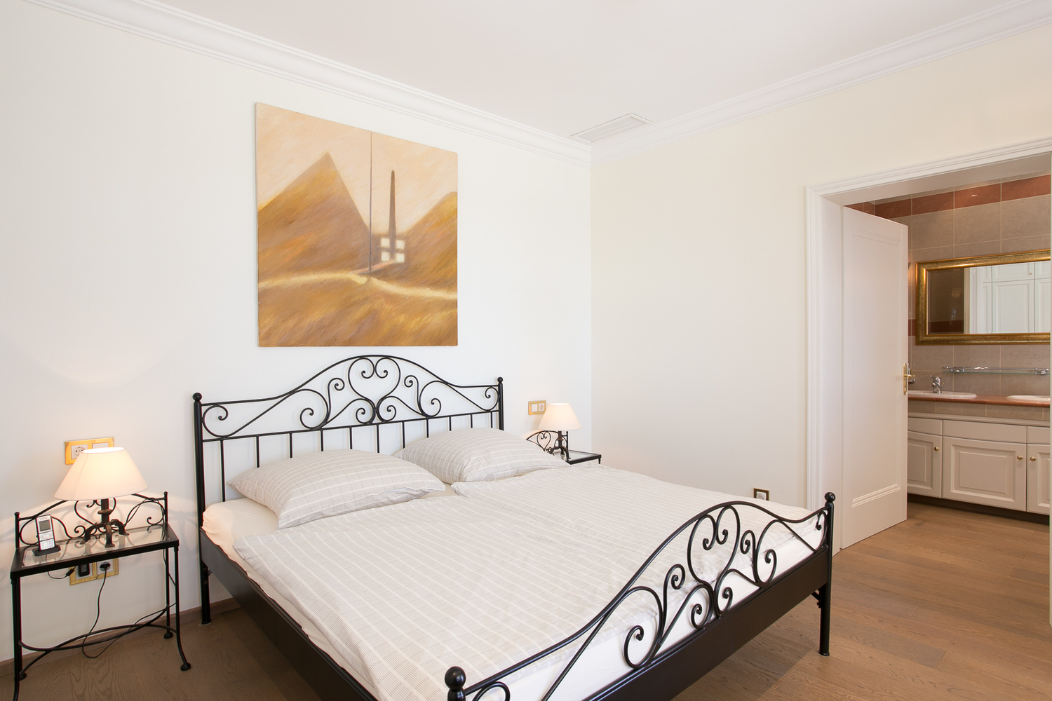 Basement floor: Spacious guest apartment with living room, double bedroom, full bathroom and a further large room that could be easily converted into a sixth bedroom. Also, on this floor is the gym with sauna, shower, a wine cellar, several storage rooms and the machine room.