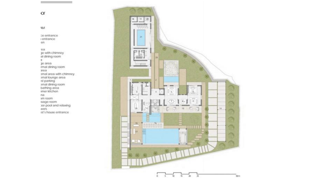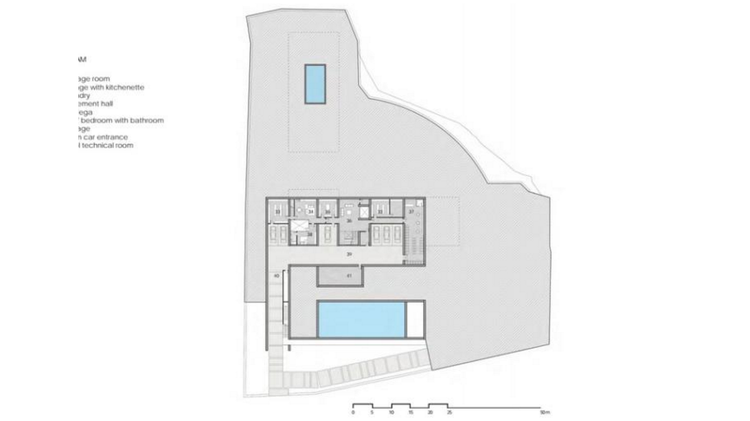 Basement: Garage for 8 cars, staff quarters, home cinema, laundry area, larder room, cloak rooms and staff bathrooms, wine cellar, engine room, etc.