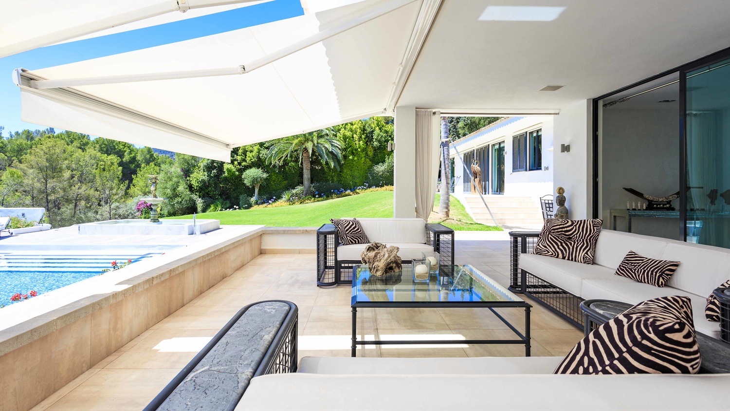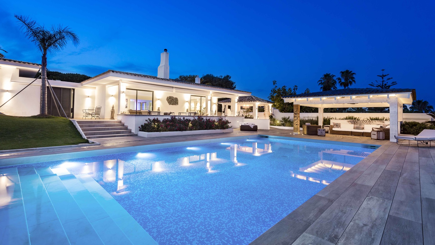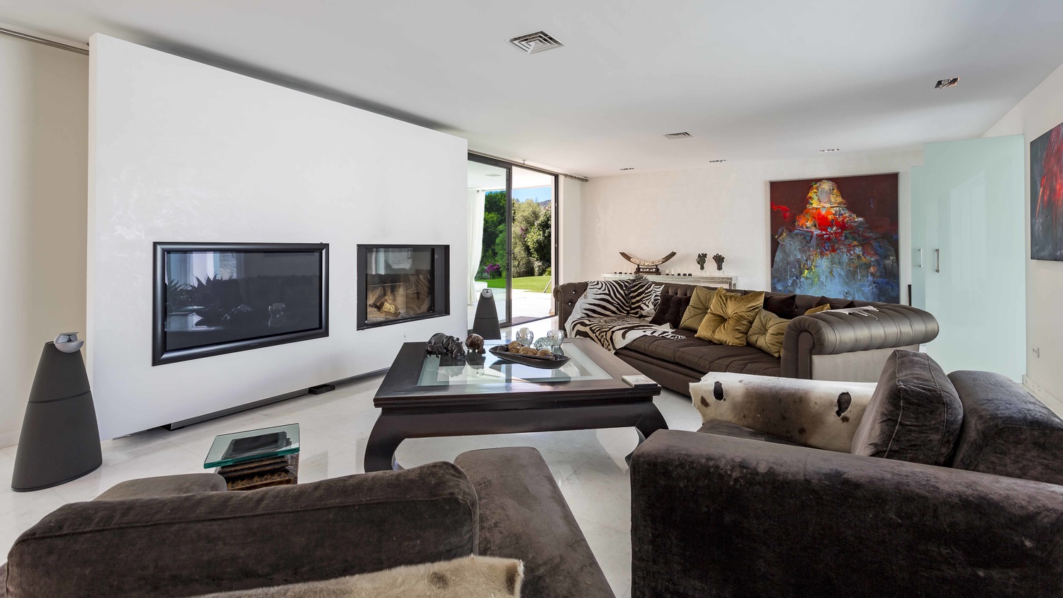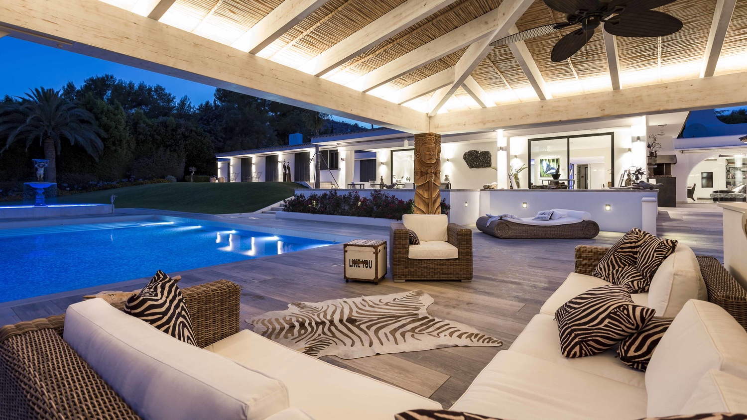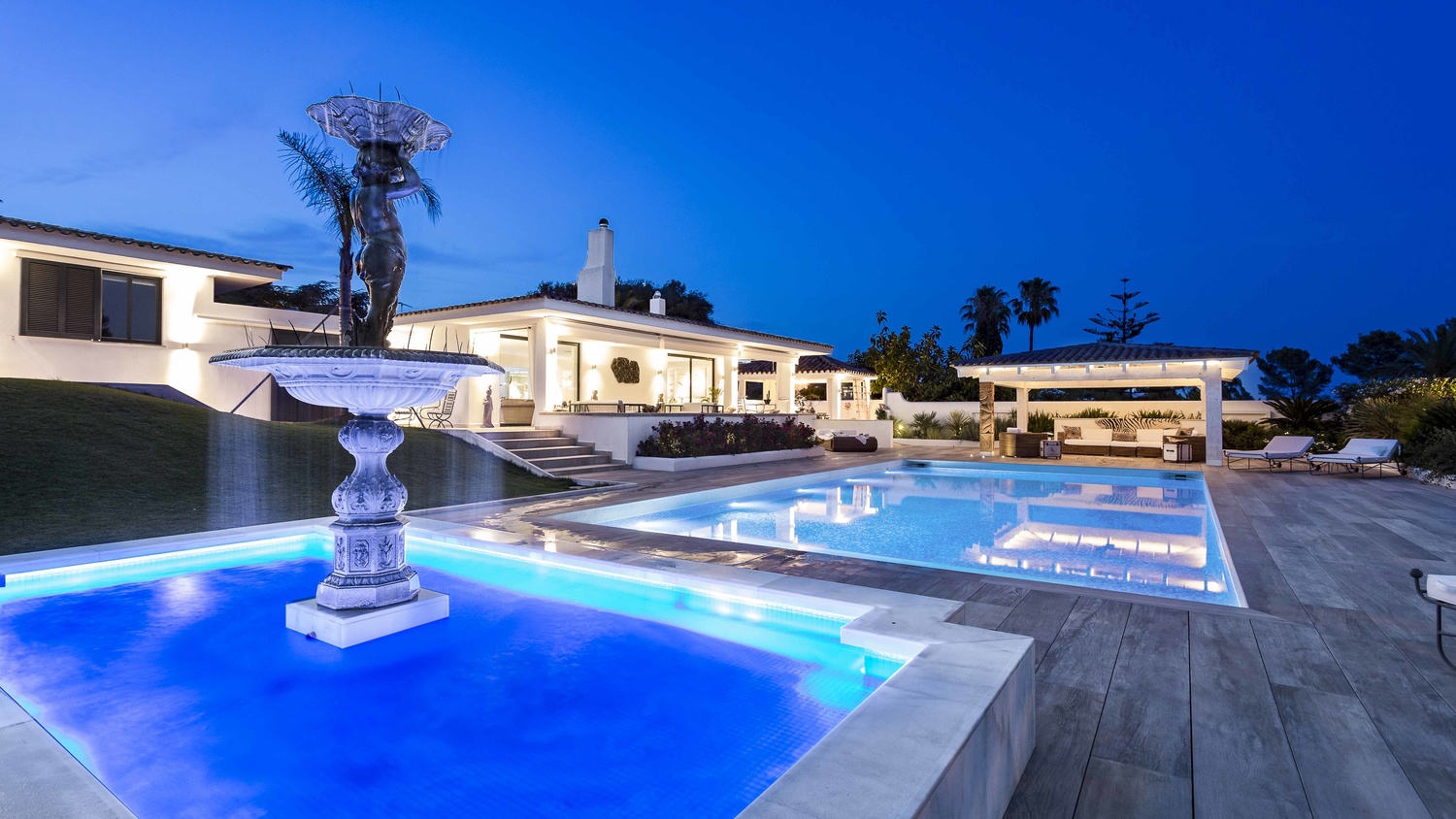 Outside area: The villa is located on an 8000 sqm flat garden plot, with an extensive lawn. The gardens have their own entrance to access the plot, the garden is extremely well maintained and there are separate gardeners quarters. The large outdoor pool is a salt-water analyze pool and underneath the pool area there is one large independent accessible guesthouse with 3 bedrooms, open kitchen, living area and two bathrooms, as well as sauna.