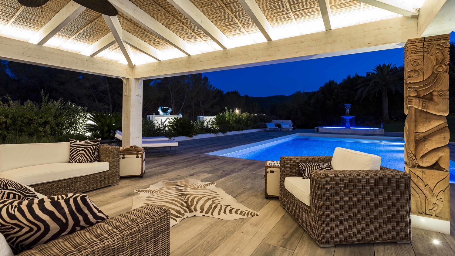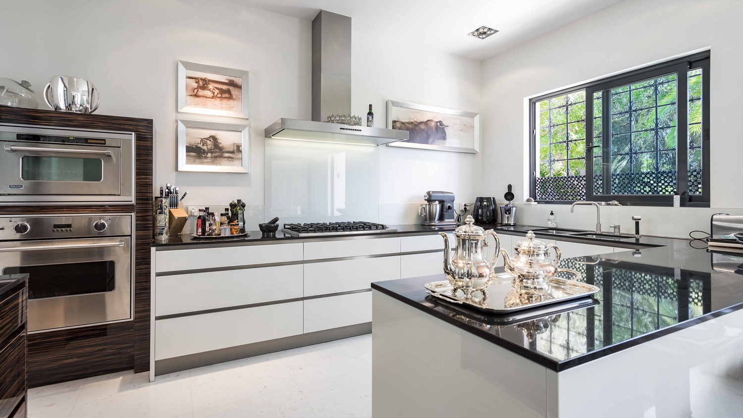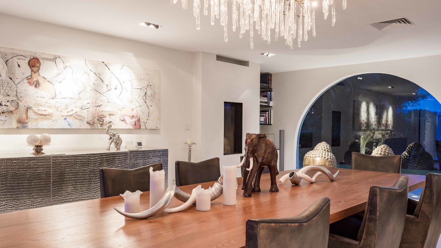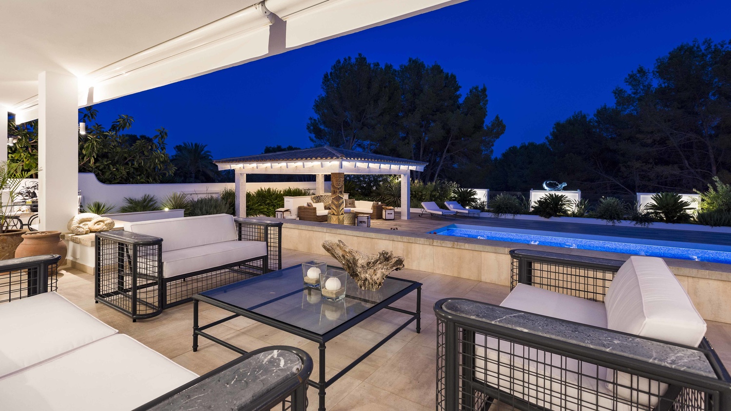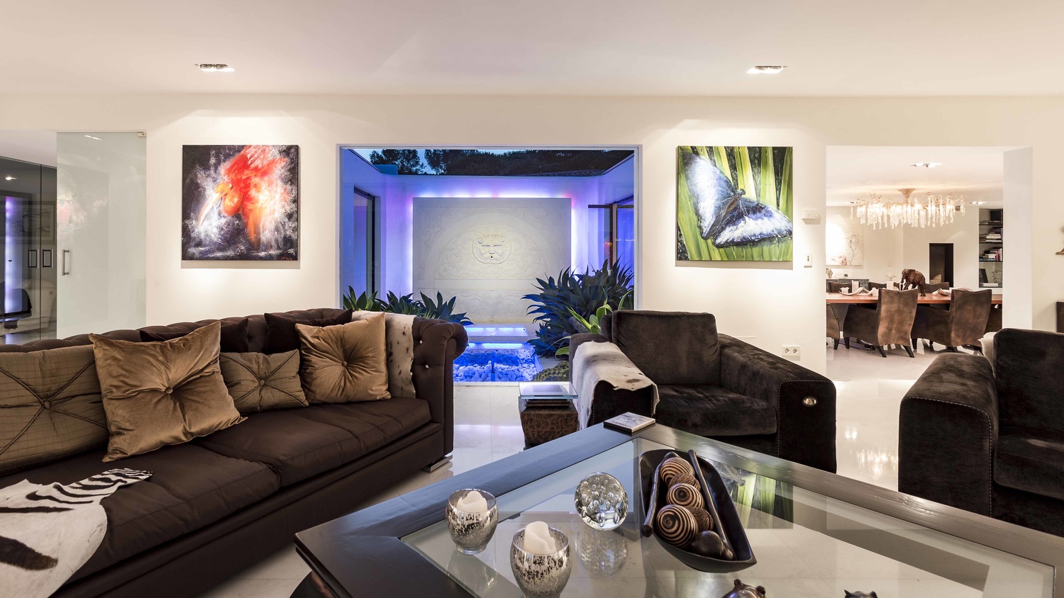 Outside area: The villa is located on an 8000 sqm flat garden plot, with an extensive lawn. The gardens have their own entrance to access the plot, the garden is extremely well maintained and there are separate gardeners quarters. The large outdoor pool is a salt-water analyze pool and underneath the pool area there is one large independent accessible guesthouse with 3 bedrooms, open kitchen, living area and two bathrooms, as well as sauna.