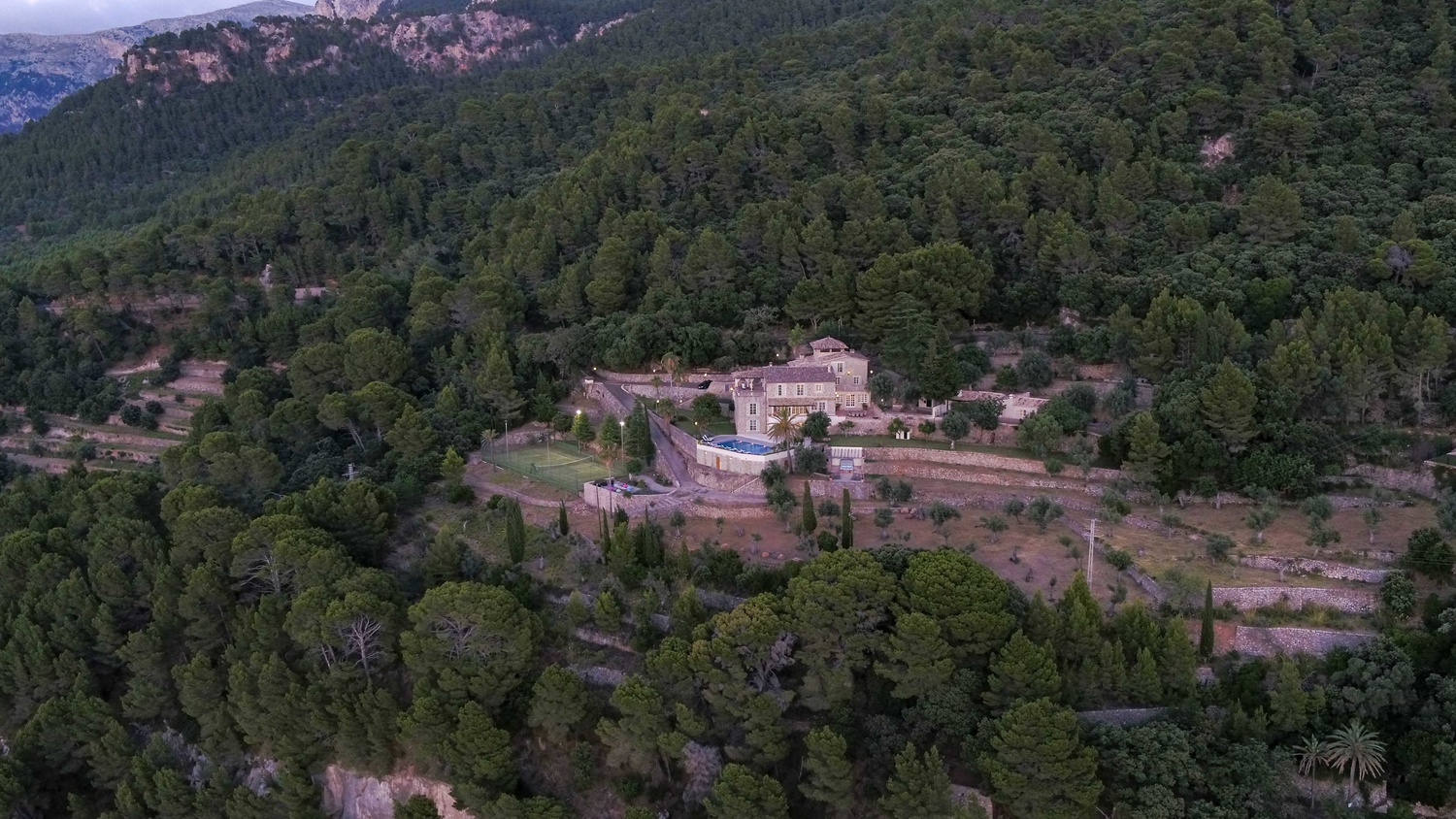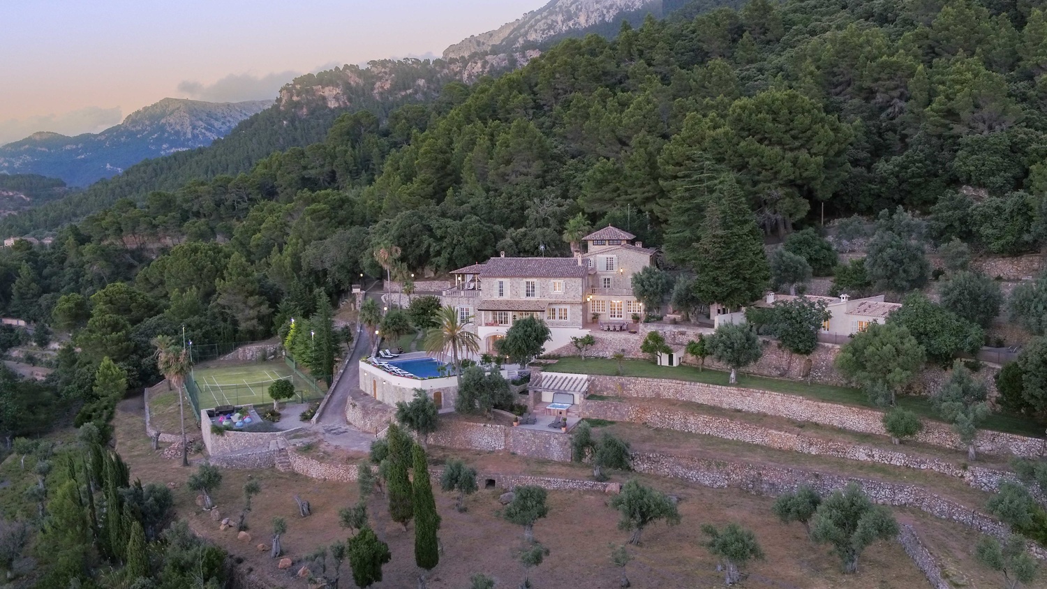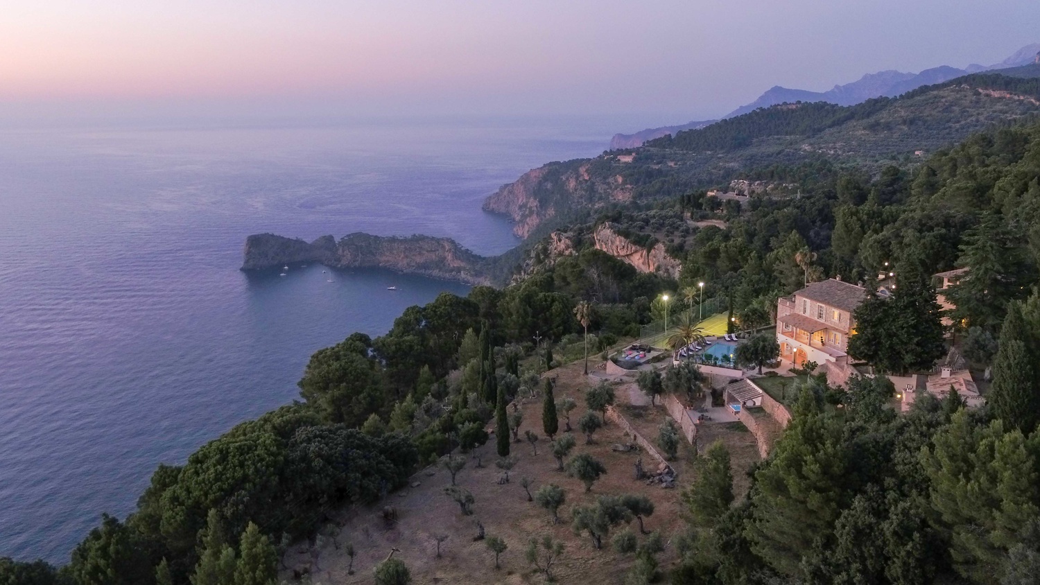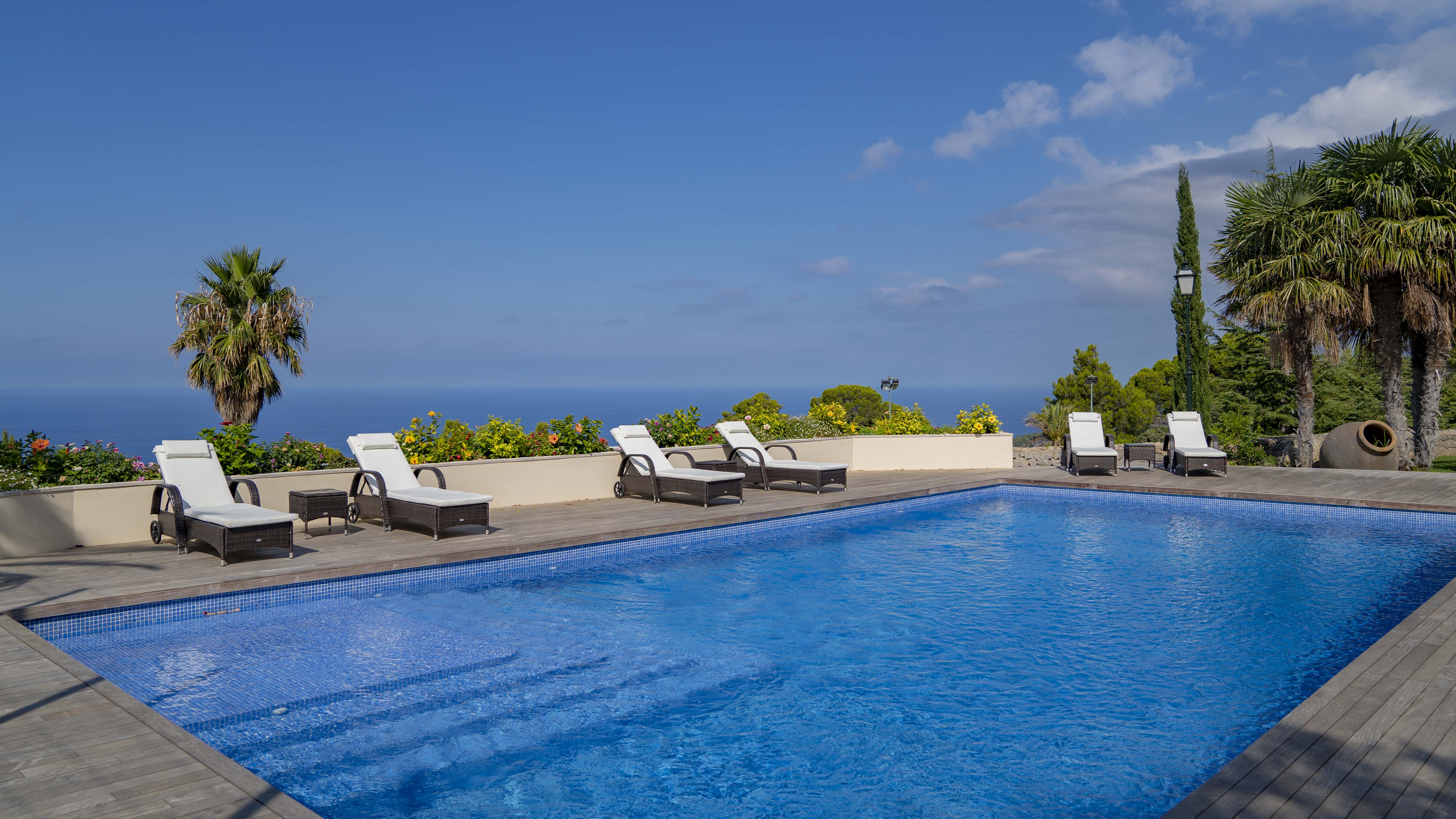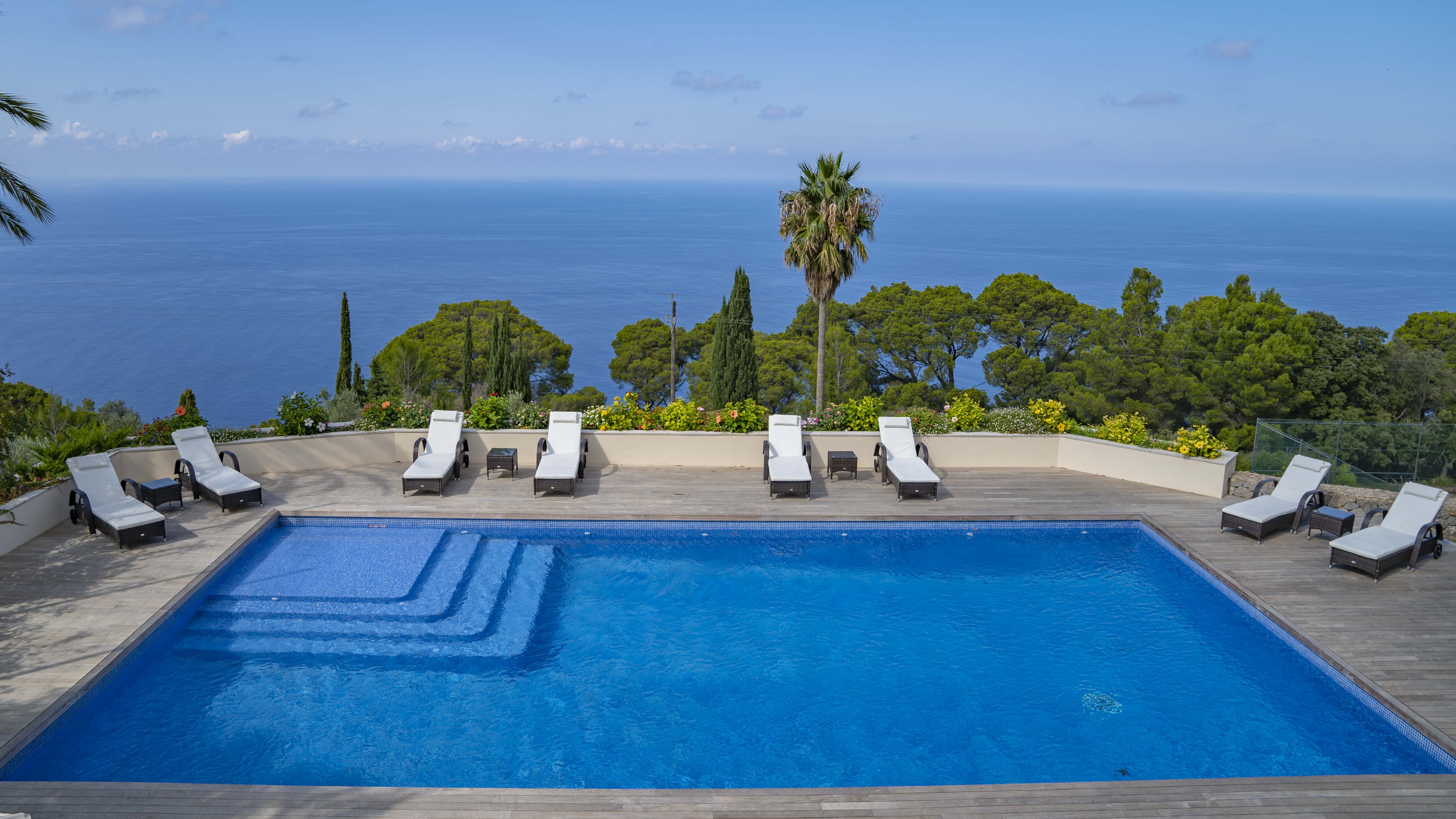 Majestically located on the west coast of Majorca in first line of the sea, this property generates a moment of astonishing silence as soon as you reach the property of more than 23.000 m2. Awe-stricken, the visitor admires the monument of architectural art in this fascinating setting. In any Hollywood classic, this set would be the star. The property invites to go for walks and the private tennis court has centre-court proportions.