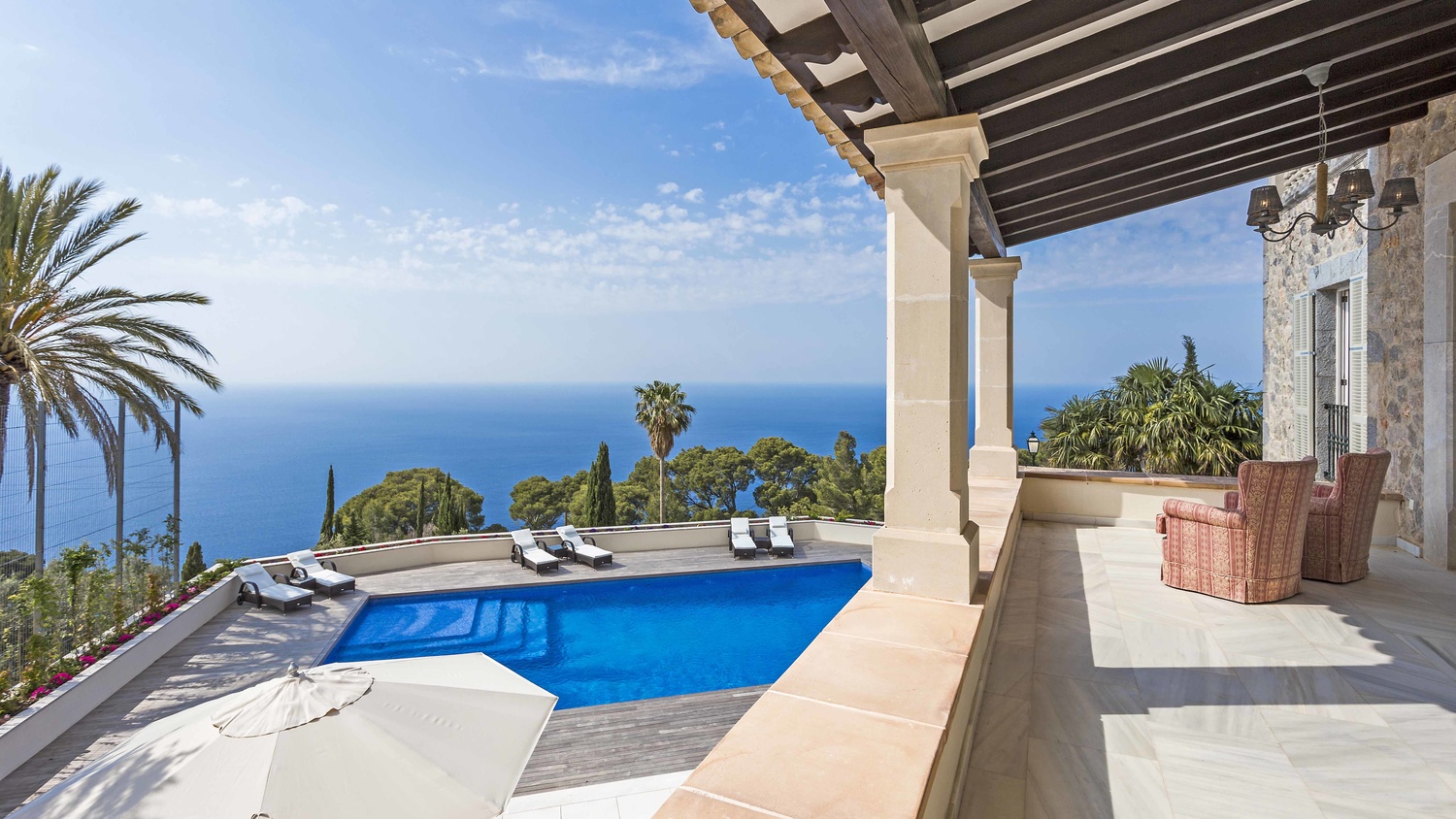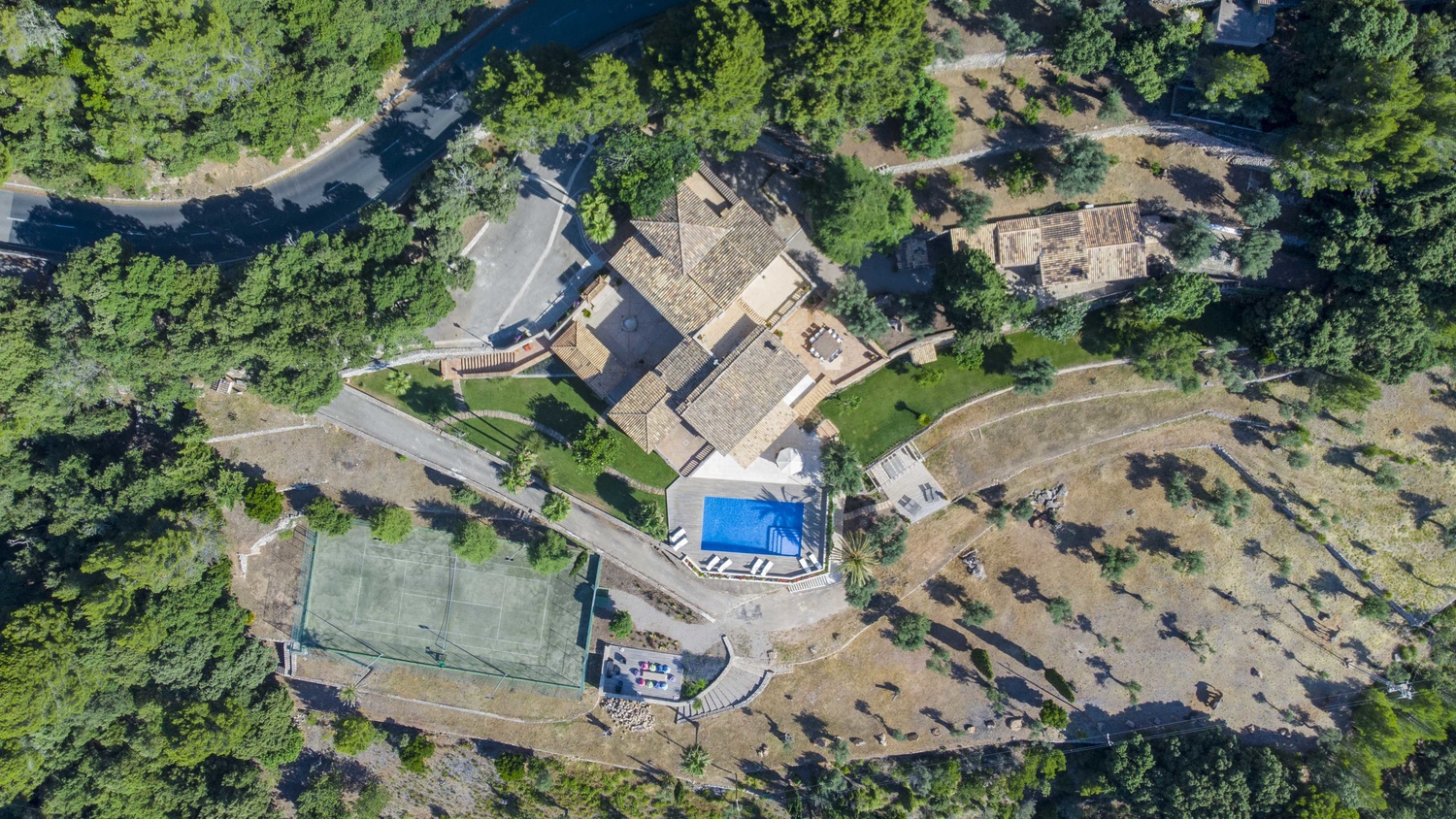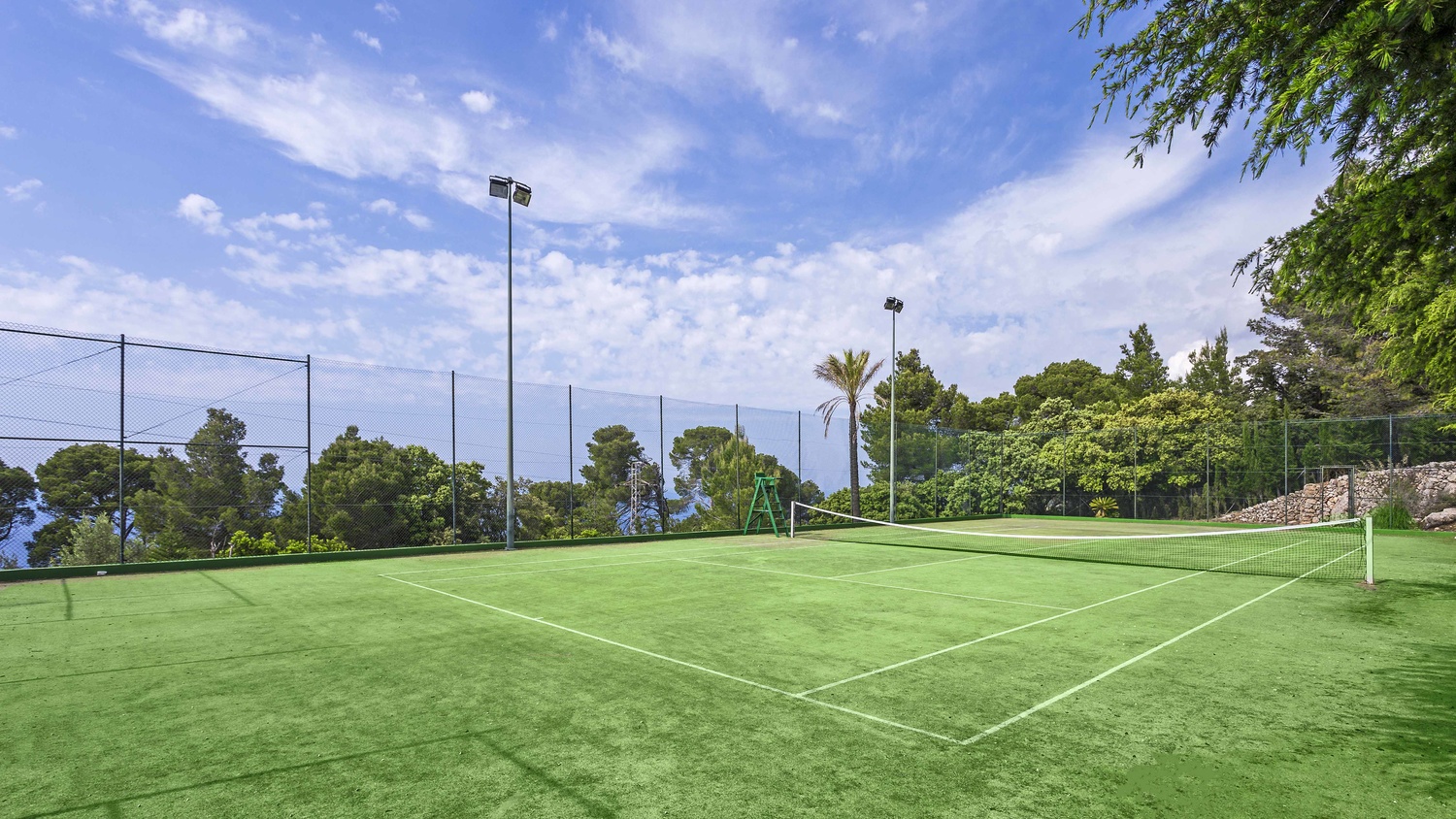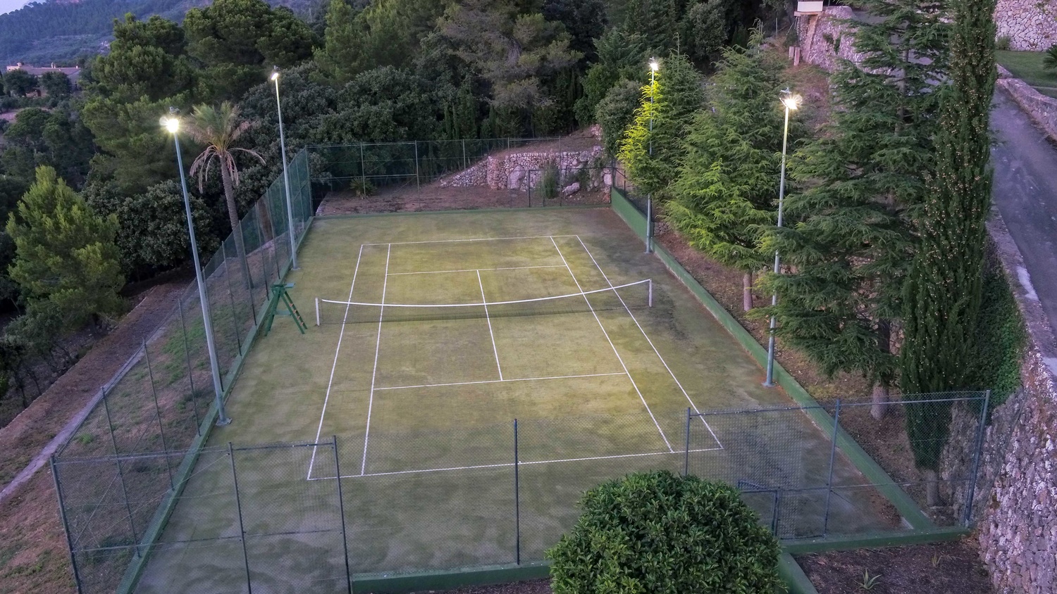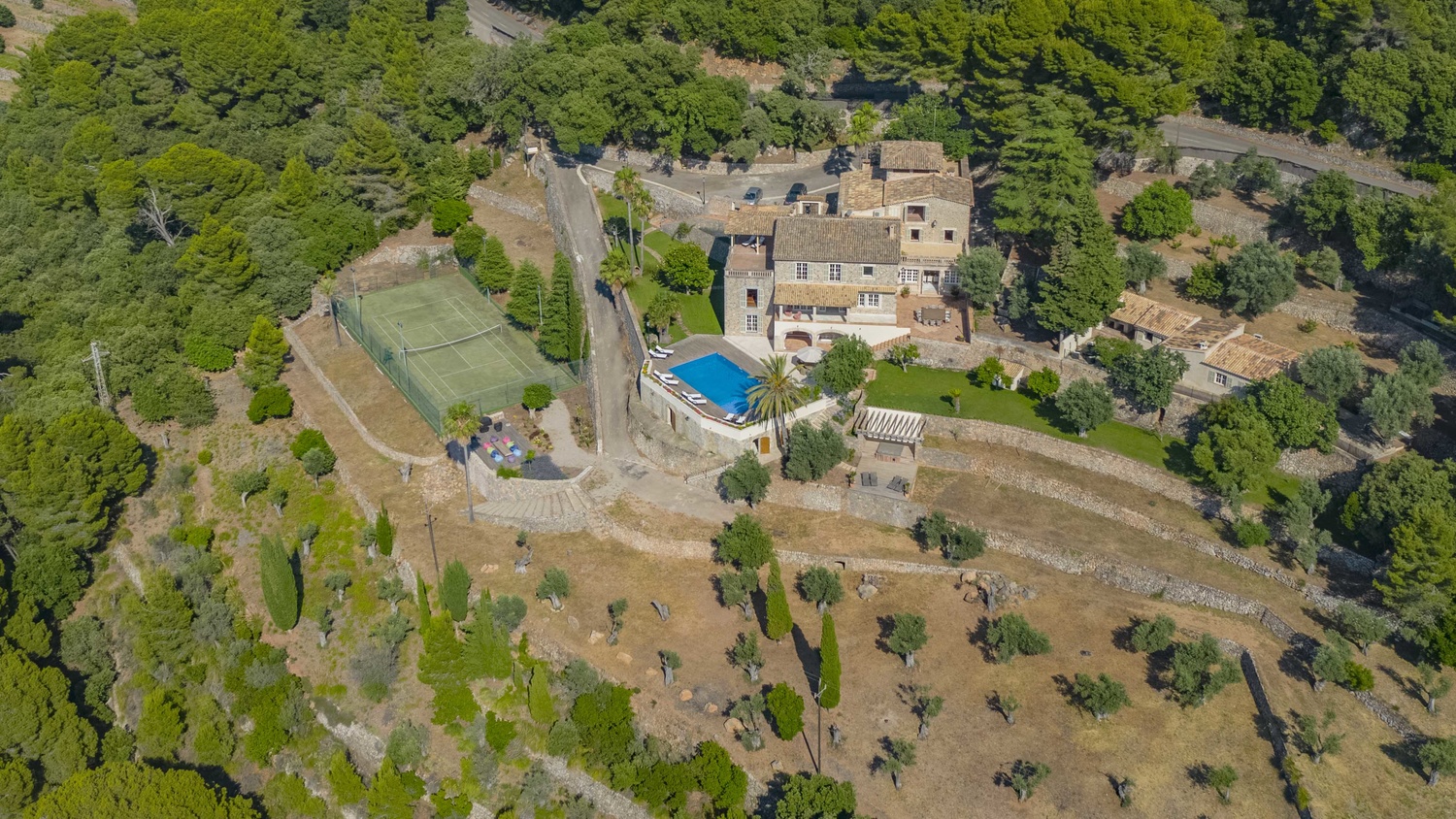 Majestically located on the west coast of Majorca in first line of the sea, this property generates a moment of astonishing silence as soon as you reach the property of more than 23.000 m2. Awe-stricken, the visitor admires the monument of architectural art in this fascinating setting. In any Hollywood classic, this set would be the star. The property invites to go for walks and the private tennis court has centre-court proportions.