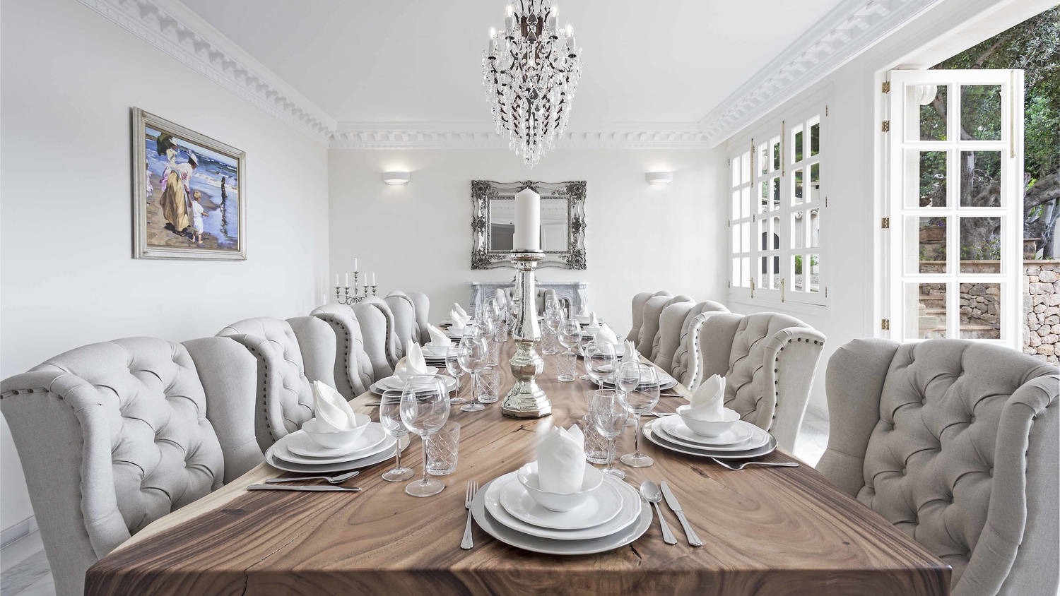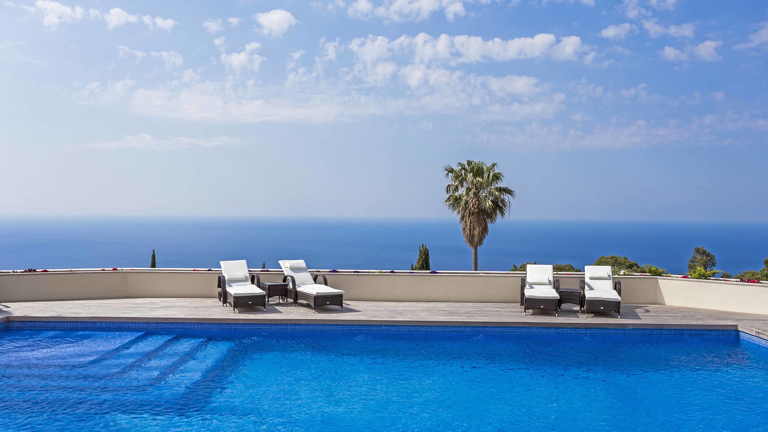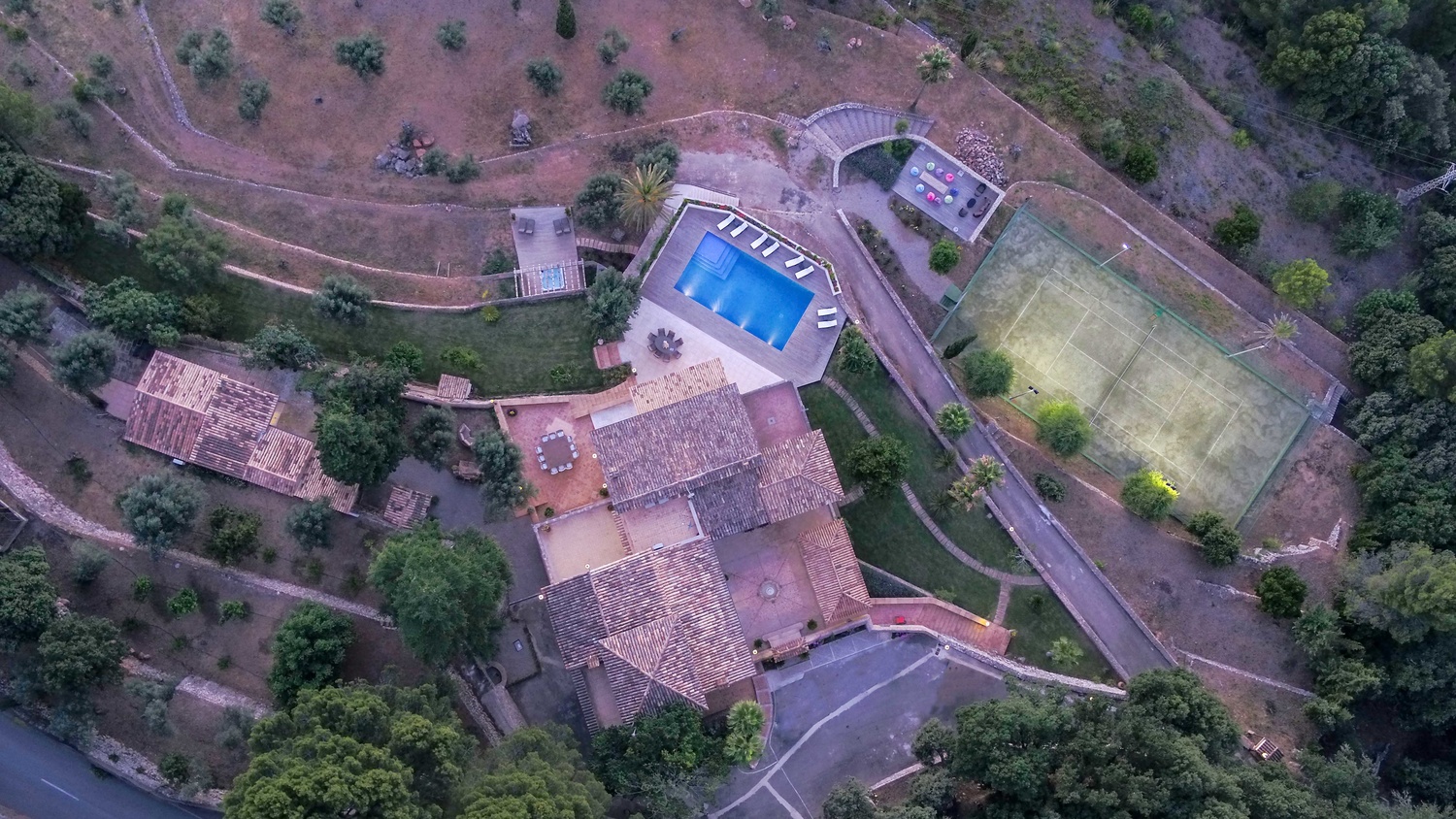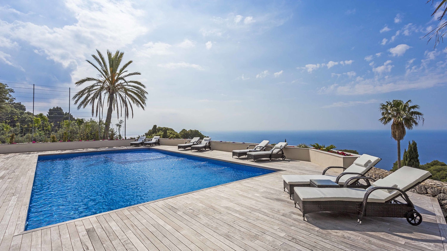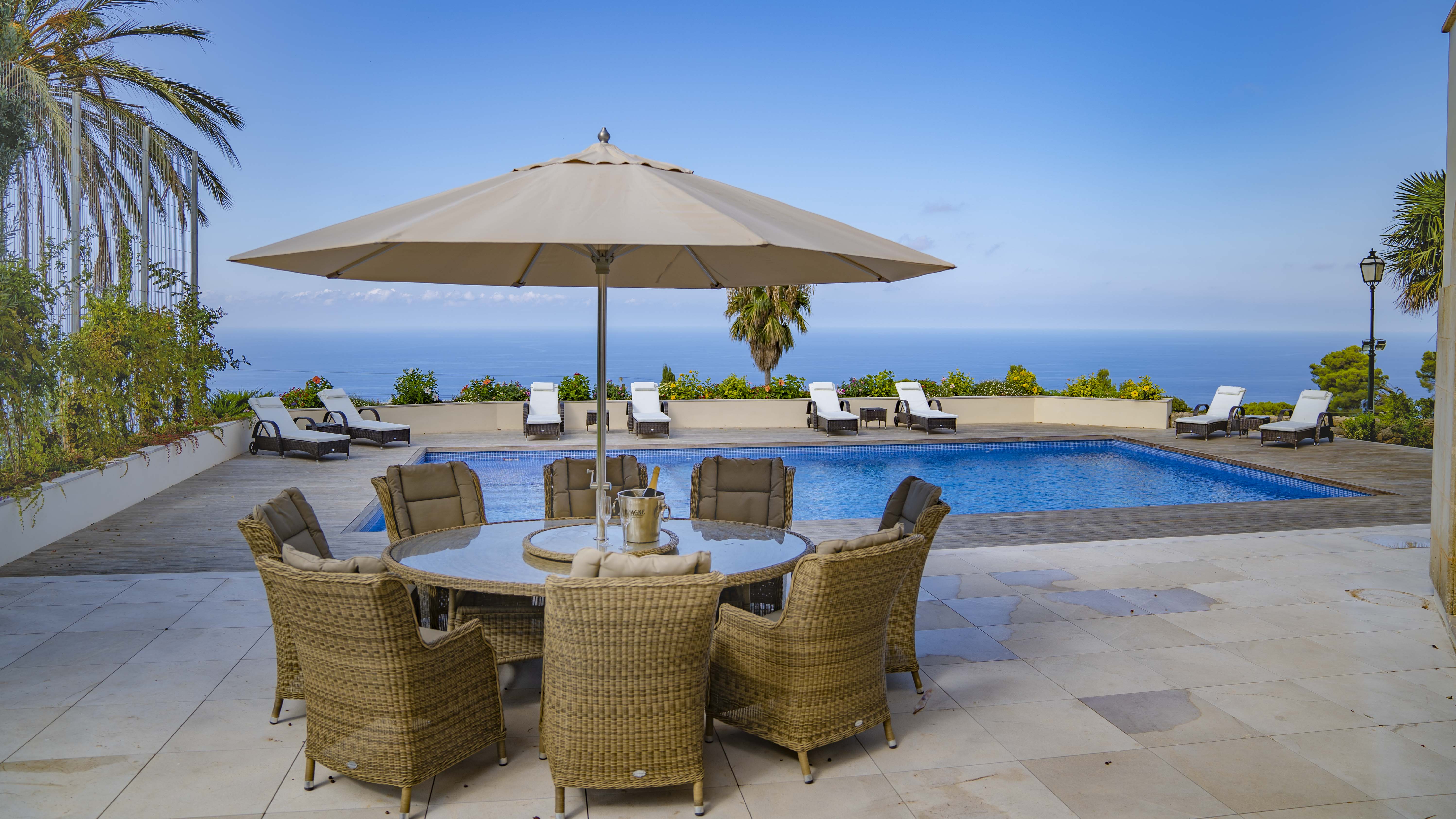 Majestically located on the west coast of Majorca in first line of the sea, this property generates a moment of astonishing silence as soon as you reach the property of more than 23.000 m2. Awe-stricken, the visitor admires the monument of architectural art in this fascinating setting. In any Hollywood classic, this set would be the star. The property invites to go for walks and the private tennis court has centre-court proportions.