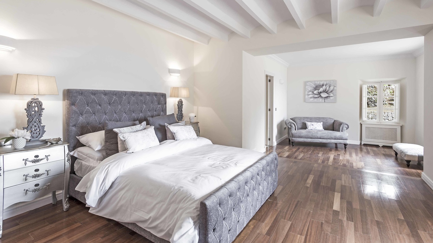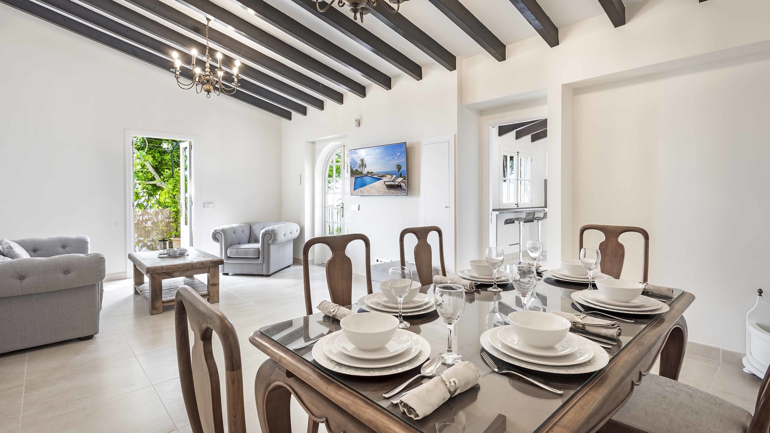 The luxury guest house offers a living and dining room and two bedrooms, one of them with en-suite bathroom.
