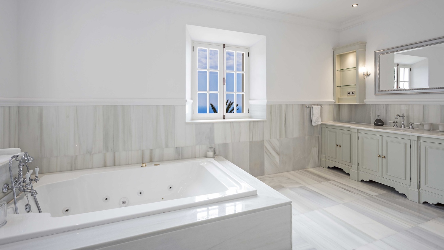 Via a central courtyard in front of the main entrance you enter the entrance hall, which serves as a central interface in the villa.