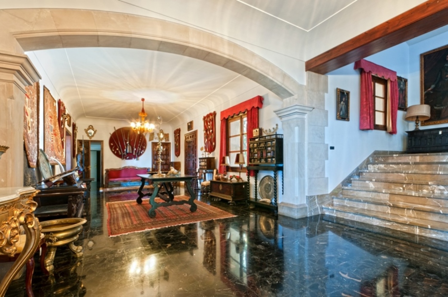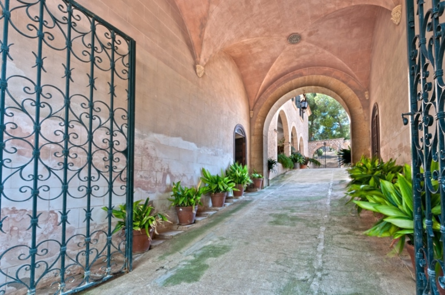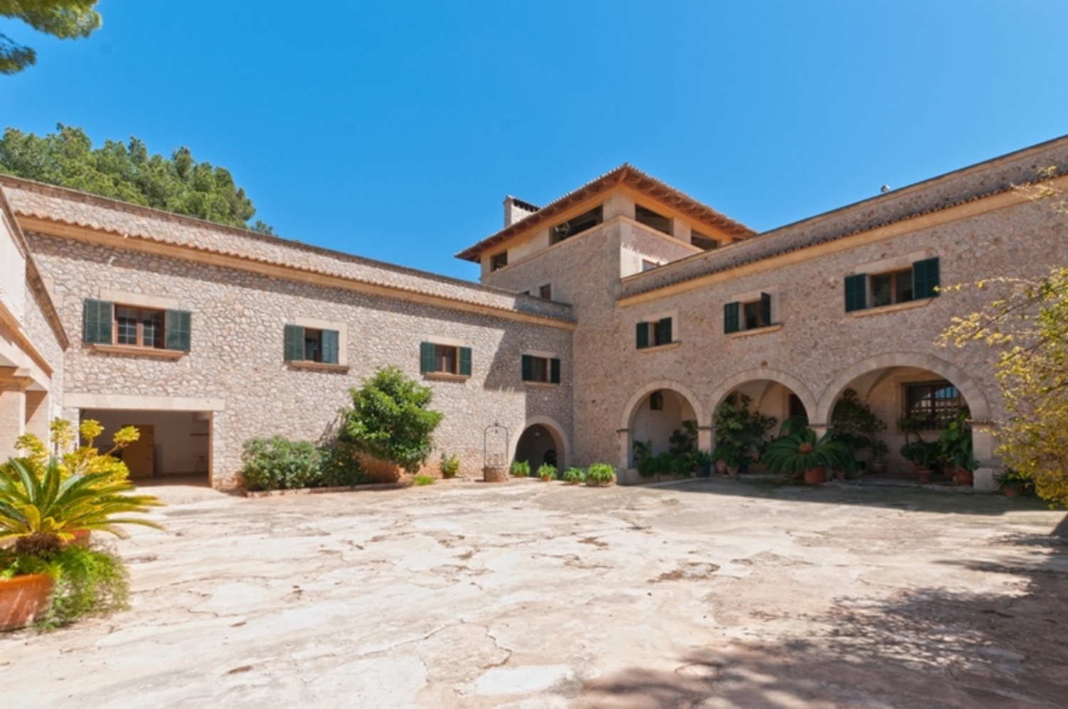 There is a substantial farmhouse in need of restoration. The mansion has a large courtyard with garages, numerous terraces, covered tower terrace, two swimming pools, a tennis court, and various outbuildings. The property is full of authentic character, stone-faced, wood paneling, a central heating system. The real estate is in need of modernization.