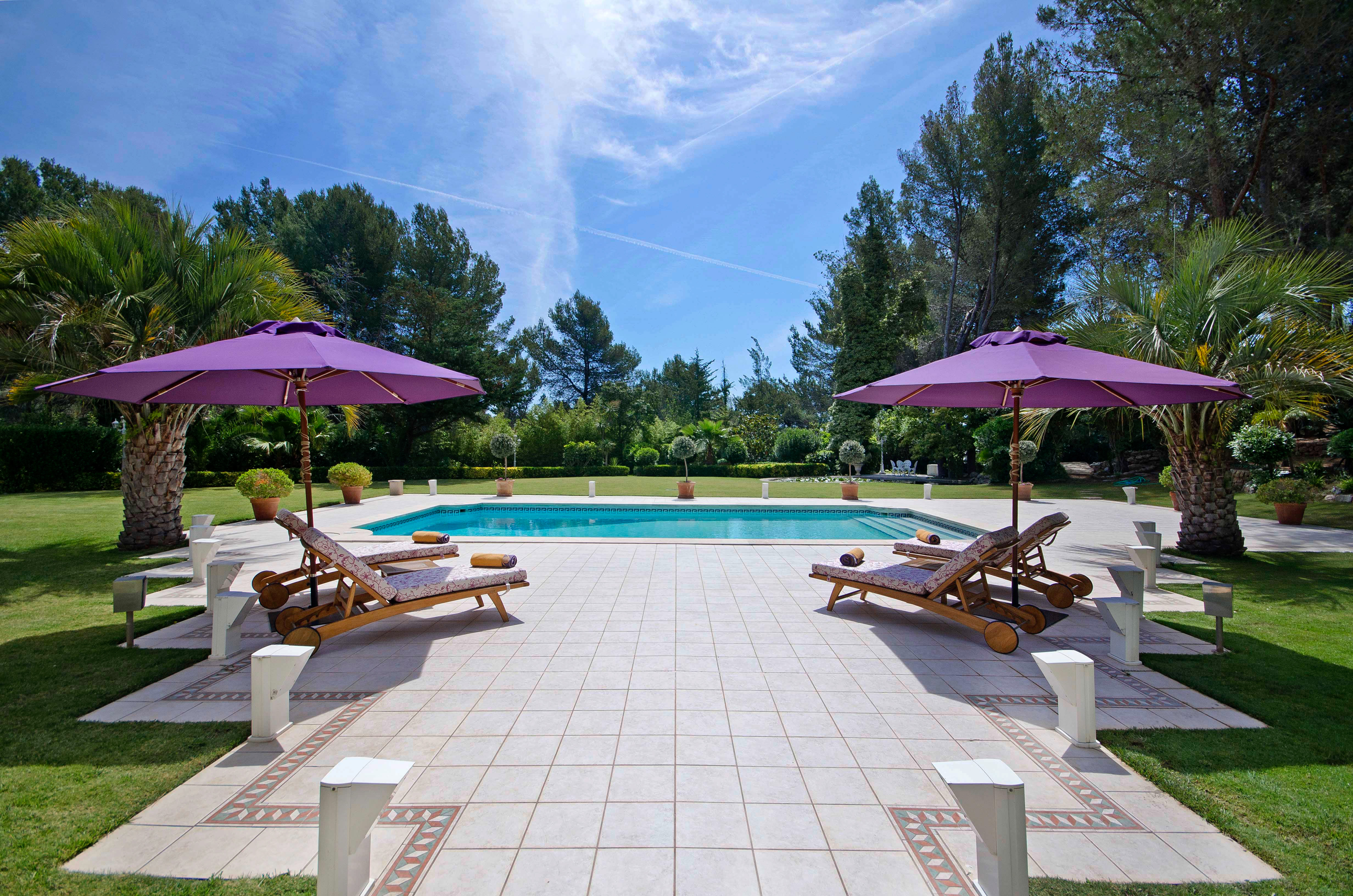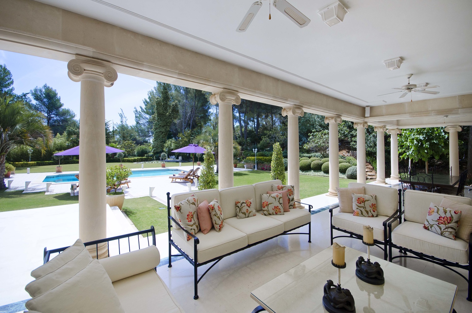 Beautiful inviting open and covered terraces with very large swimming pool.