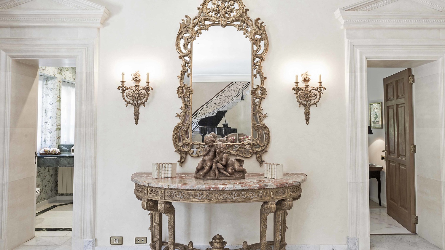 Very high building quality and materials: marble and parquet floors, double glazed windows, air conditioning, security system with cameras.