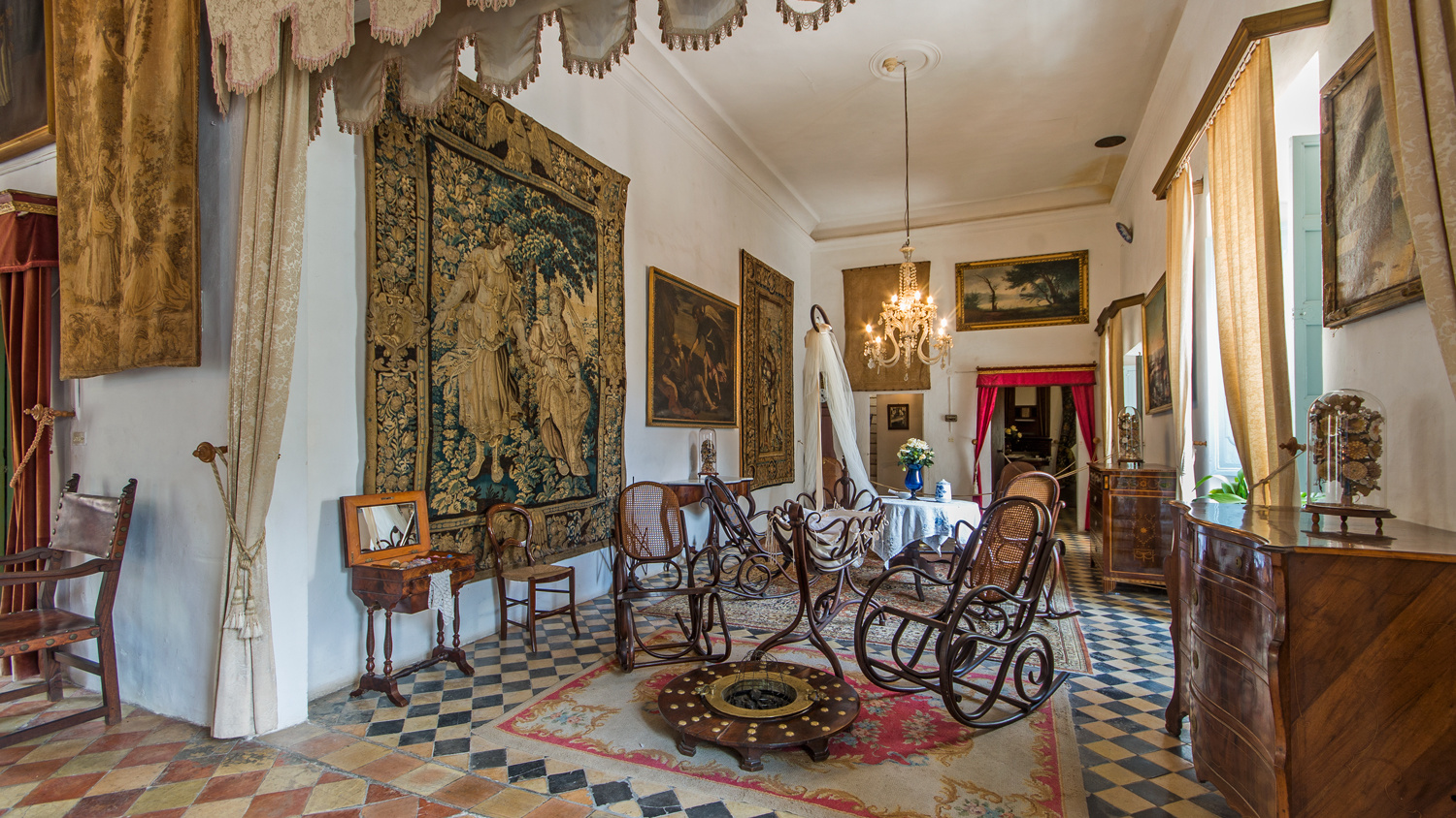 A large number of traditional crafts can be seen on your way through the mansion: from weaving to making oil, processing grain and manufacturing paper; occupations such as doctors and perfumers as well as several rooms dedicated to the day-to-day activities of the Possessió (kitchens, parlours, bedrooms, games rooms and rooms for children). At present the great halls of the Possessió are used as venues for all types of events and celebrations.
