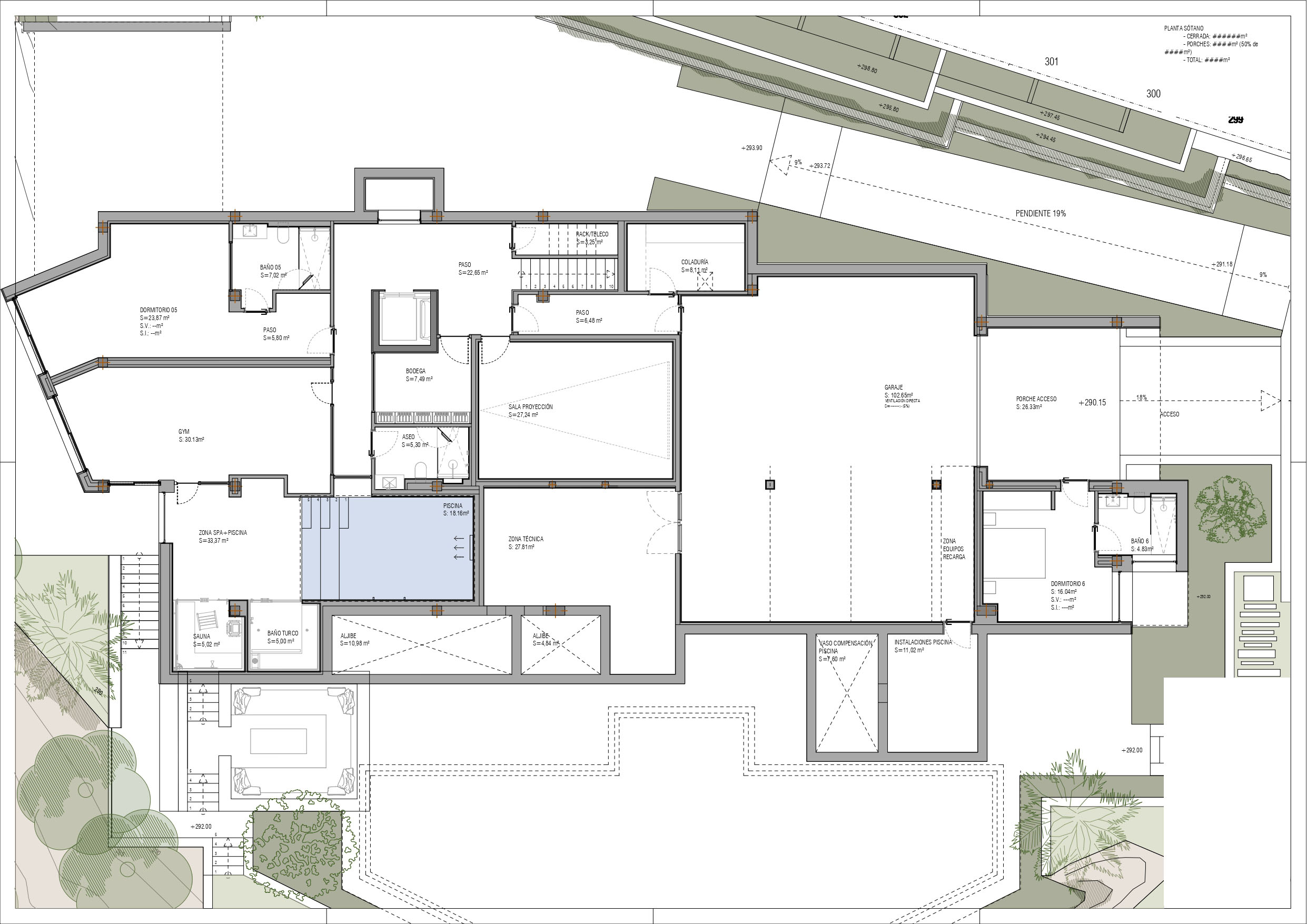 Basement: garage for three cars, cinema room, cellar, spa area with indoor pool, sauna and Turkish bath. There are also two more bedrooms, both with en-suite bathrooms and a spacious gym, with access to a private terrace with views.