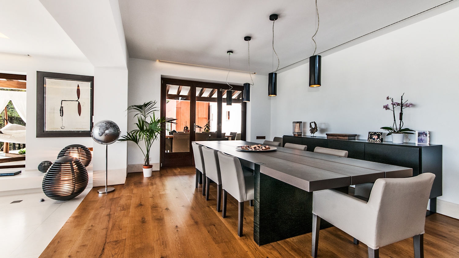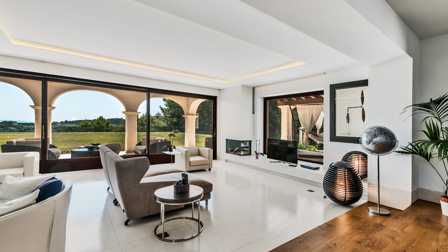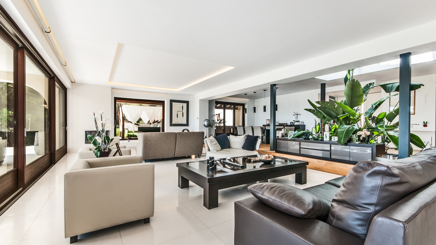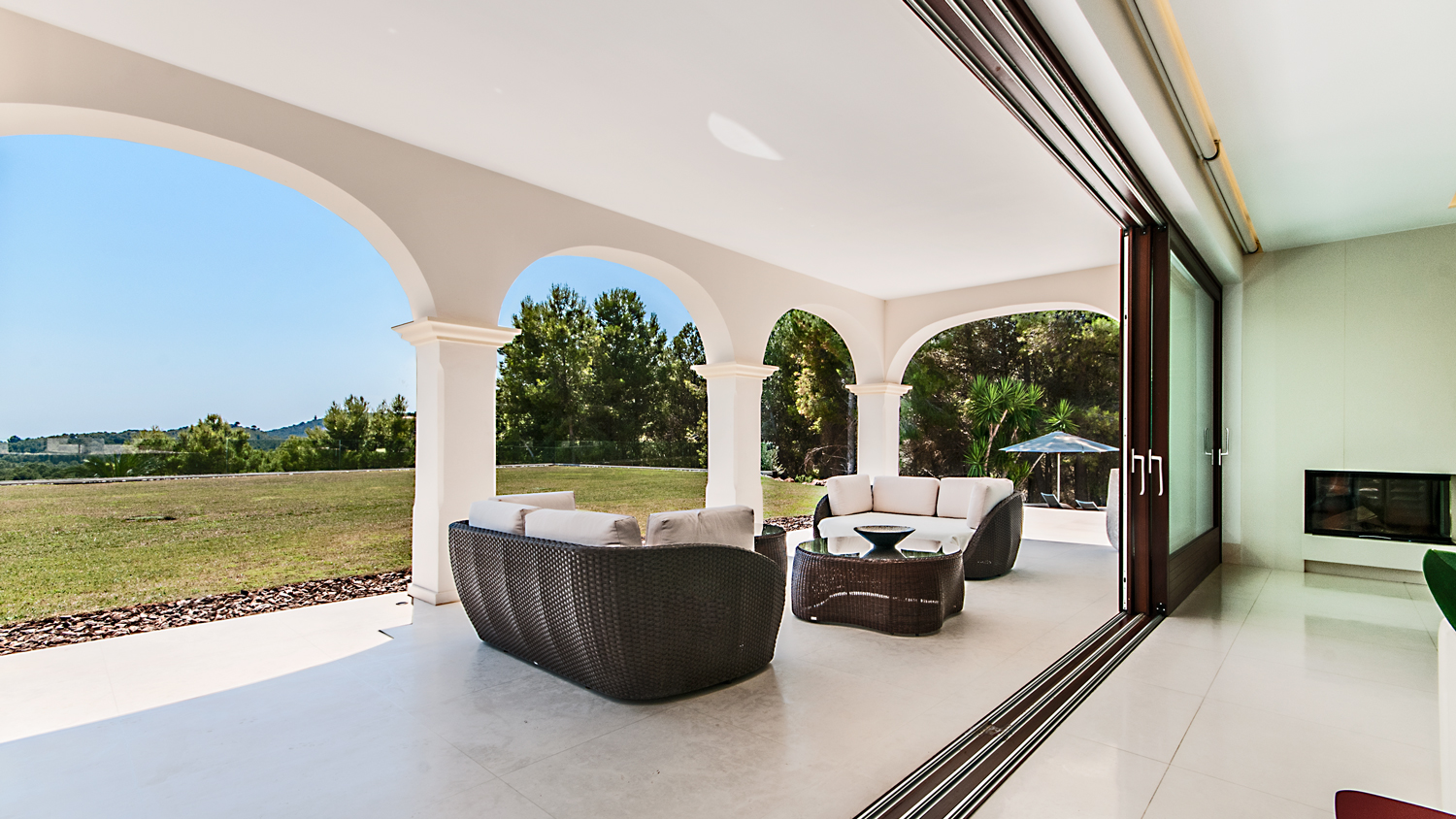 The villa is situated on the largest plot in Son Vida. Inviting open and covered terraces with swimming pool and fantastic views to the bay of Palma.