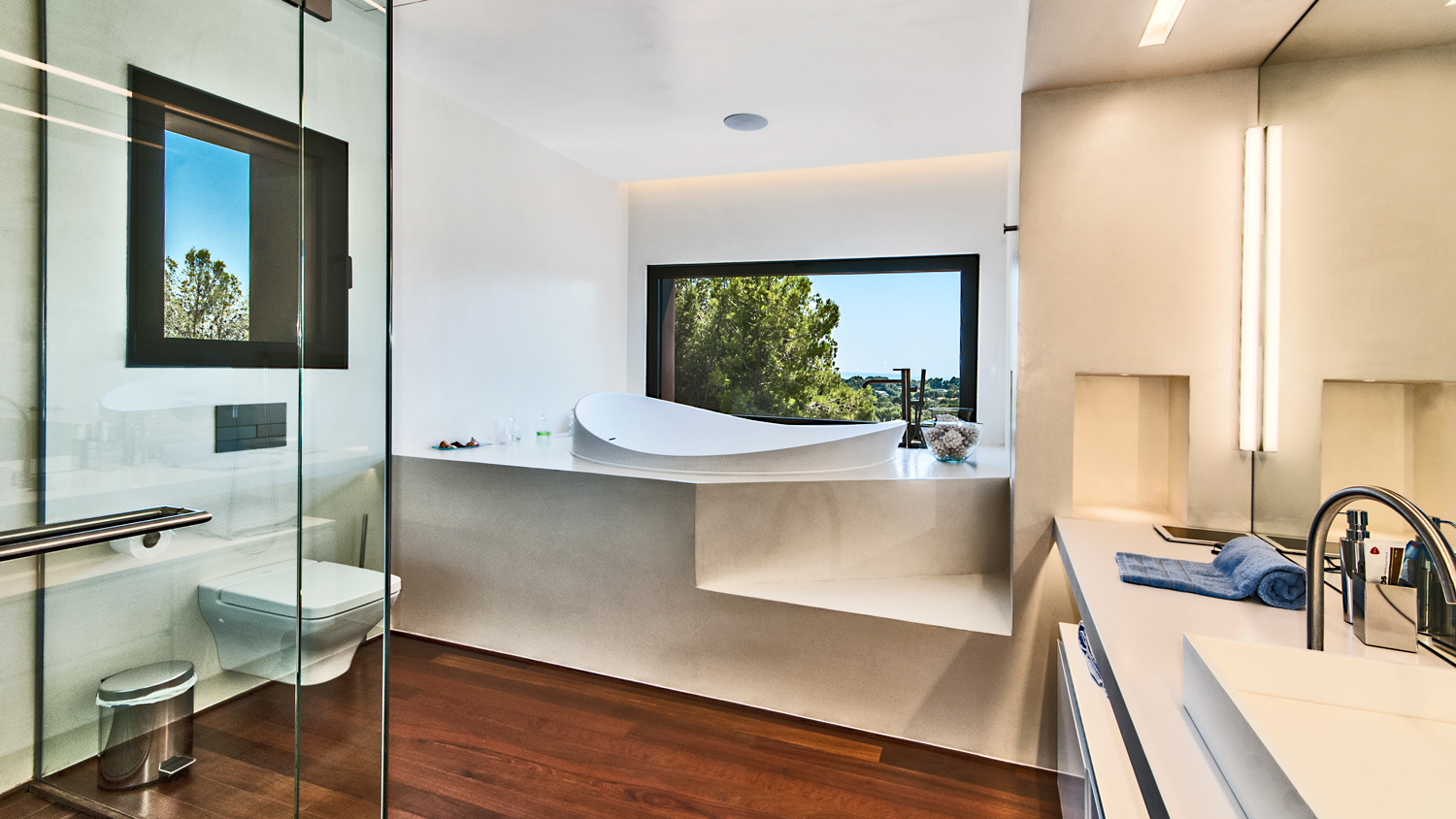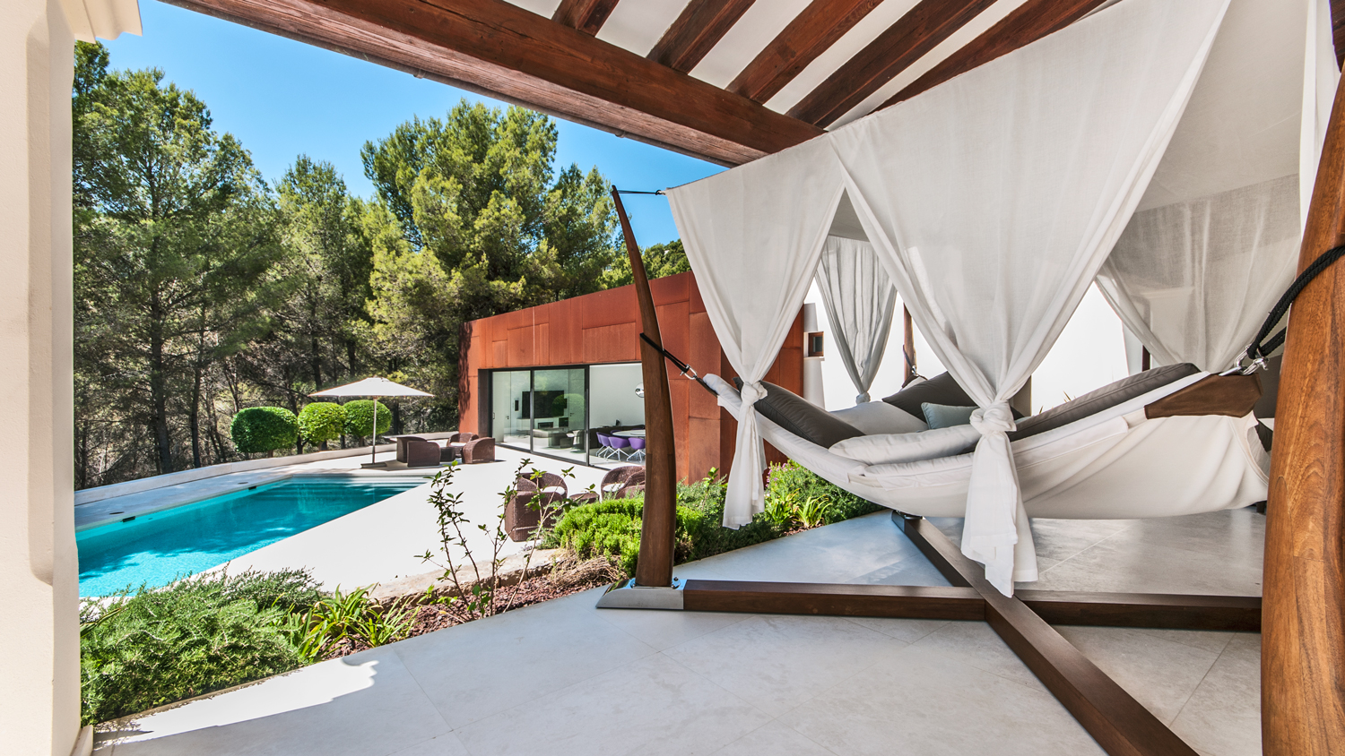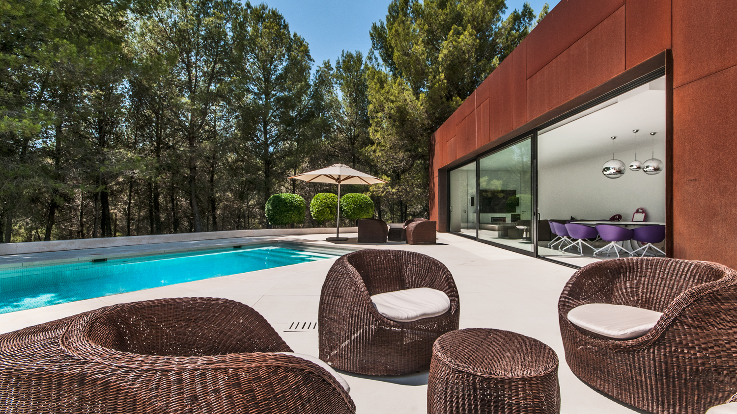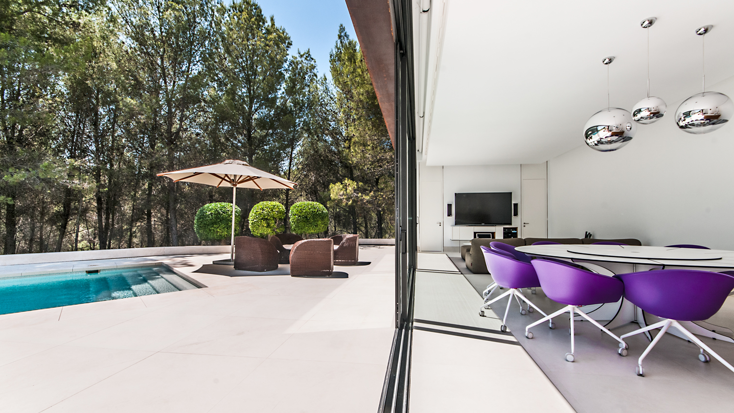 The villa is situated on the largest plot in Son Vida. Inviting open and covered terraces with swimming pool and fantastic views to the bay of Palma.