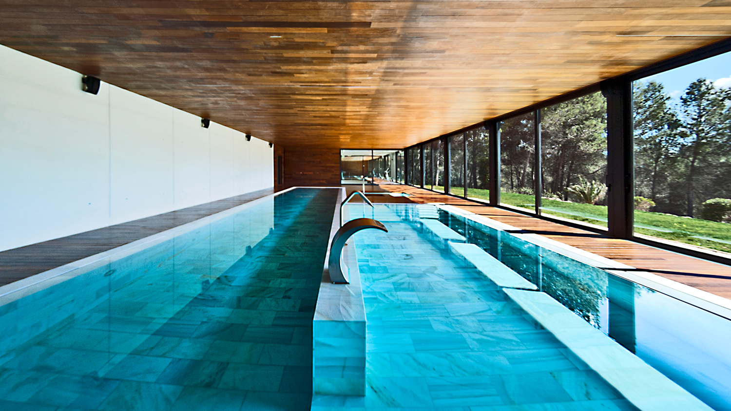 Basement: Large spa area with indoor swimming pool, jacuzzi and gym with stunning views, sauna and fully equipped bathroom.