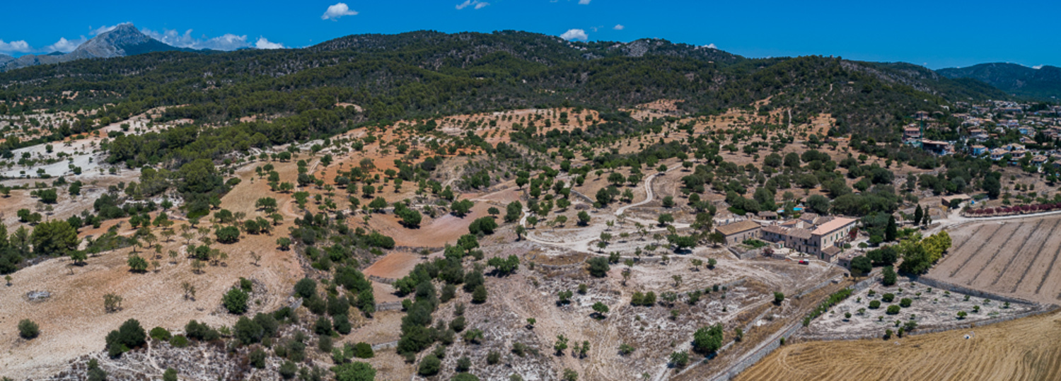 The historic mansion can be reached via the imposing driveway to this unique property. Just after the gate closes behind you, the time of peace and quiet begins. 1.300.000 m2 pure Mallorcan landscape, a very imposing large piece of Mallorca and one of the last paradises on this island.