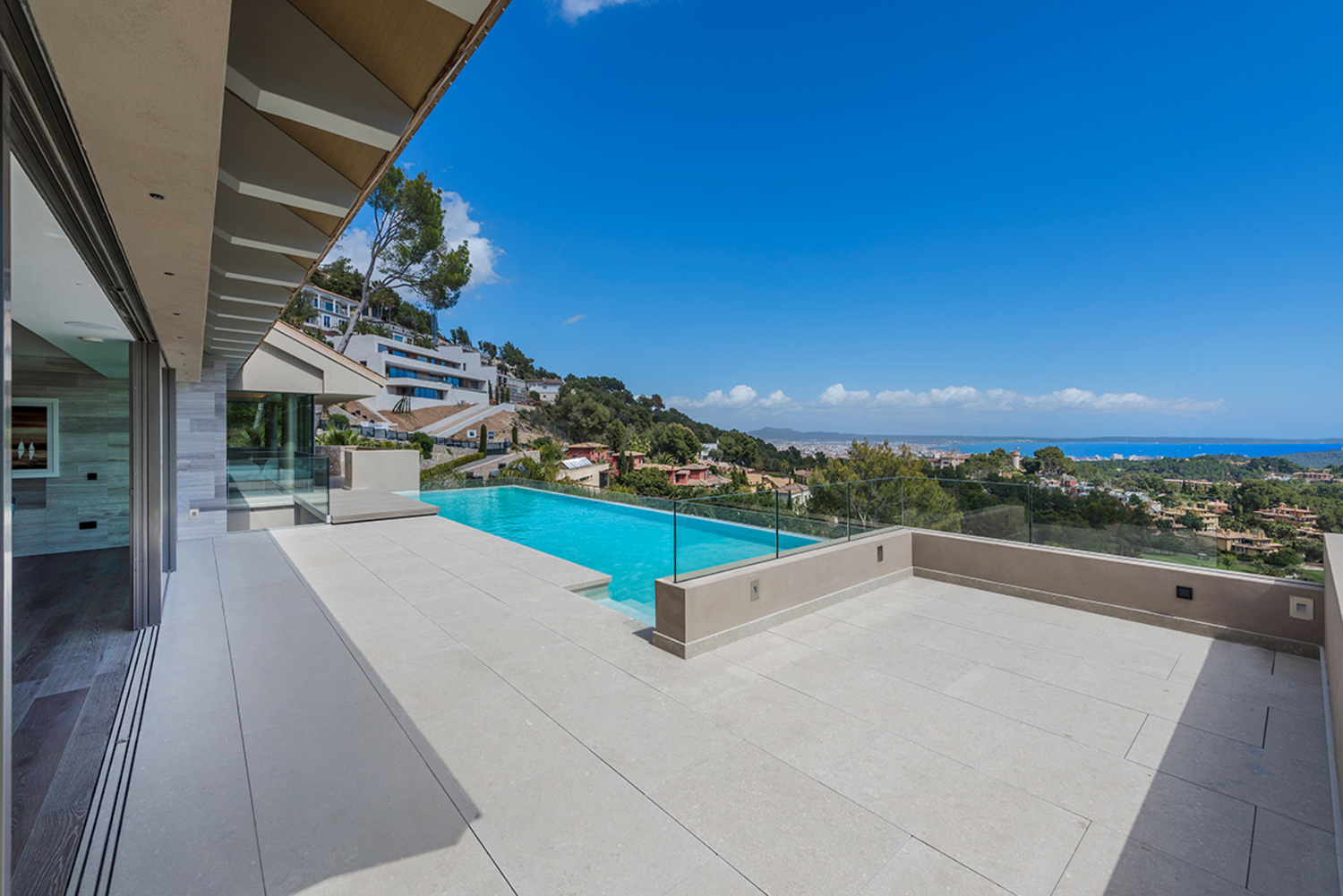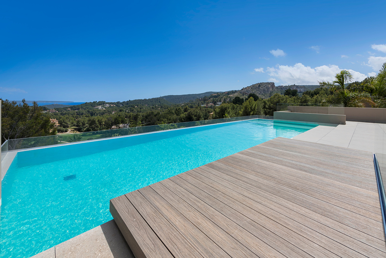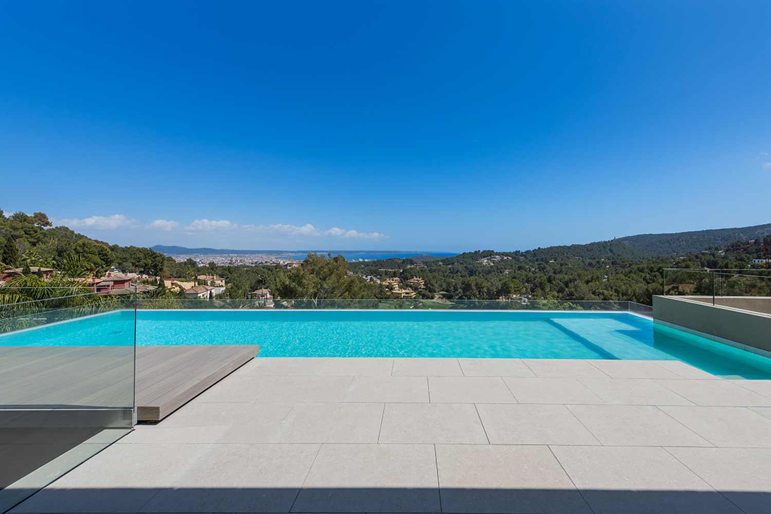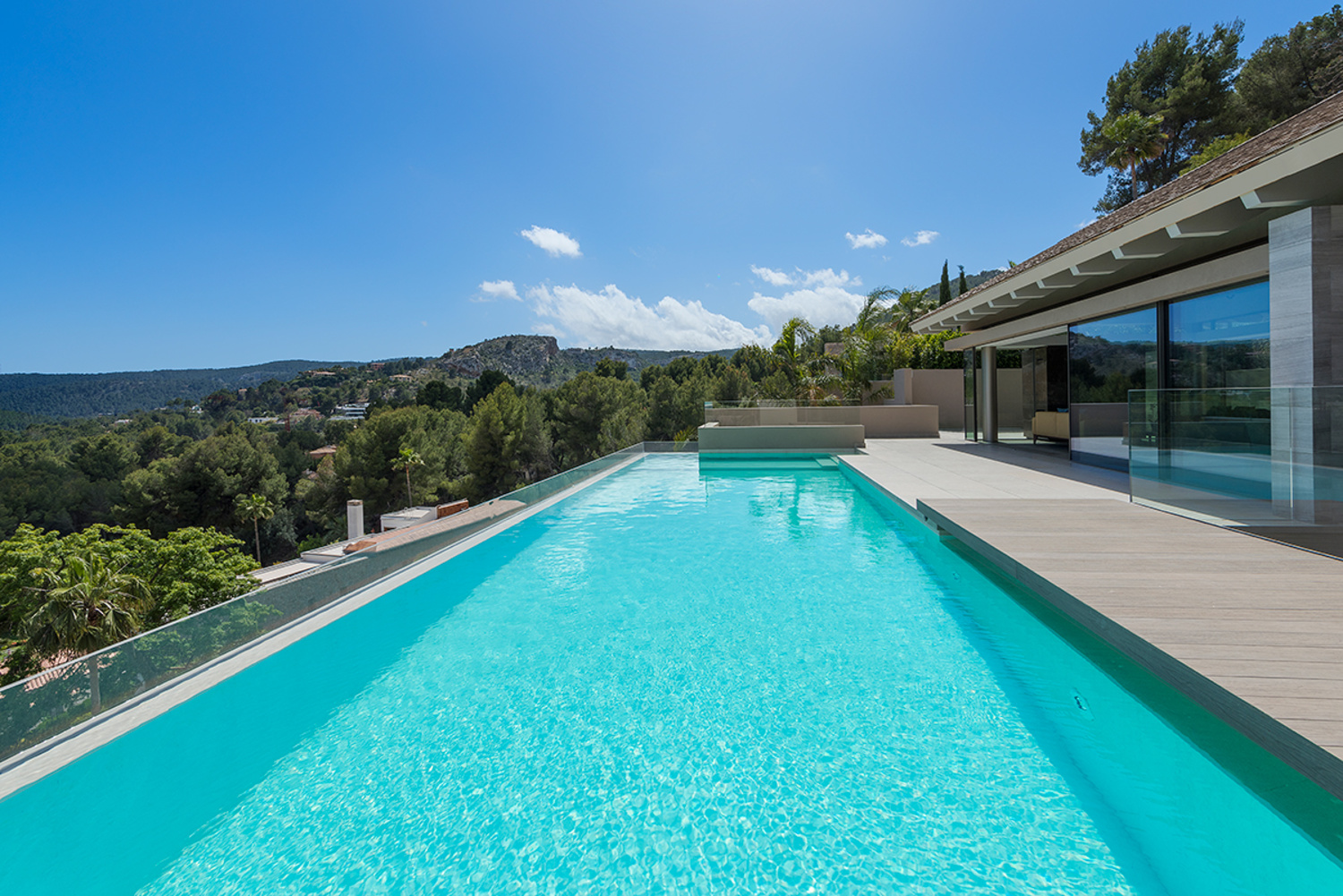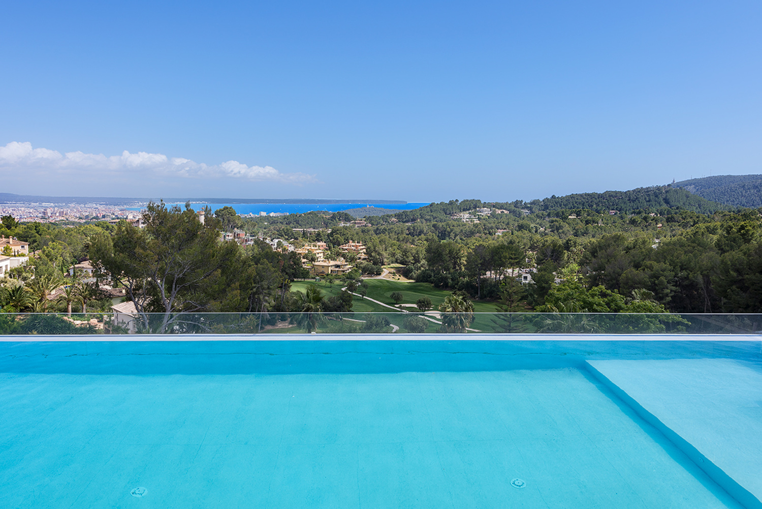 From pool area and the large infinity pool one has a stunning view towards one of the Golf courses of Son Vida.