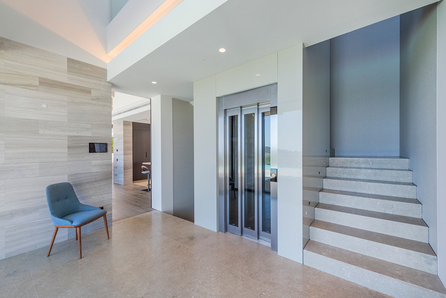 Entrance floor: bright entrance hall, lift, large open living dining area with an open connection to the kitchen with a covered terrace area, guest toilet, TV or games room, one guest bedroom with dressing area and bathroom en-suite.