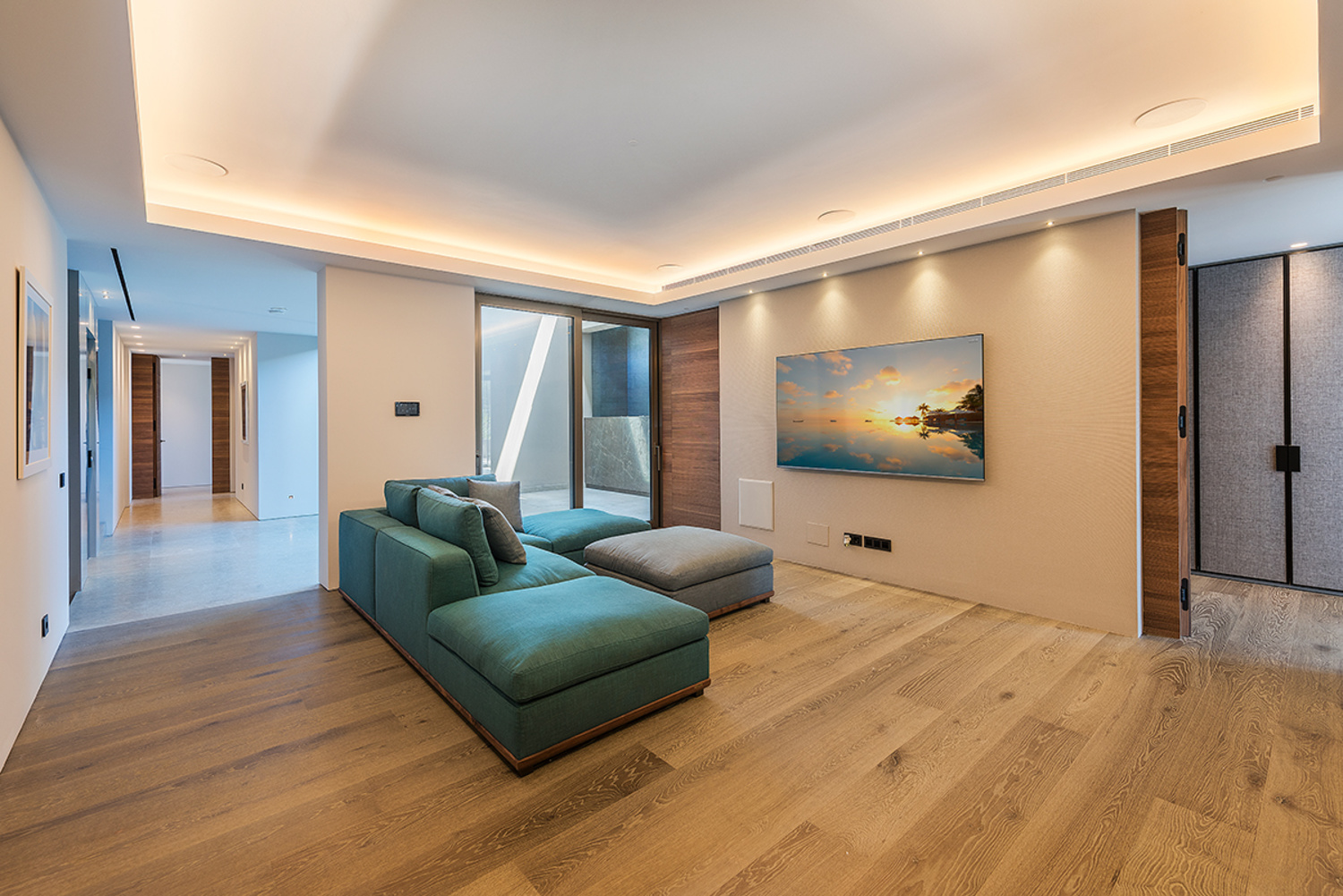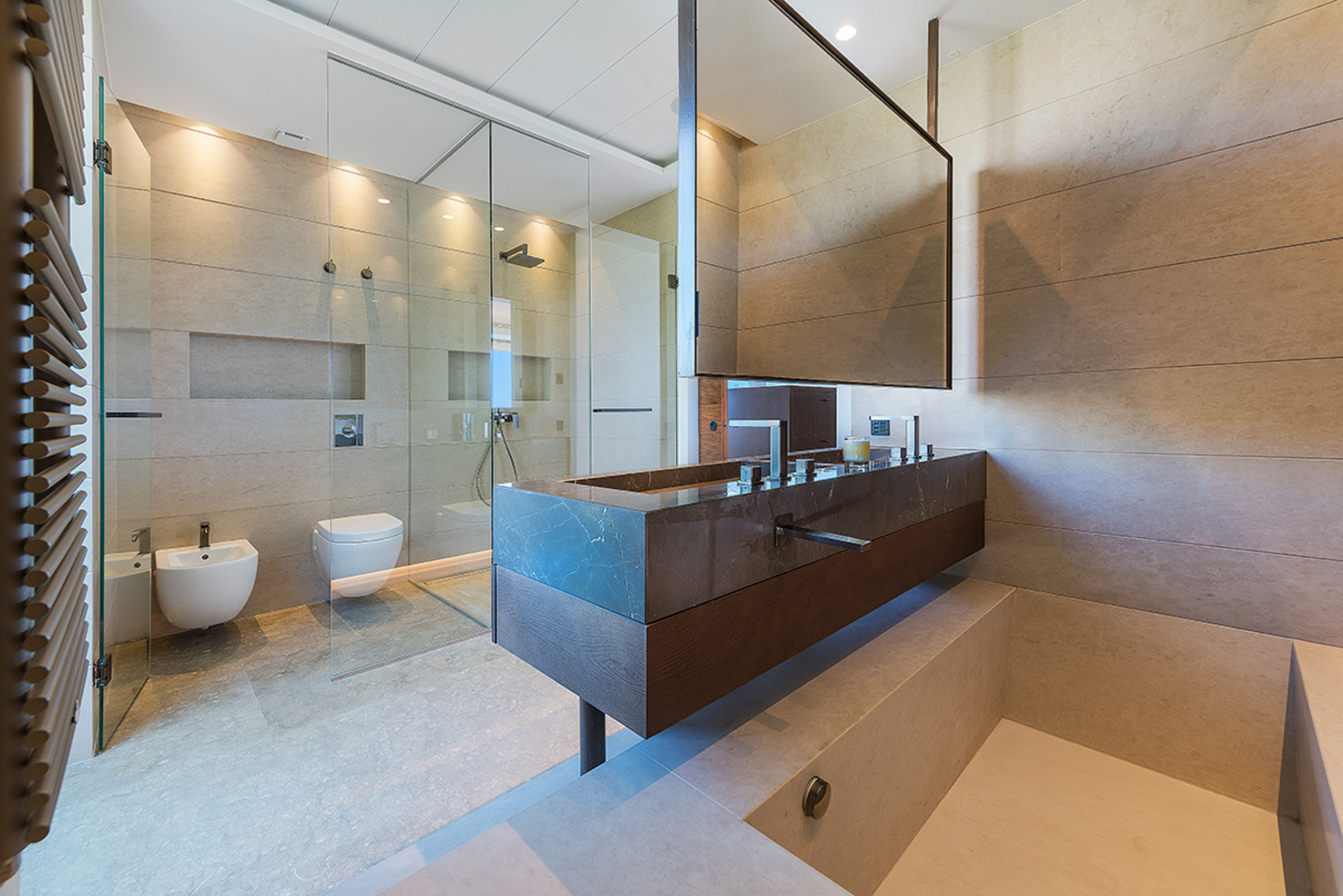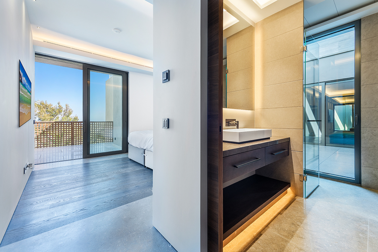 Underfloor: 6 bedrooms all connected to their own outside terrace ,5 bathrooms, fitness area + Sauna, extra living area, storage room, technical room, laundry room.
