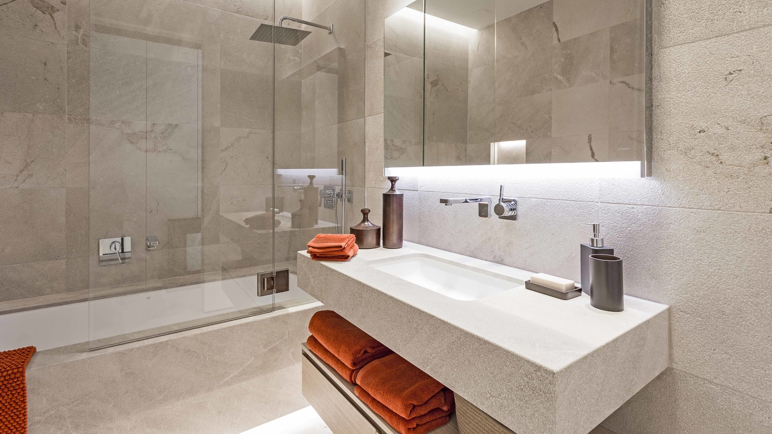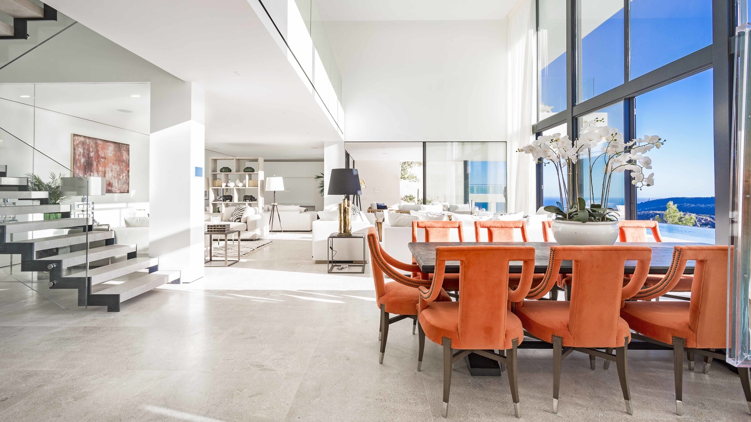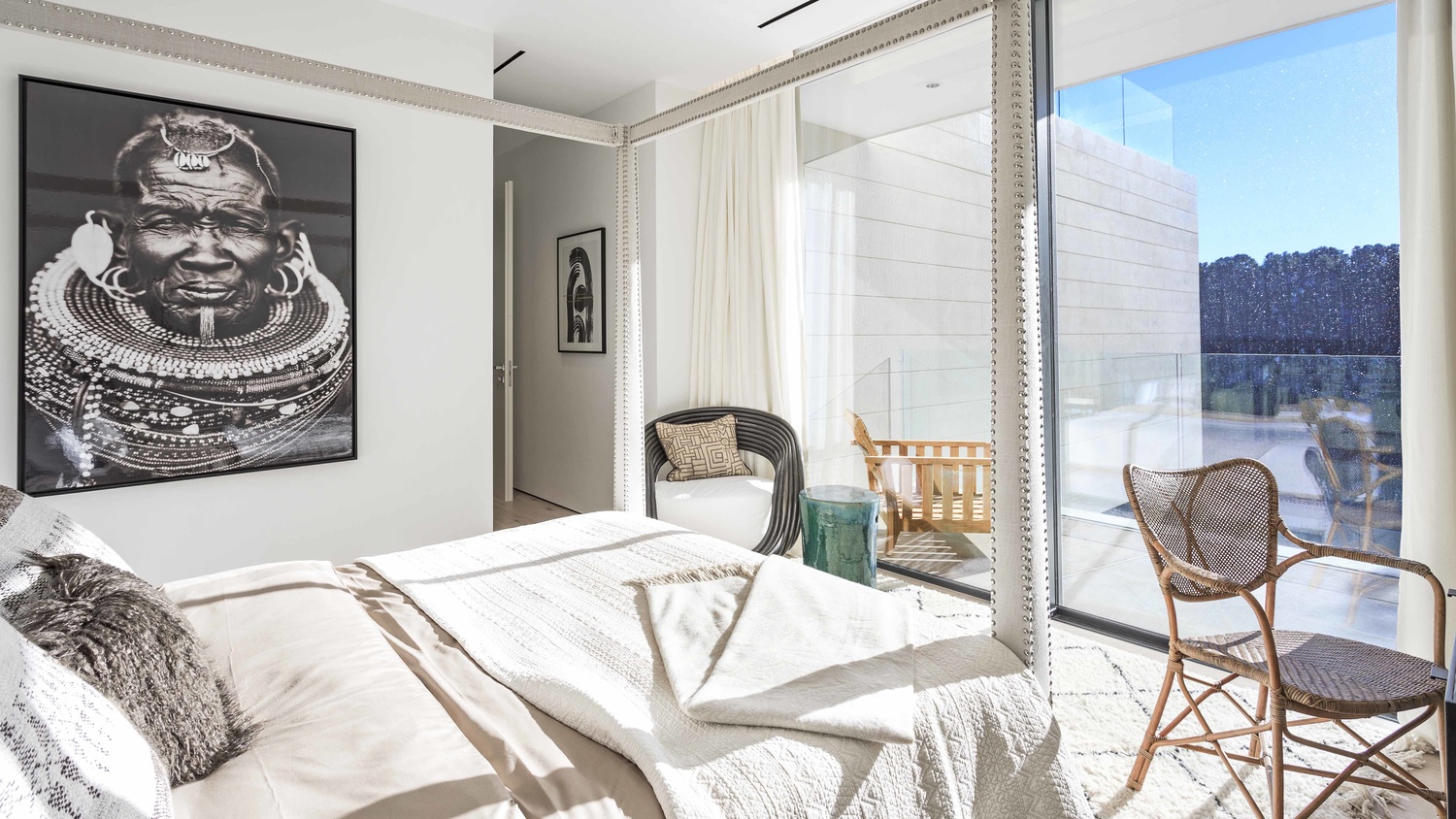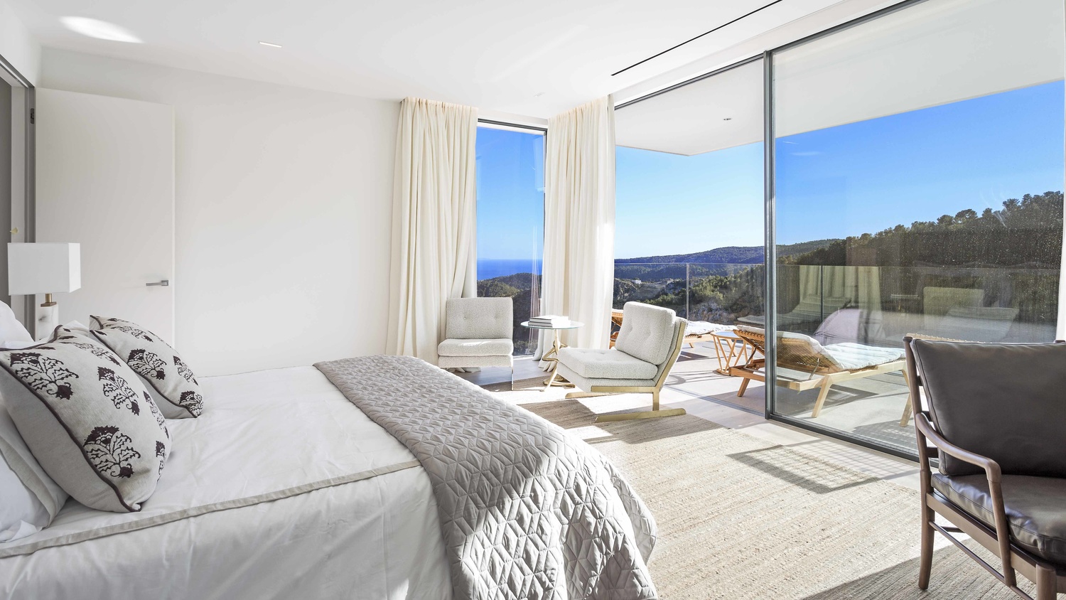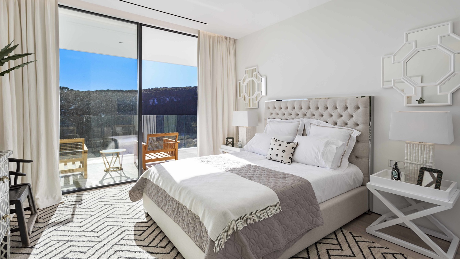 On the access level there is a garage that fits three cars. Also, on this level is the main entrance with panoramic views, elevator and staircase to the lower levels and a spacious bedroom with en-suite bathroom.