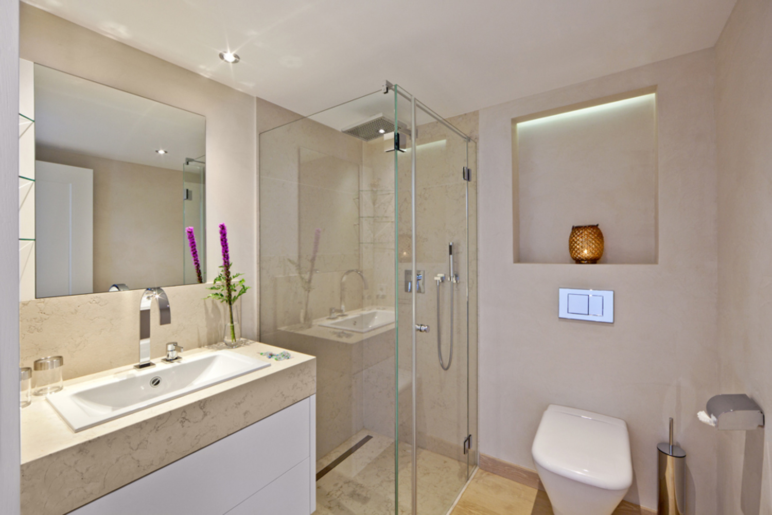 First floor: this floor consists of the master suite with dressing room and bathroom en-suite with direct access to a private terrace, a guest room with en-suite bathroom and dressing room and another guest room with en-suite bathroom.