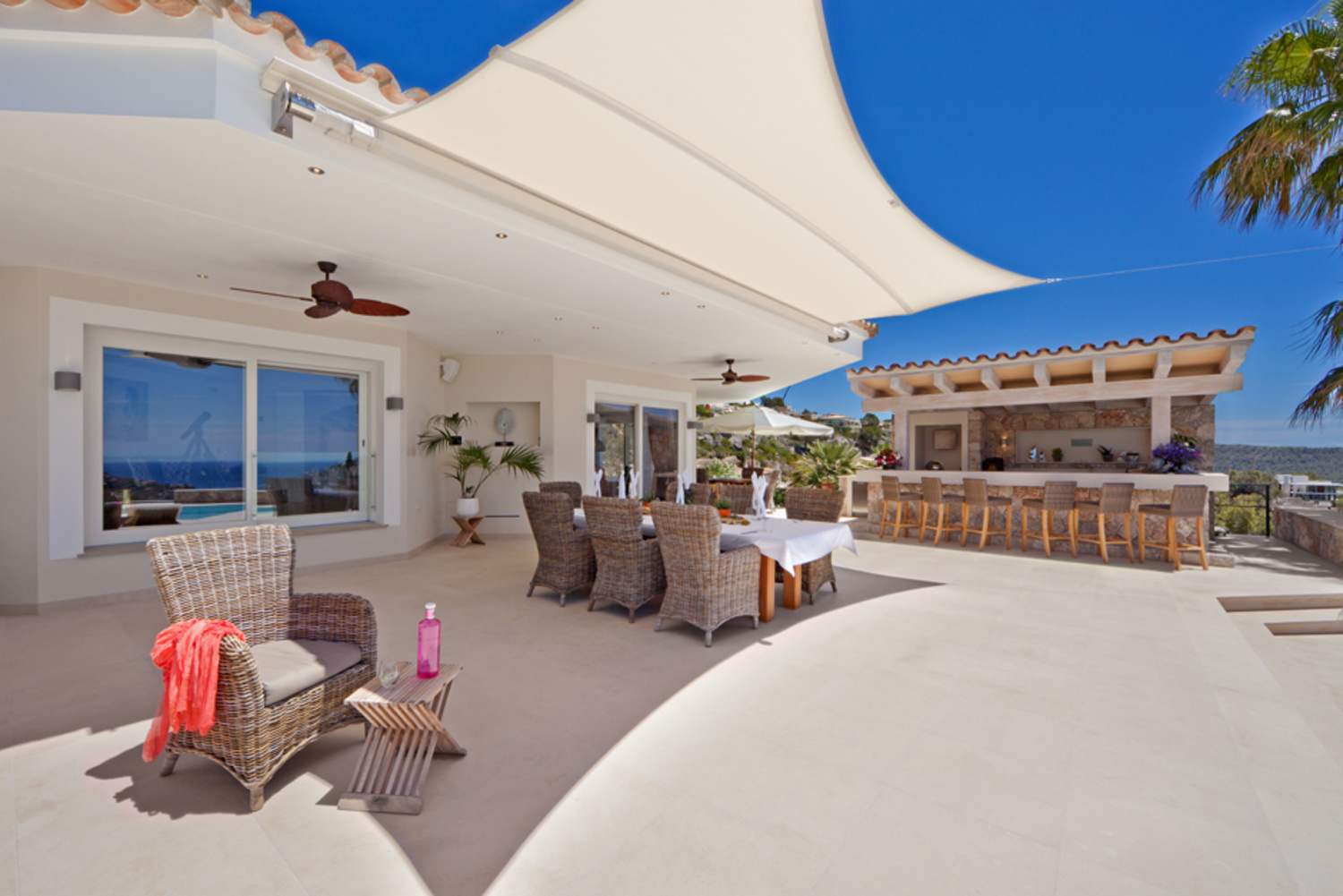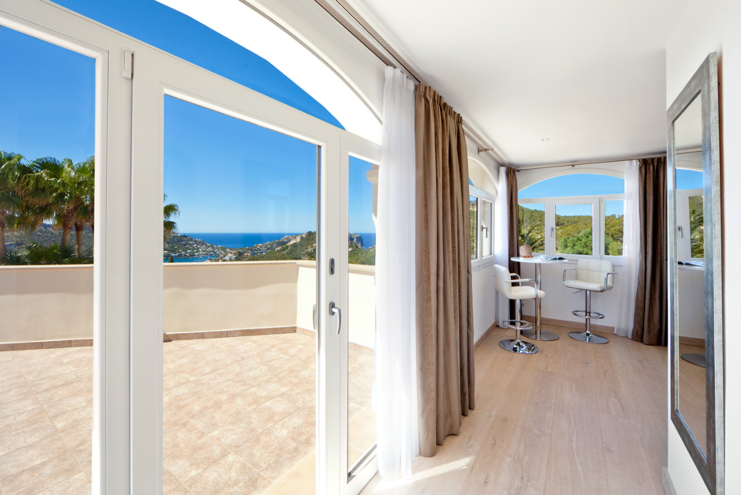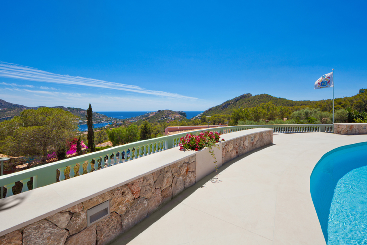 This dreamlike villa, completely refurbished in 2016, is located in one of the best locations of Port Andratx, on the hills of Monport, and enjoys a breath-taking view of the port, the Tramuntana Mountains and the open sea.