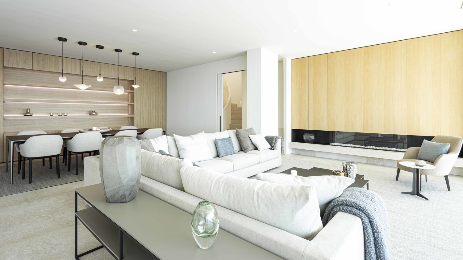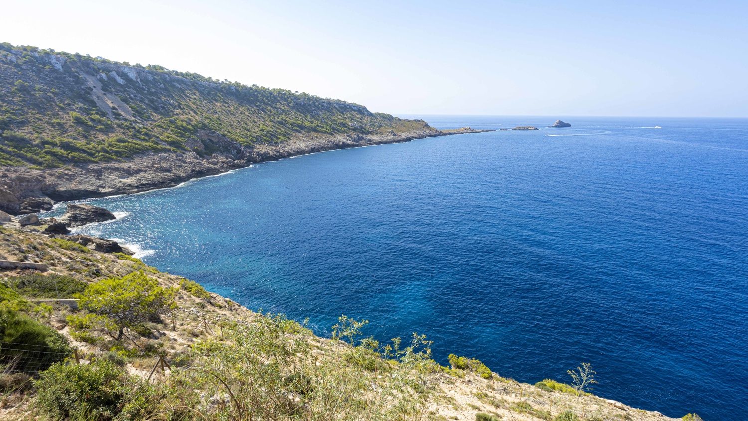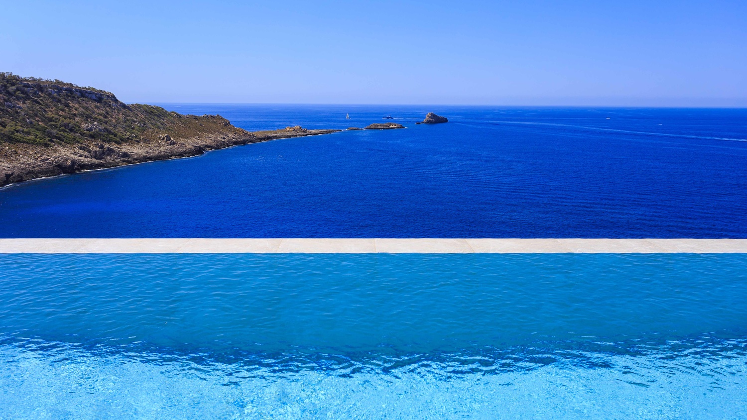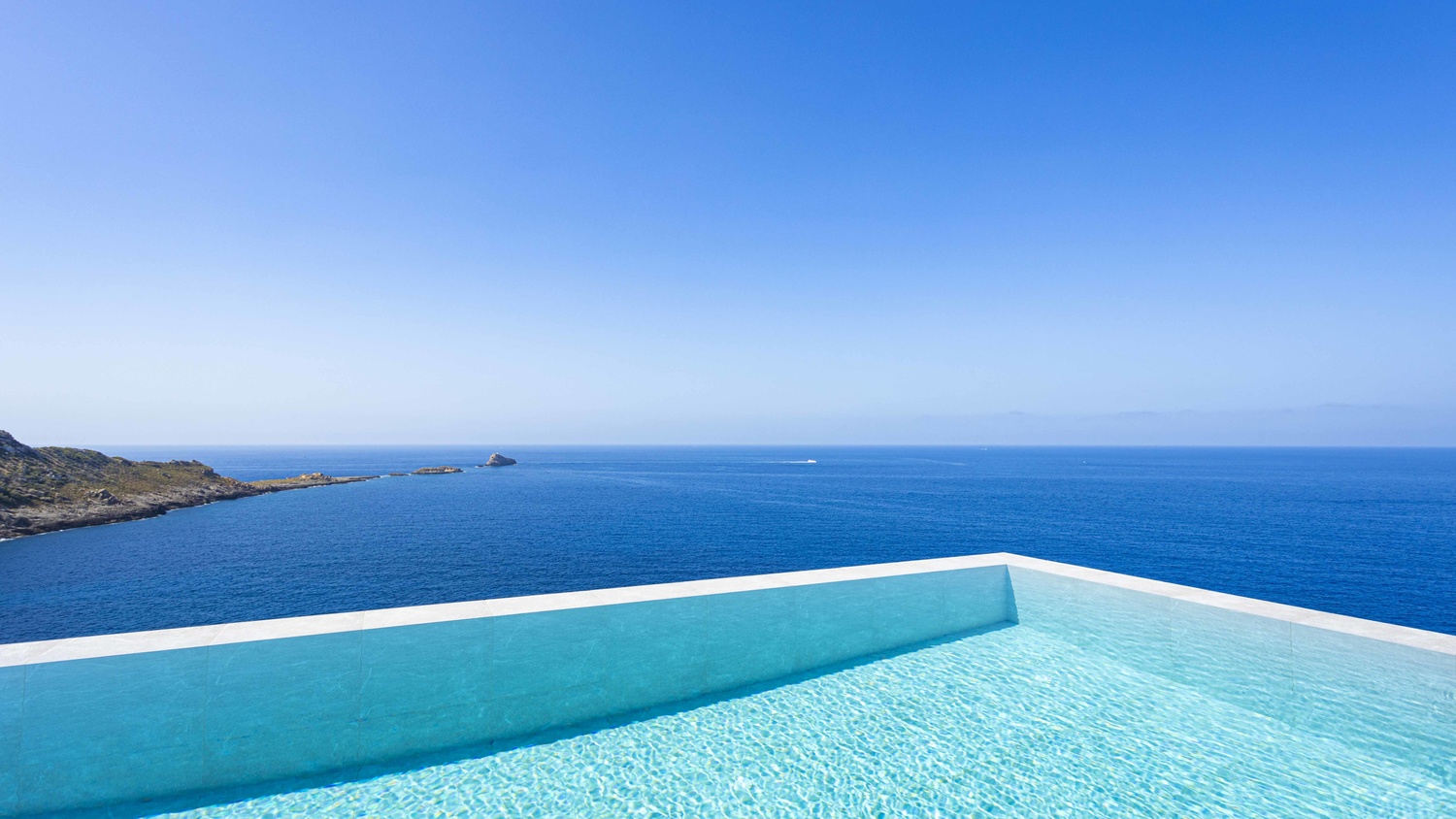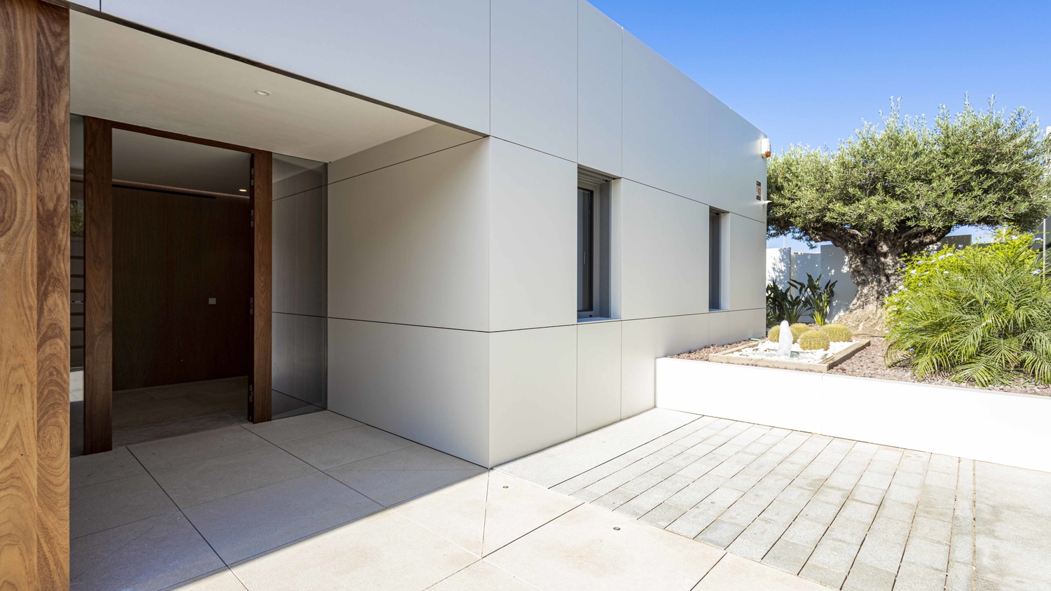 This luxury villa for sale on the first line in Port Adriano has been completed in the summer of 2019 with the latest facilities in home automation, underfloor heating, heat pump, etc. An elevator connects the three floors to the indoor and outdoor pool. This beautiful villa is located at the end of Avenida del Mar just in front of the El Toro Islands and very close to the green zone, which is a very quiet and sunny location.