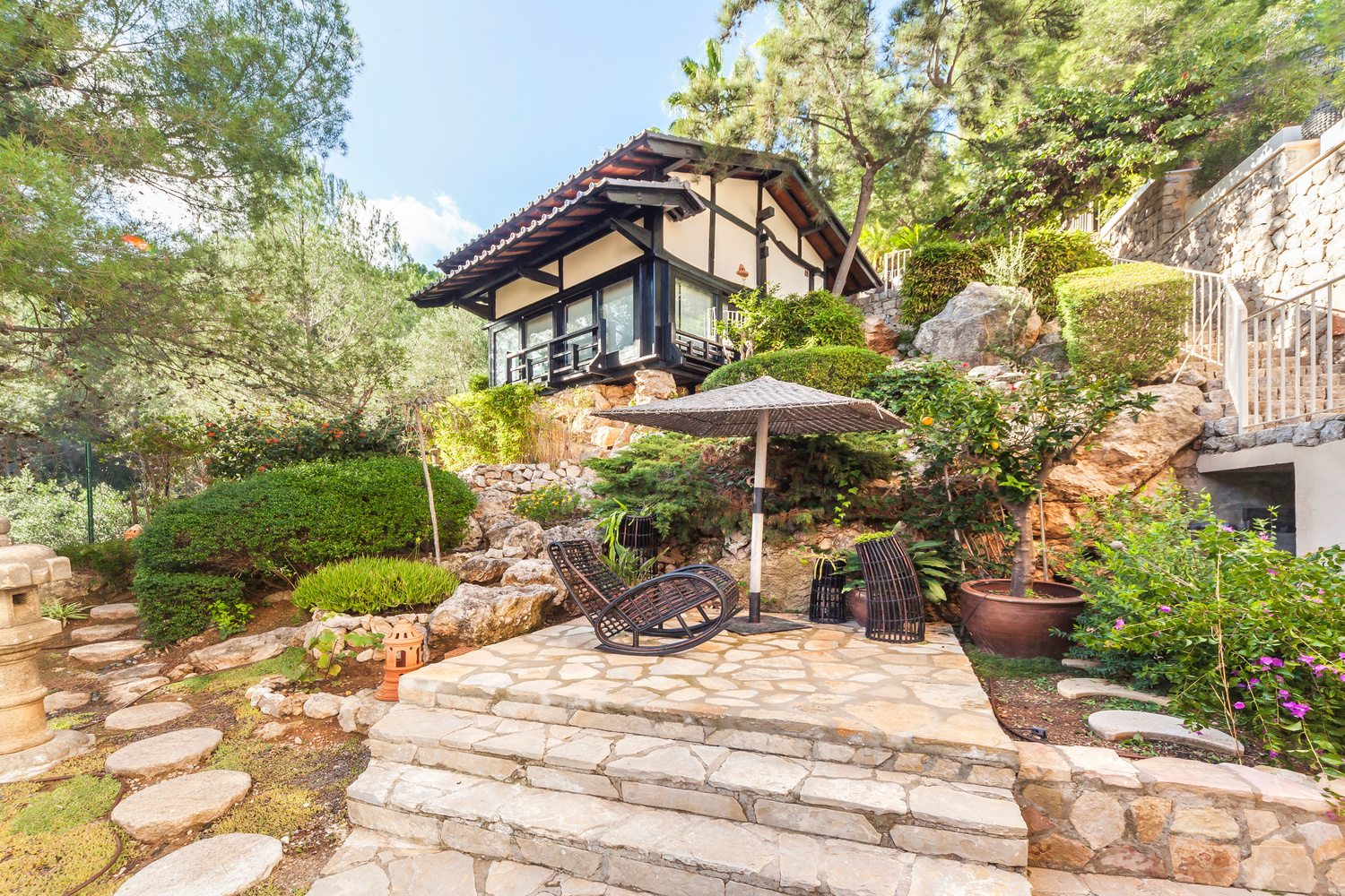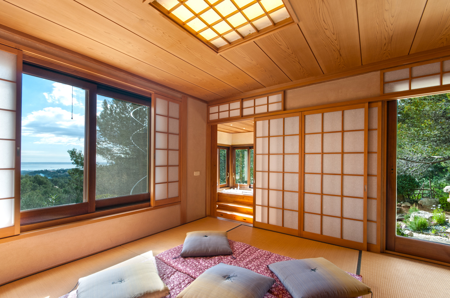 Bellow the pool level there is a wonderful climatized bodega, 2 further guest bedrooms and a fully equipped gym. There is also a very charming authentic Japanese tatami house which is currently used as another guest room.