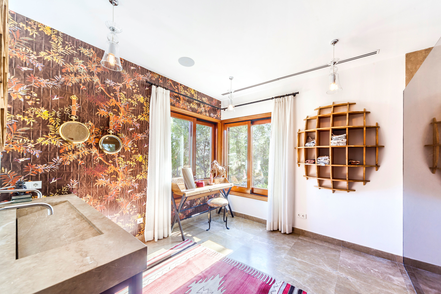 During the extensive renovation, all of the fittings and wiring has been redone, along with a new water/gas powered AC system and underfloor heating, the entire property was fitted with a demotic SONOS system and a sophisticated alarm system.