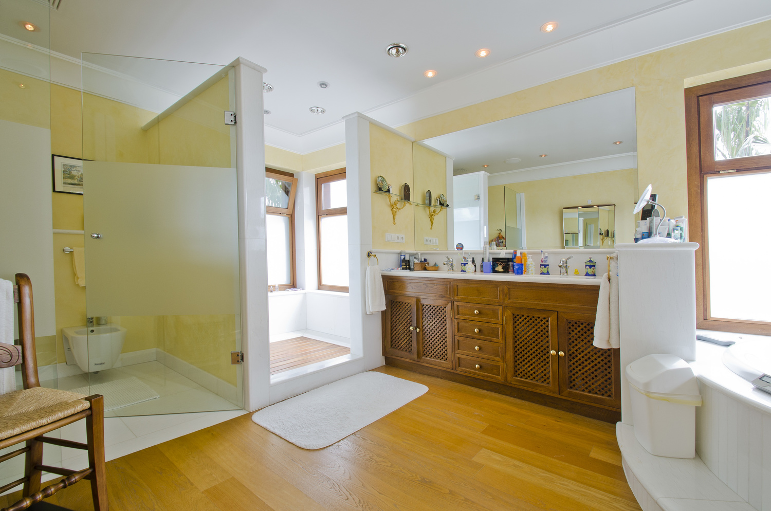 Ground floor: 1 master bedroom with 2 dressing rooms and 2 bathrooms, 2 additional bedrooms, each with bathroom en suite.