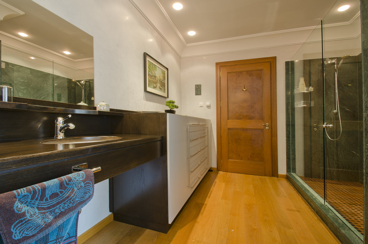 Residential floor: large entrance hall, spacious living room with fireplace, impressive dining room, large kitchen, laundry with cool room. All rooms are featured with high ceilings and extra-large picture windows. Direct access to the covered terrace.