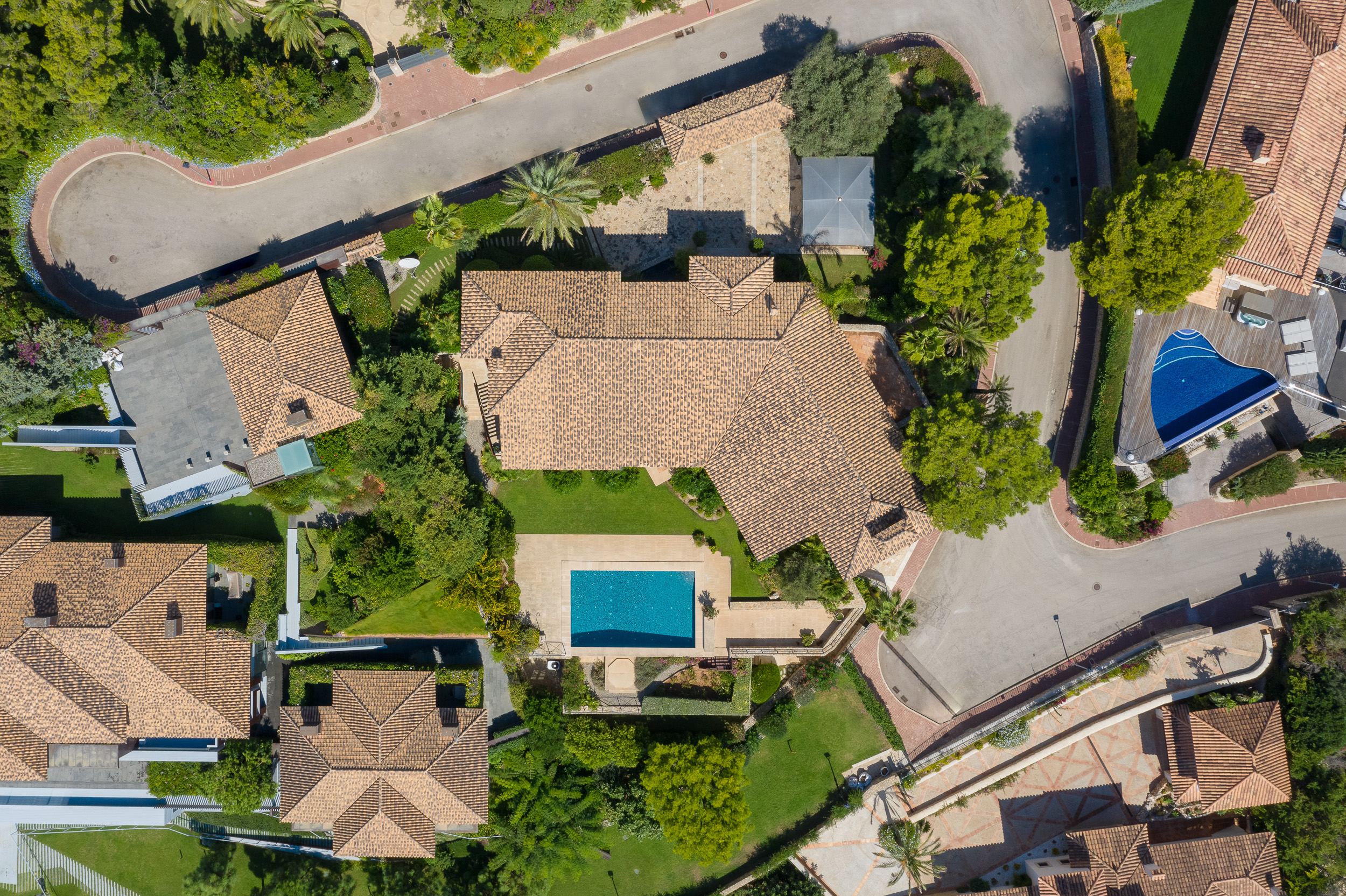 The net living area of 990 m2 plus a partly covered terrace of 400 m2 is distributed over 2 floors plus basement and guest apartment.