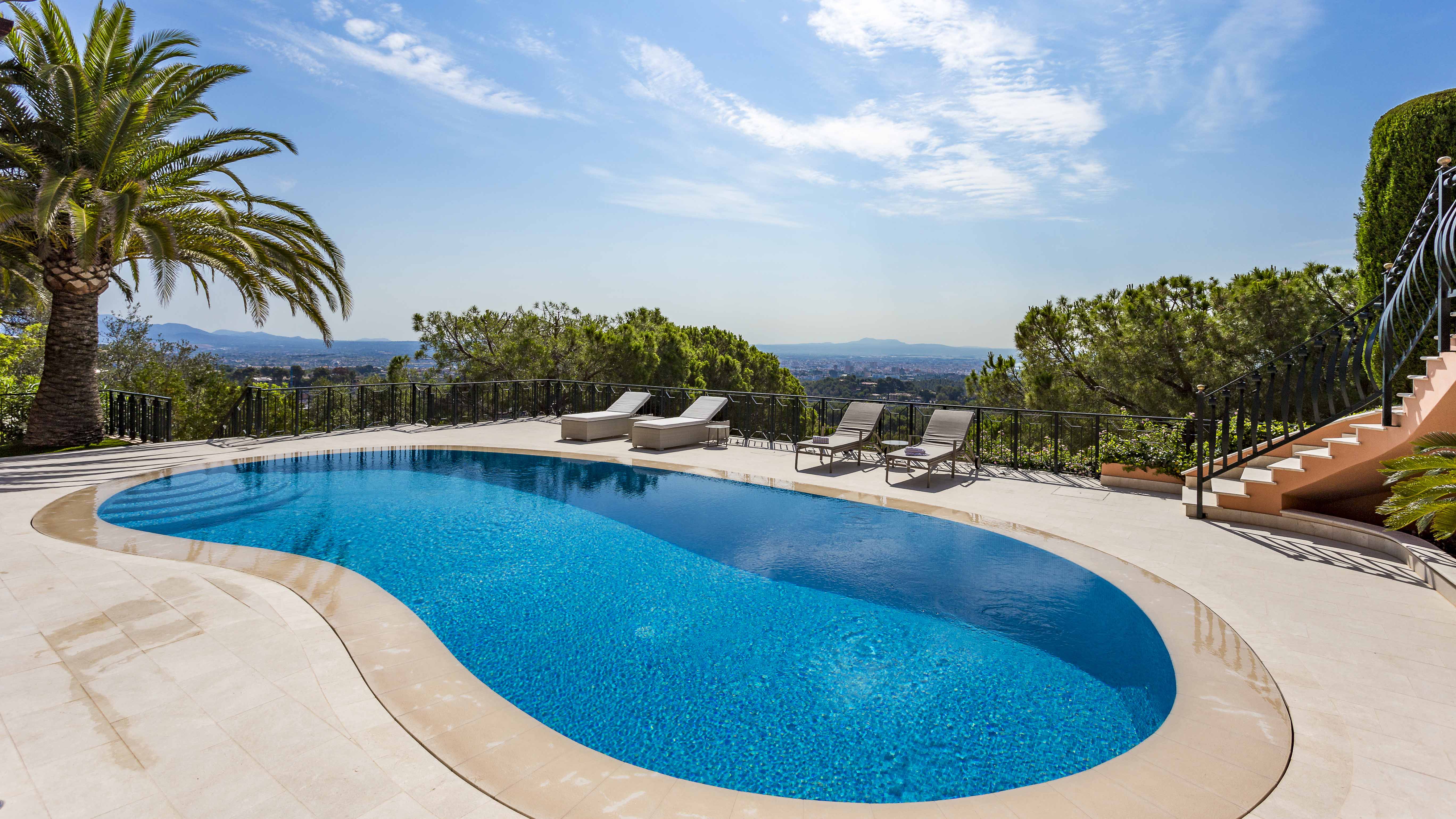 The villa is located in Son Vida, the Beverly Hills of Palma, which offers a 24-hour security service and is surrounded by 3 golf courses and 2 luxury 5-star hotels. It has magnificent sea views from every room and the villa is in an excellent condition in its ideal location just above one of the golf courses of Son Vida.