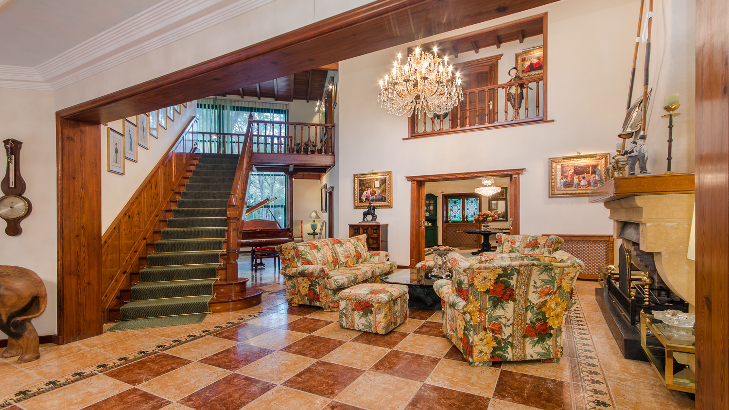 Entrance floor: Entrance hall, large tv room, office or library room, impressive salon with double high ceilings, open fireplace and open wooden staircase, separate dining room, kitchen with separate laundry room, utility room, guest bedroom with independent entrance and bathroom en suite.