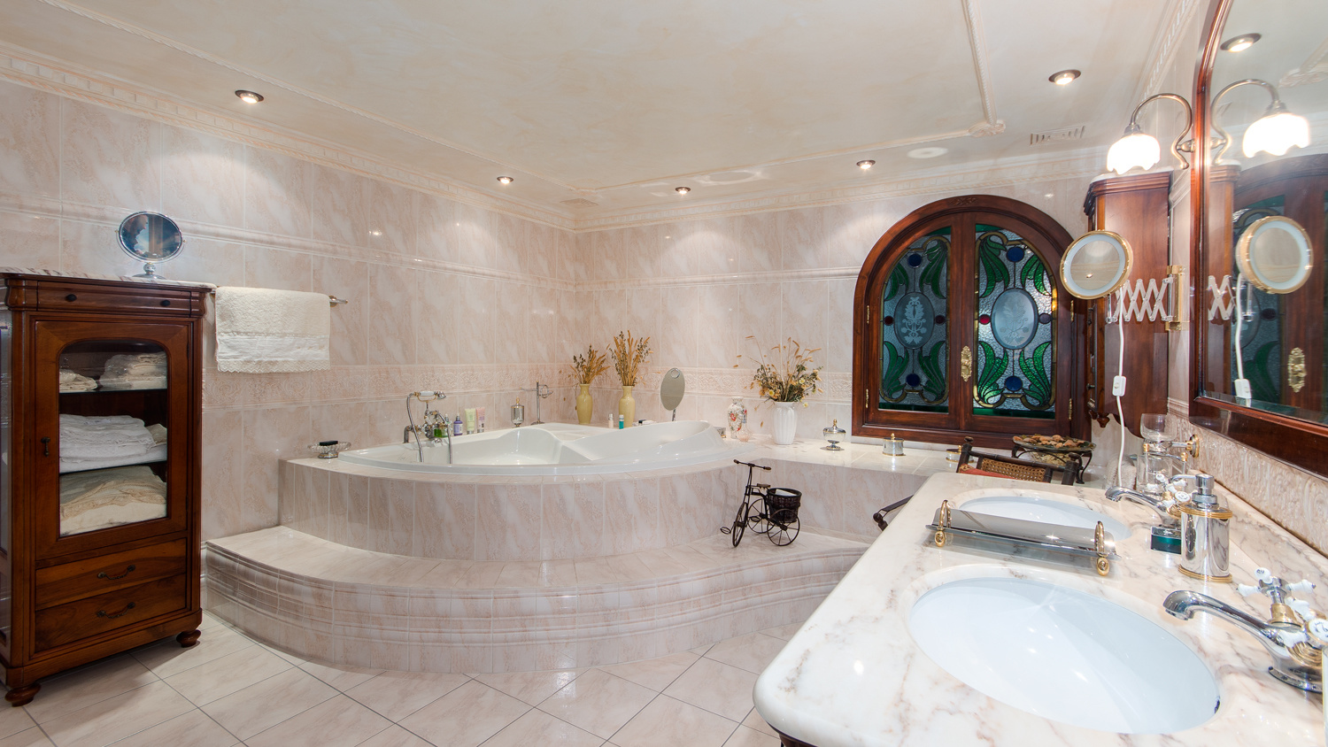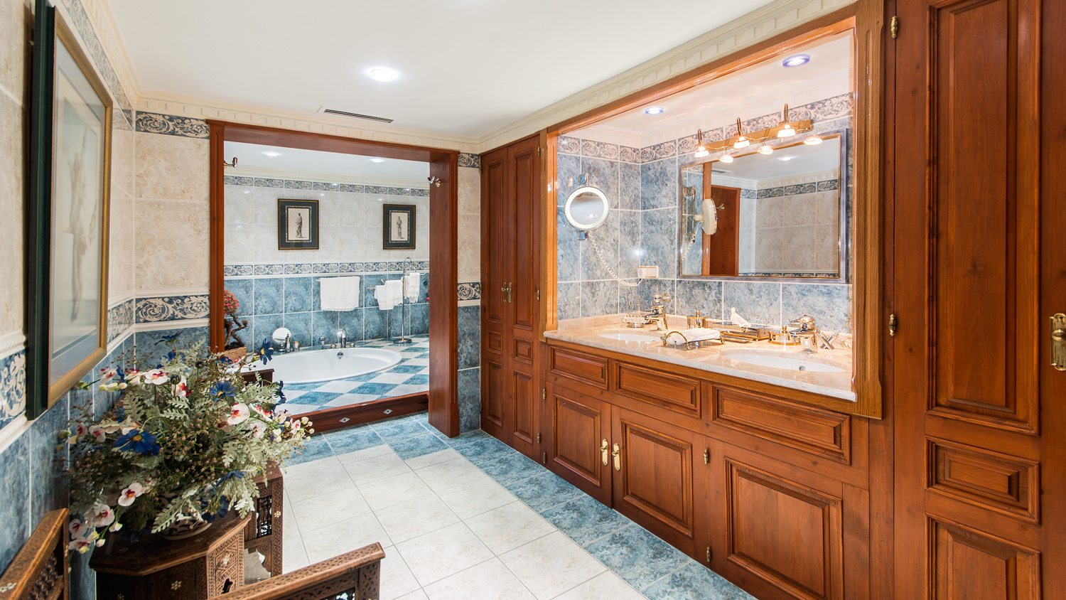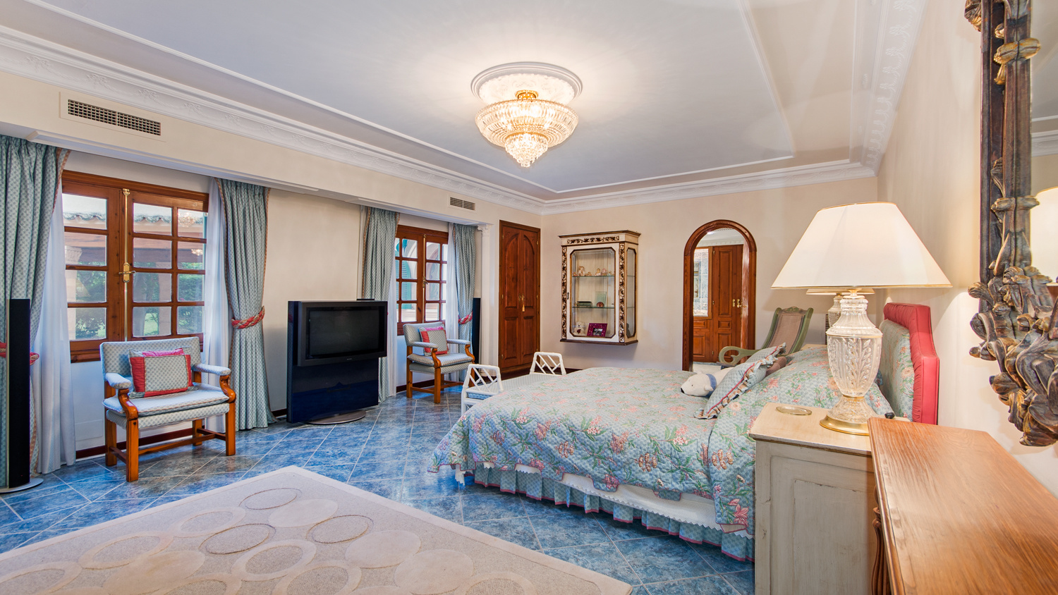 First floor: Master suite with separate dressing area for him and her, two bathrooms and private terrace. Three additional guest bedrooms with bathroom en suite.