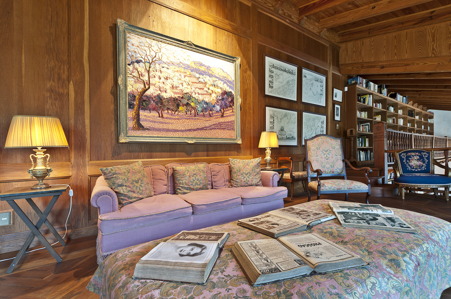 First floor: kitchen with large office, living room with fireplace, dining room, 1 shower room, library with another living room with fireplace, impressive wine cellar with dining area and a large terrace with great views.
