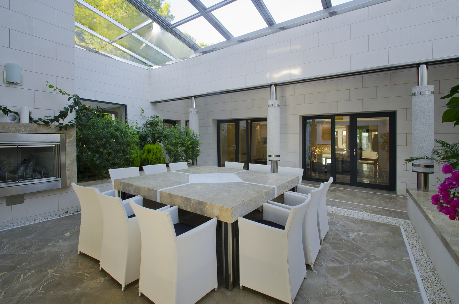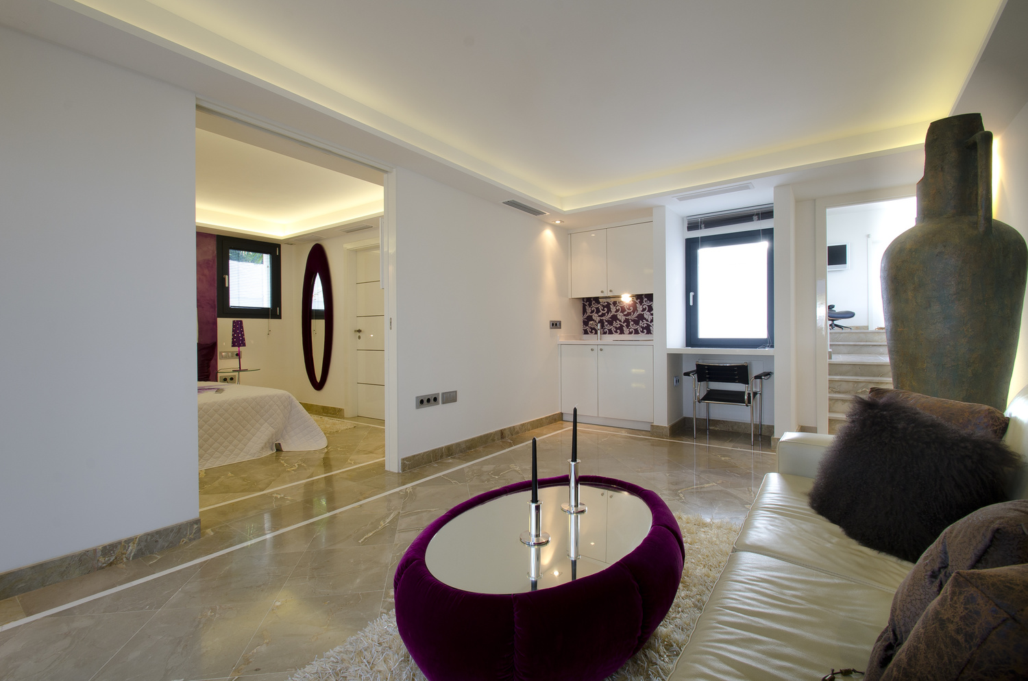 First floor: open living room, state of the art kitchen, 2 guest apartments, 1 bedroom with bathroom en suite, ample indoor/outdoor terrace with fireplace.