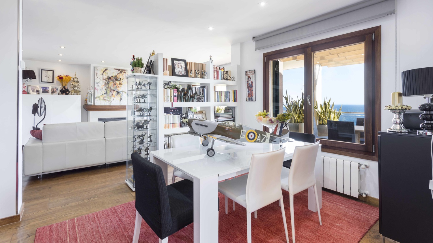 Ground floor: this is the entrance floor. At street level without any steps, you enter the first independent property which consists of living-dining room and kitchen. Four bedrooms, two of them with en-suite bathrooms complete this layout. From the dining room, as from the living and from two bedrooms, you have access to the terrace with panoramic sea views.