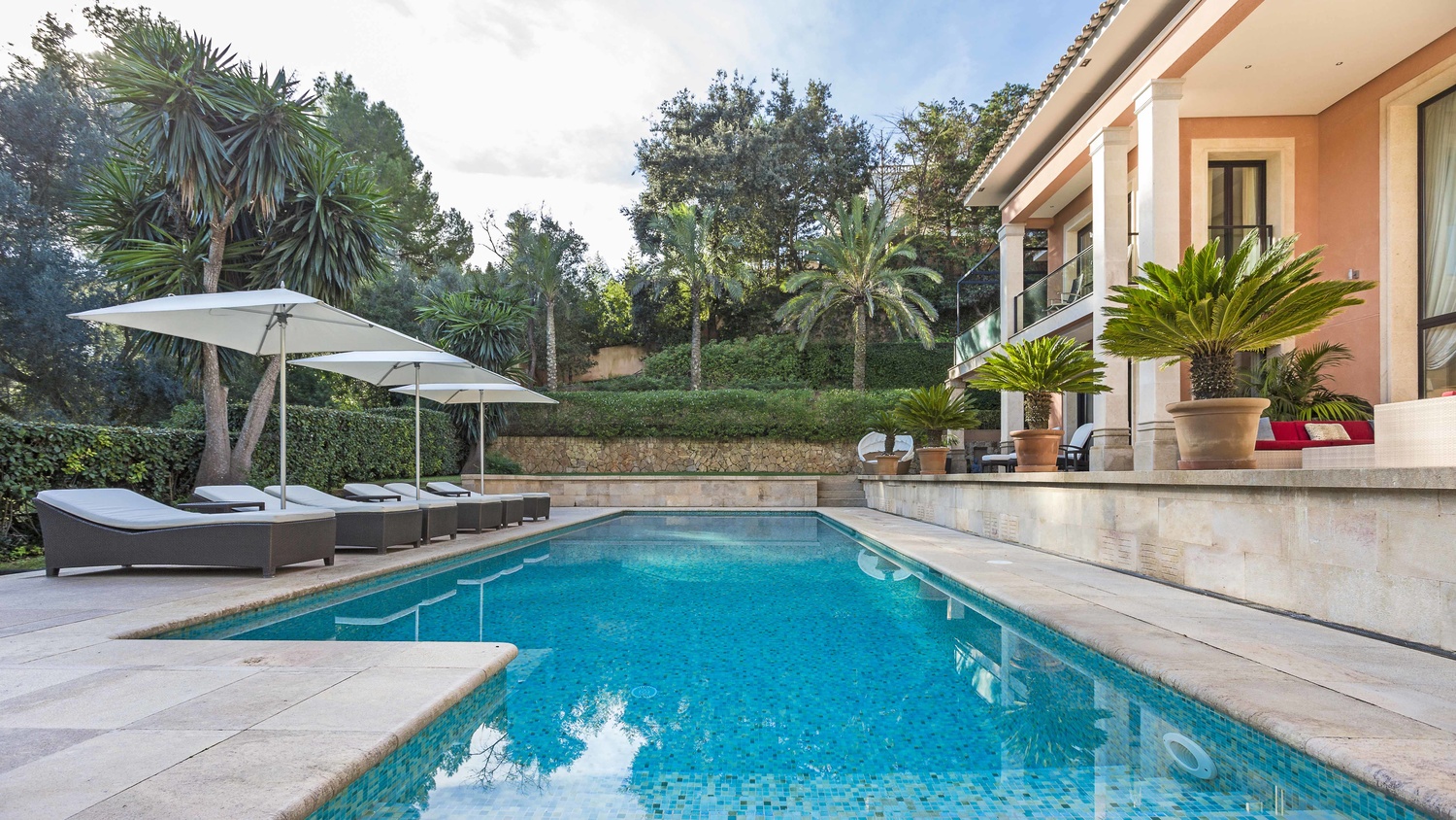 Son Vida, a suburb of Mallorcas rather Cosmopolitan capital Palma is also known as "Beverly Hills of Mallorca". There is a 24-hour security guard at the entrance to this luxury urbanization with a multifaceted population of different nationalities from around the world. One of the most sought-after and prestigious areas of Mallorca with a high proportion of luxury villas on large garden plots.