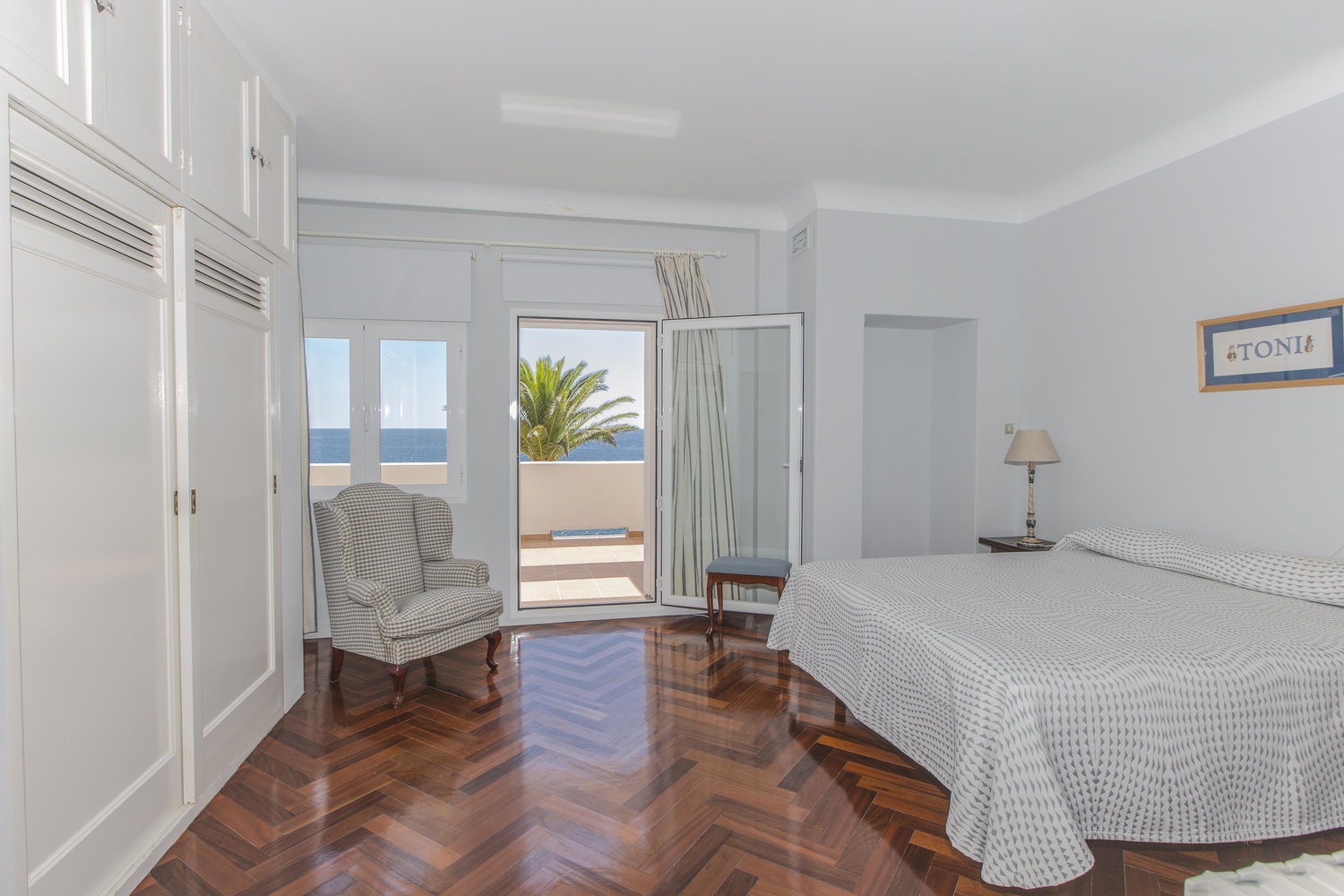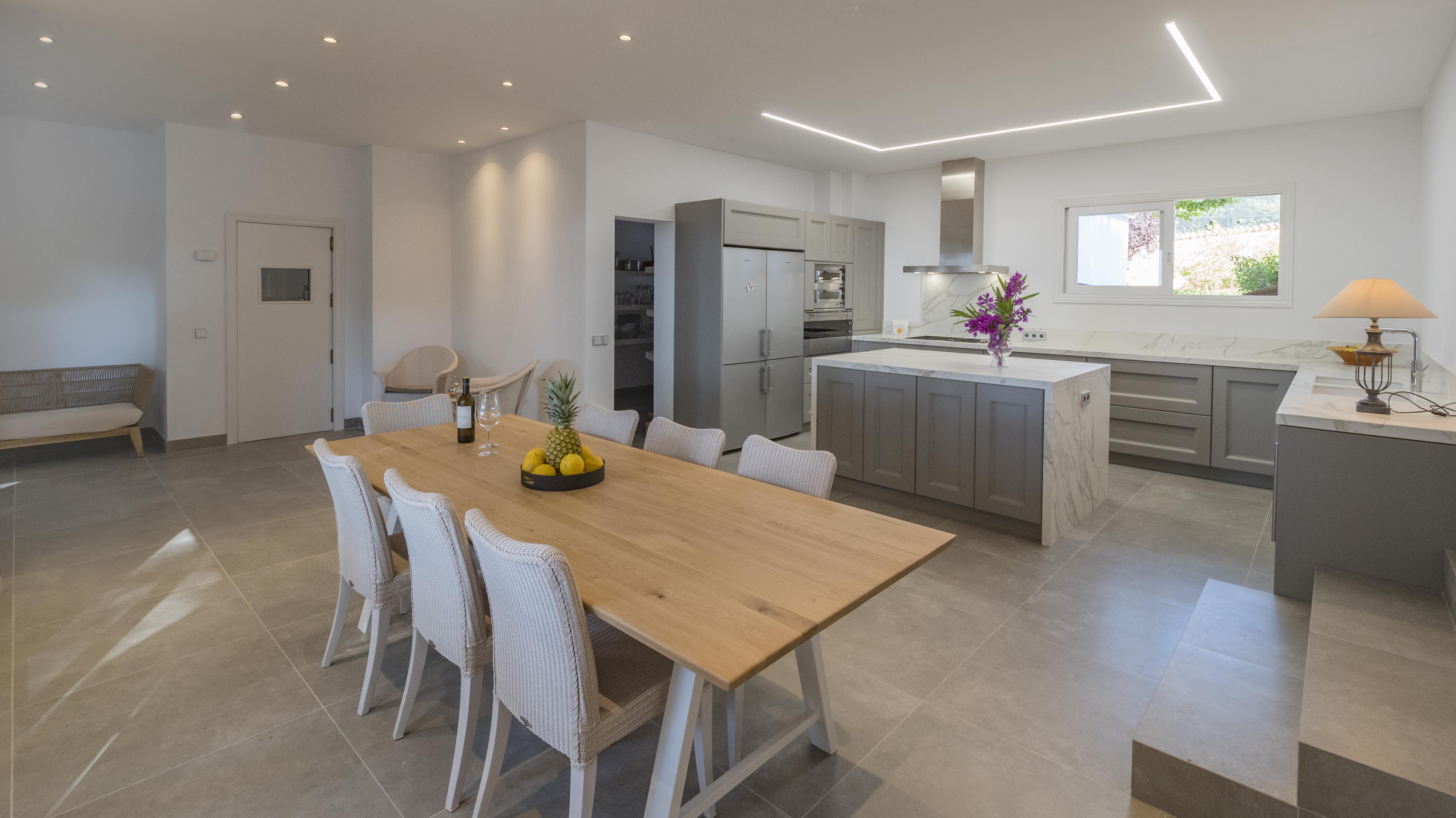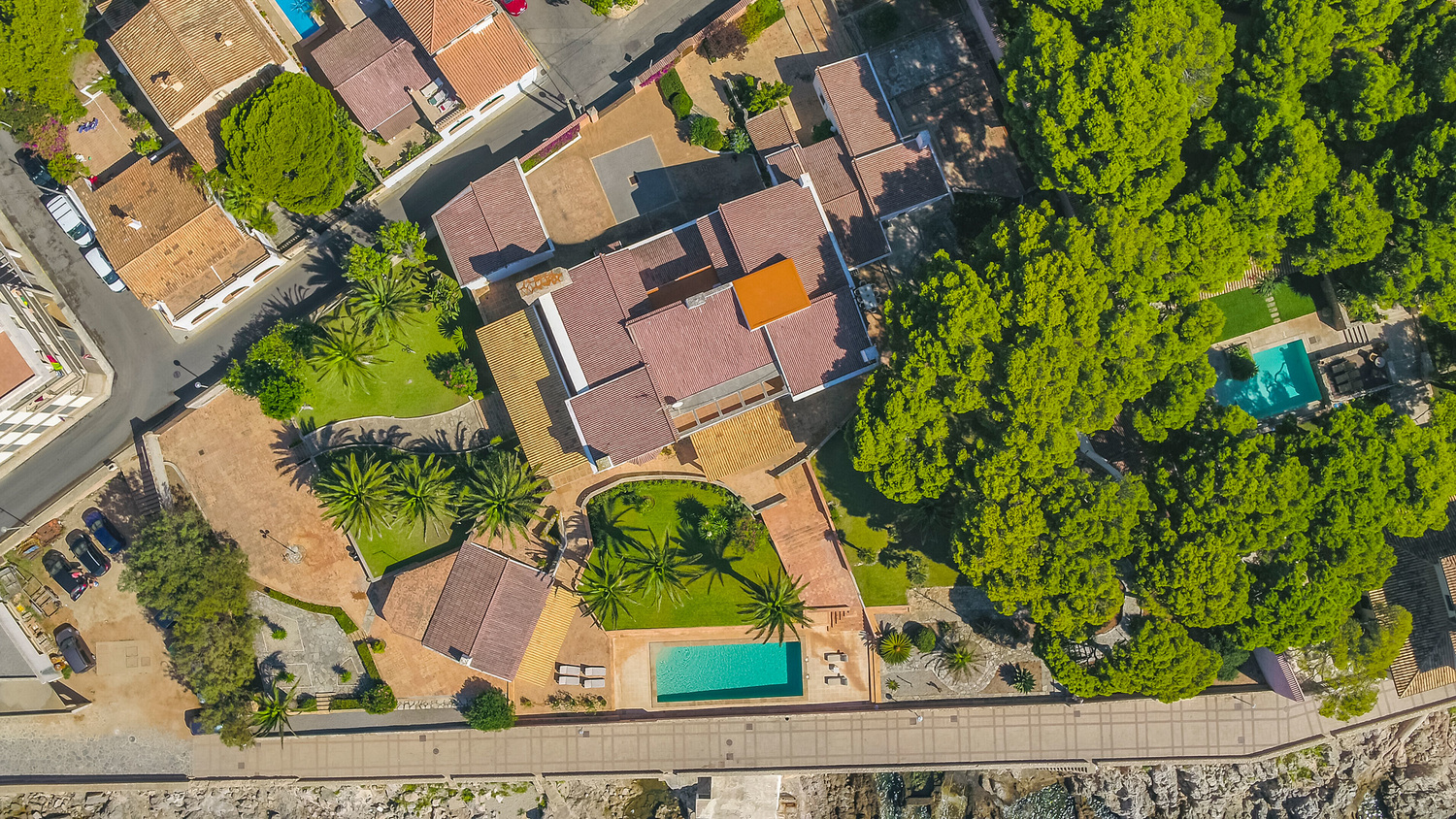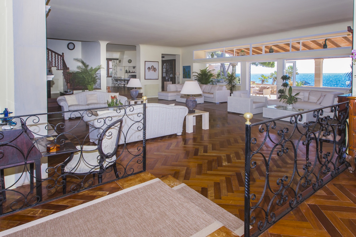 The villa has several very large south facing terraces, fantastic pool, manicured gardens with palm trees and pines. It has a direct access to the sea.
