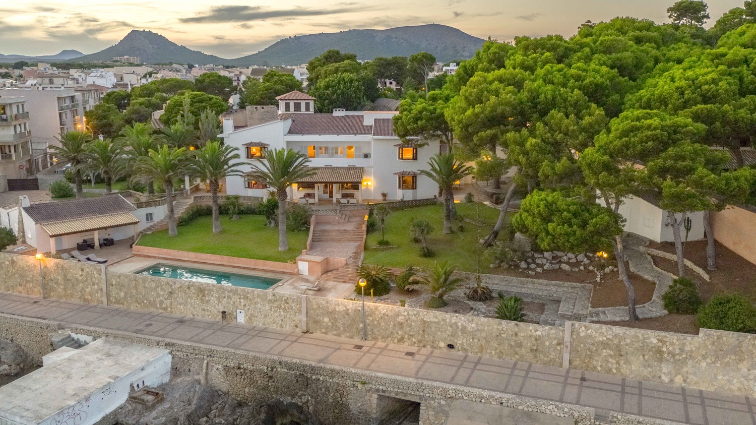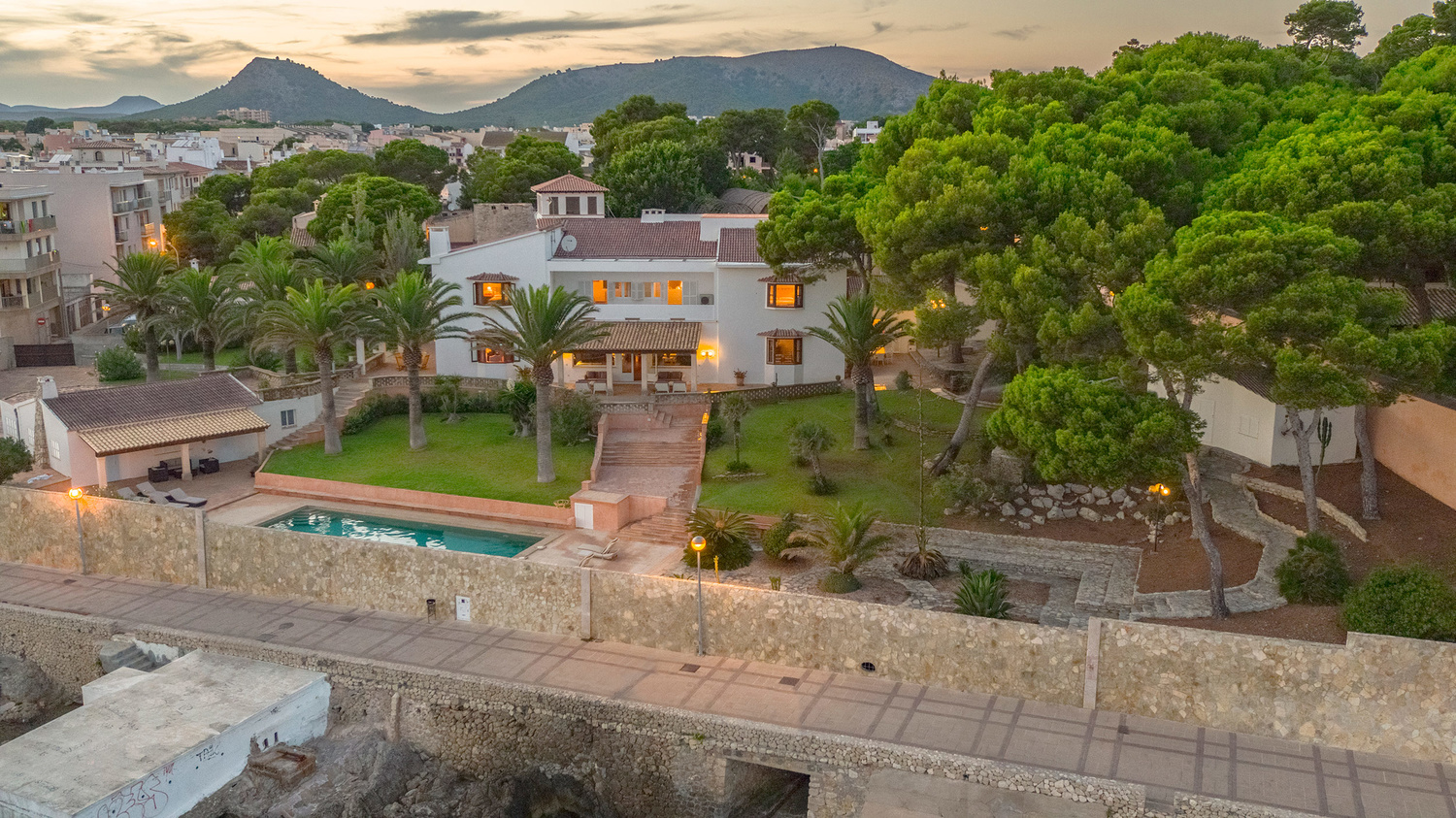 This impressive villa is located in one of the most privileged and exclusive areas of Cala Ratjada, directly on the seashore.