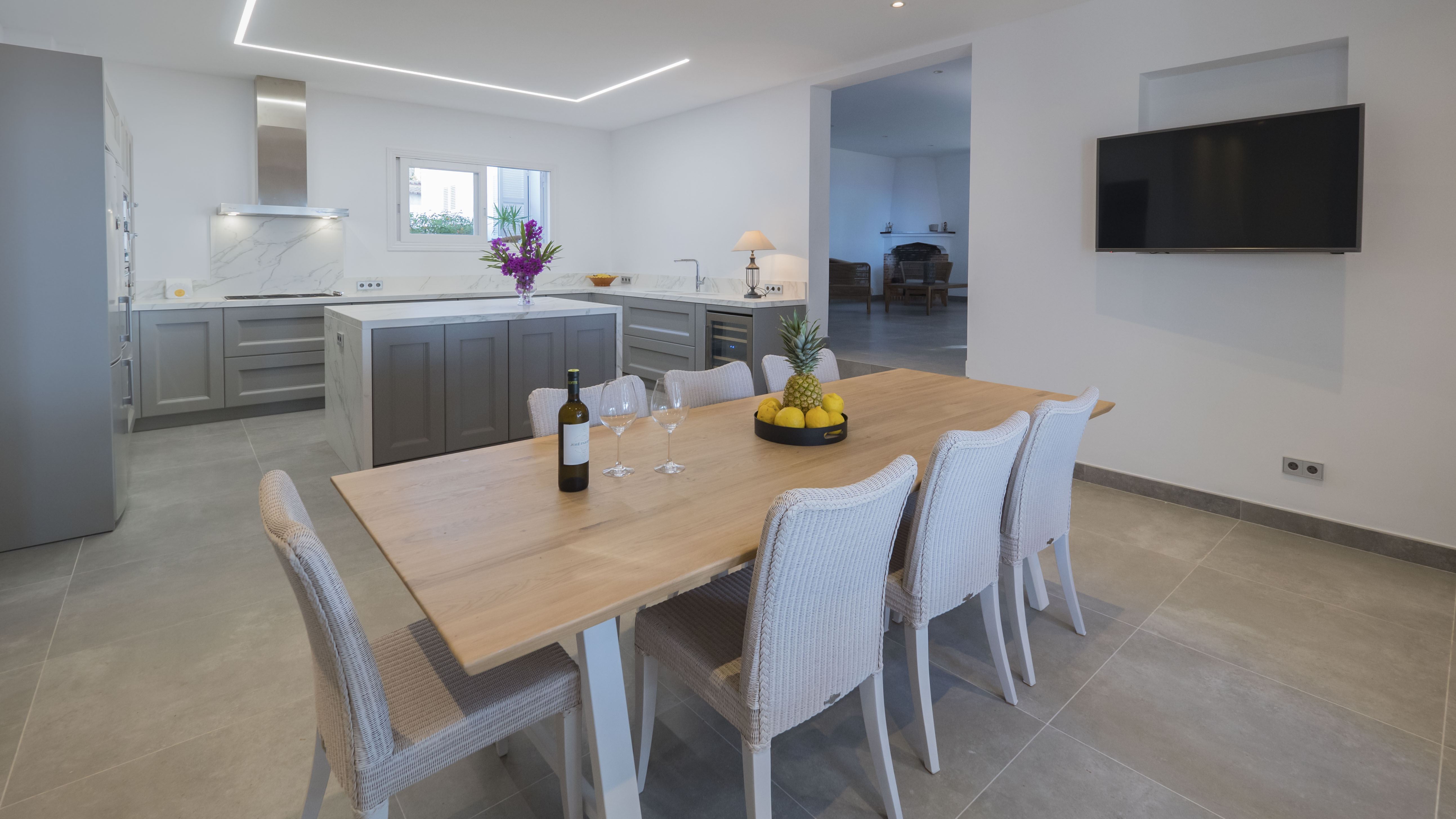 An elegant and huge living room with fireplace, second living room with library, dining room with fireplace, fully equipped kitchen with a cooking island, 9 bedrooms, 9 elegant and modern bathrooms (2 en suite), game room, cellar and much more.