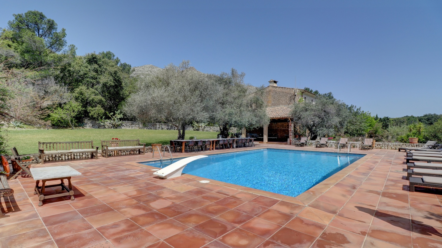 A short drive will take you to the sought-after historic town of Pollensa and also close to the seaside resort of Puerto Pollensa, famous for its beautiful white sandy beaches and crystal clear waters of the Mediterranean.